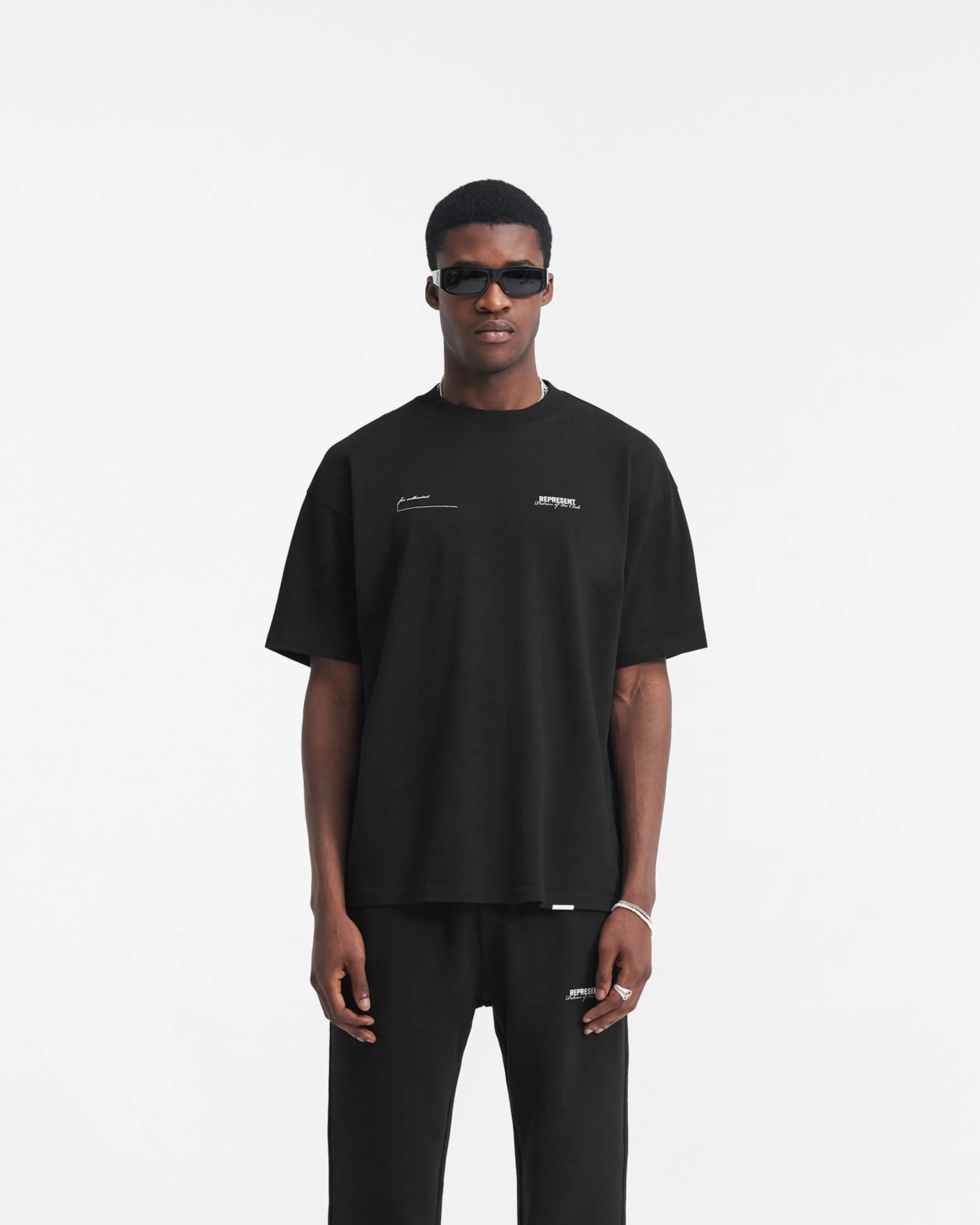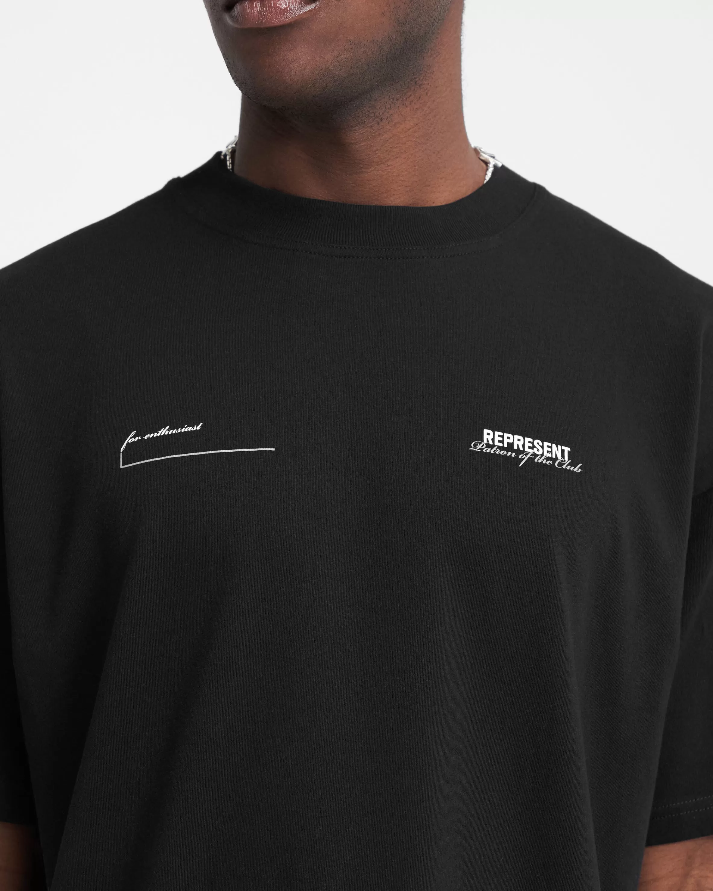 Introducing the Patron of the Club T-Shirt in Black, a luxury short sleeve t-shirt crafted with an oversized fit from me…