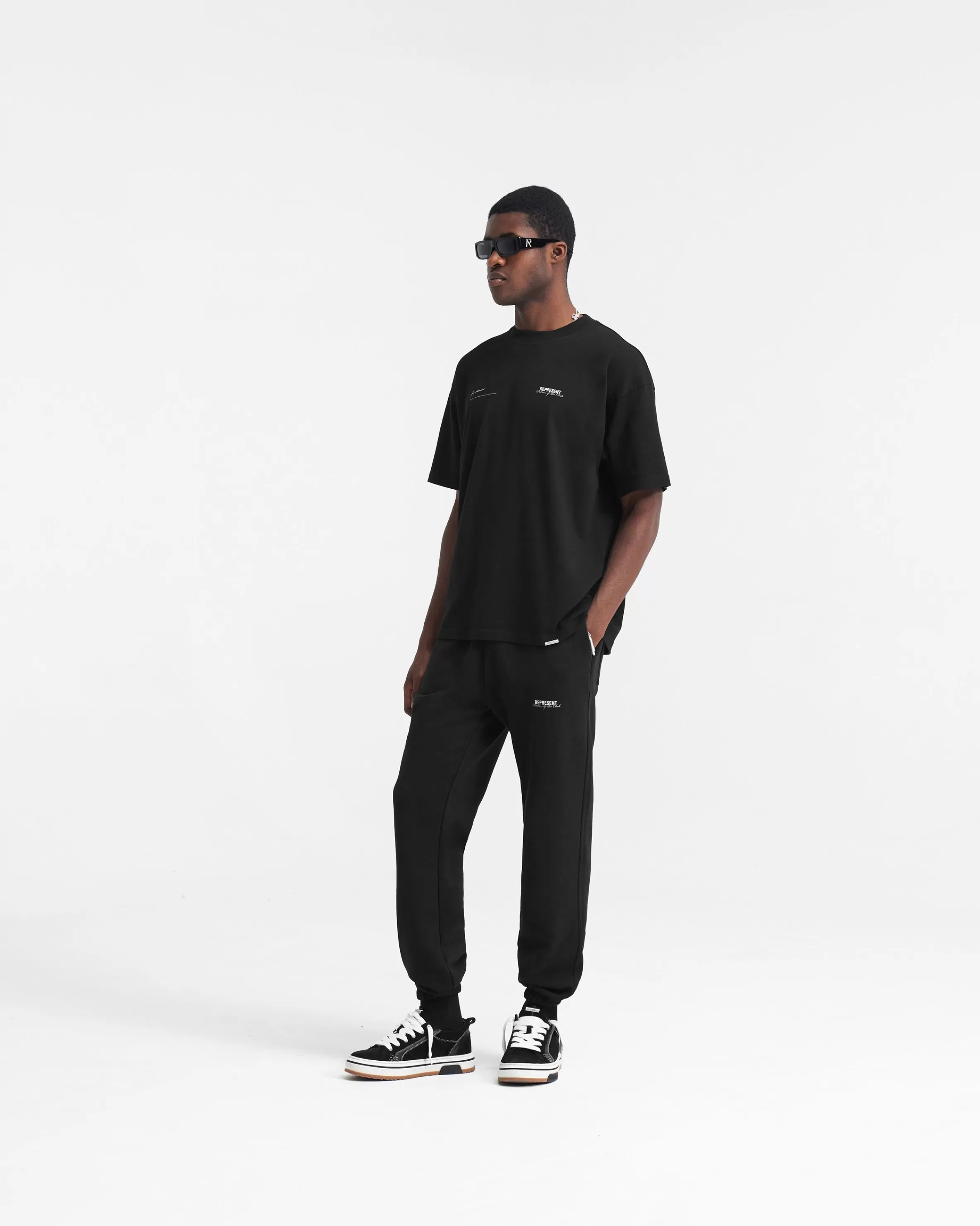 Introducing the Patron of the Club T-Shirt in Black, a luxury short sleeve t-shirt crafted with an oversized fit from medium weight jersey cotton. The t-shirt has a ribbed crew neck collar, with Patron of the Club branding to the chest and back. It is finished with a Represent metal bar to the hem. Black Oversized T-Shirt Crewneck Patron of the Club Print Represent Metal Bar Composition: 100% Cotton 220gsm Product