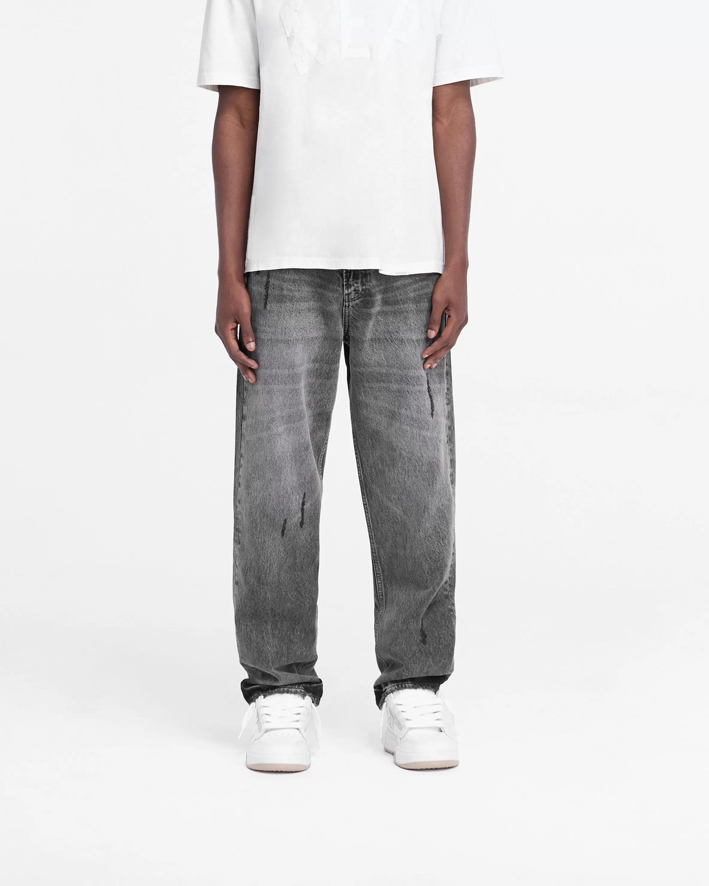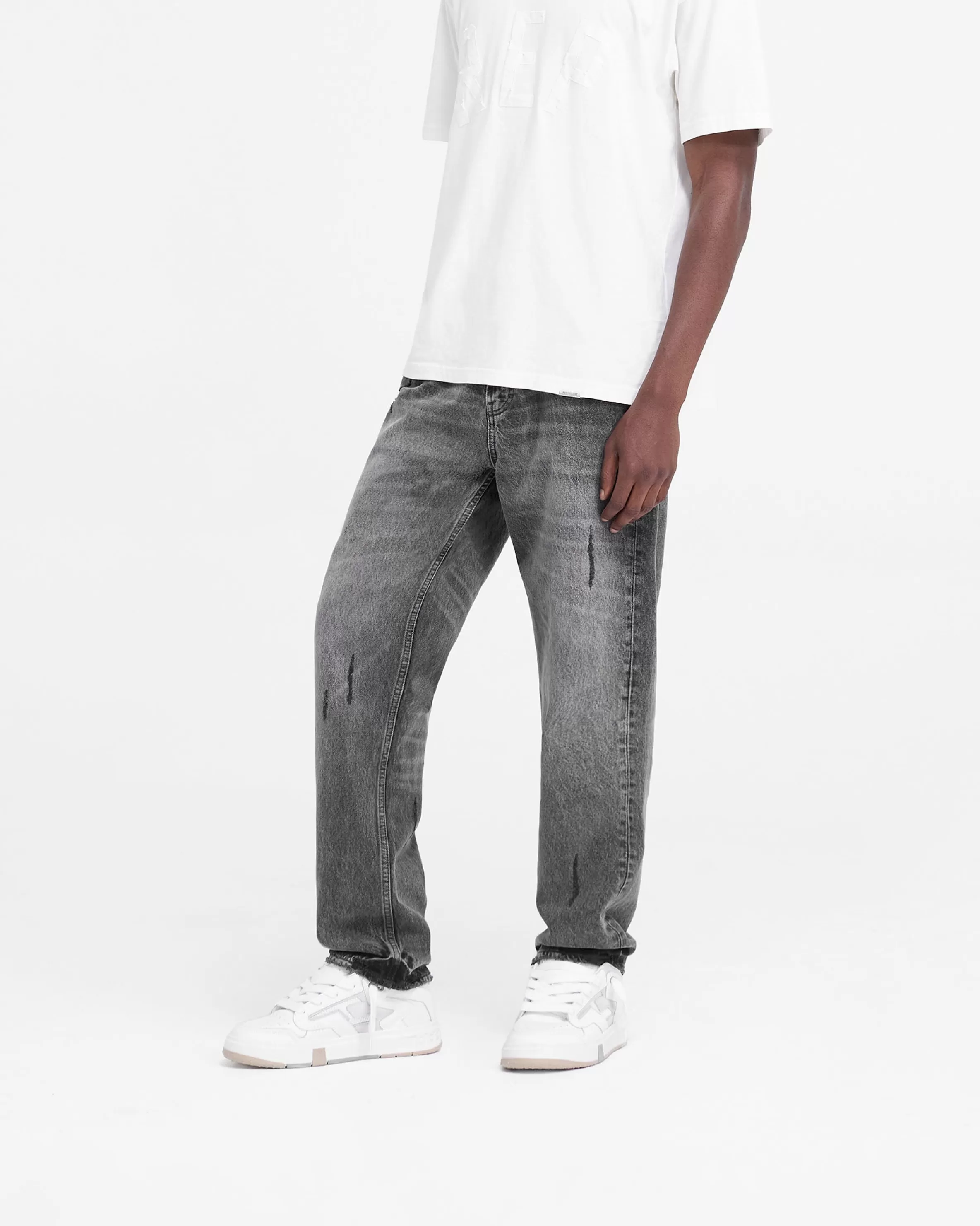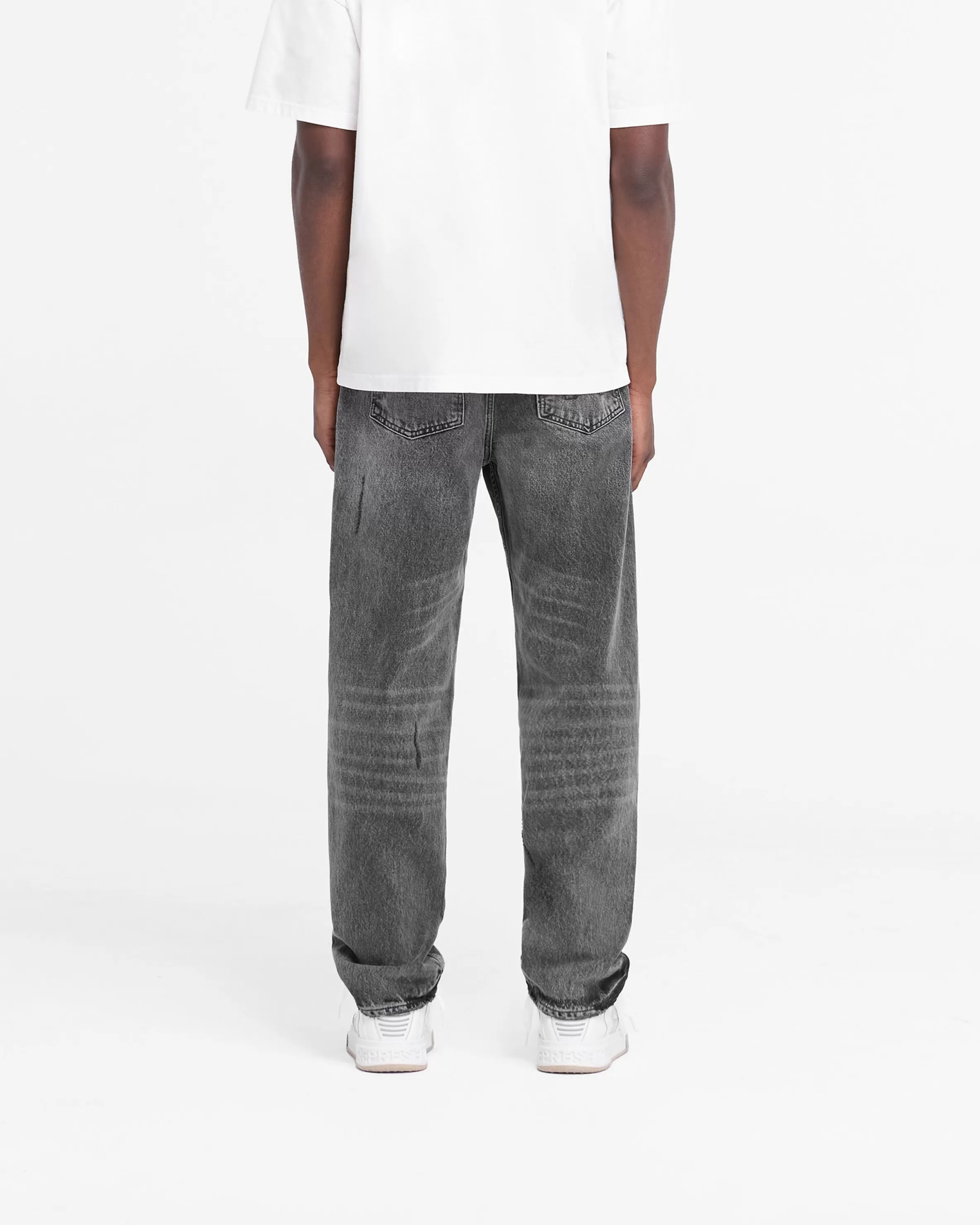Introducing the R2 Rep Denim in Charcoal, a straight leg denim style with a fade out wash. These jeans feature tacking d…