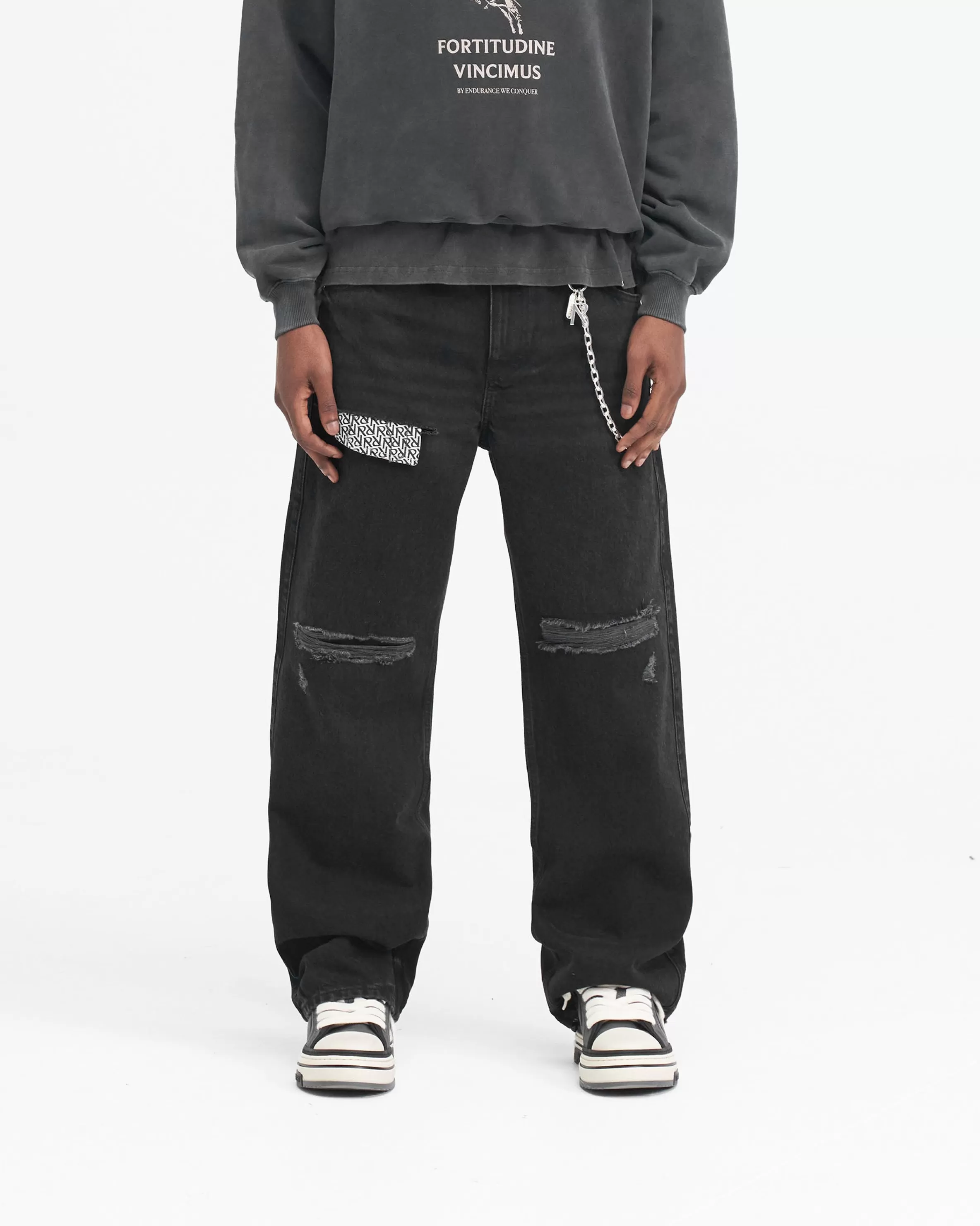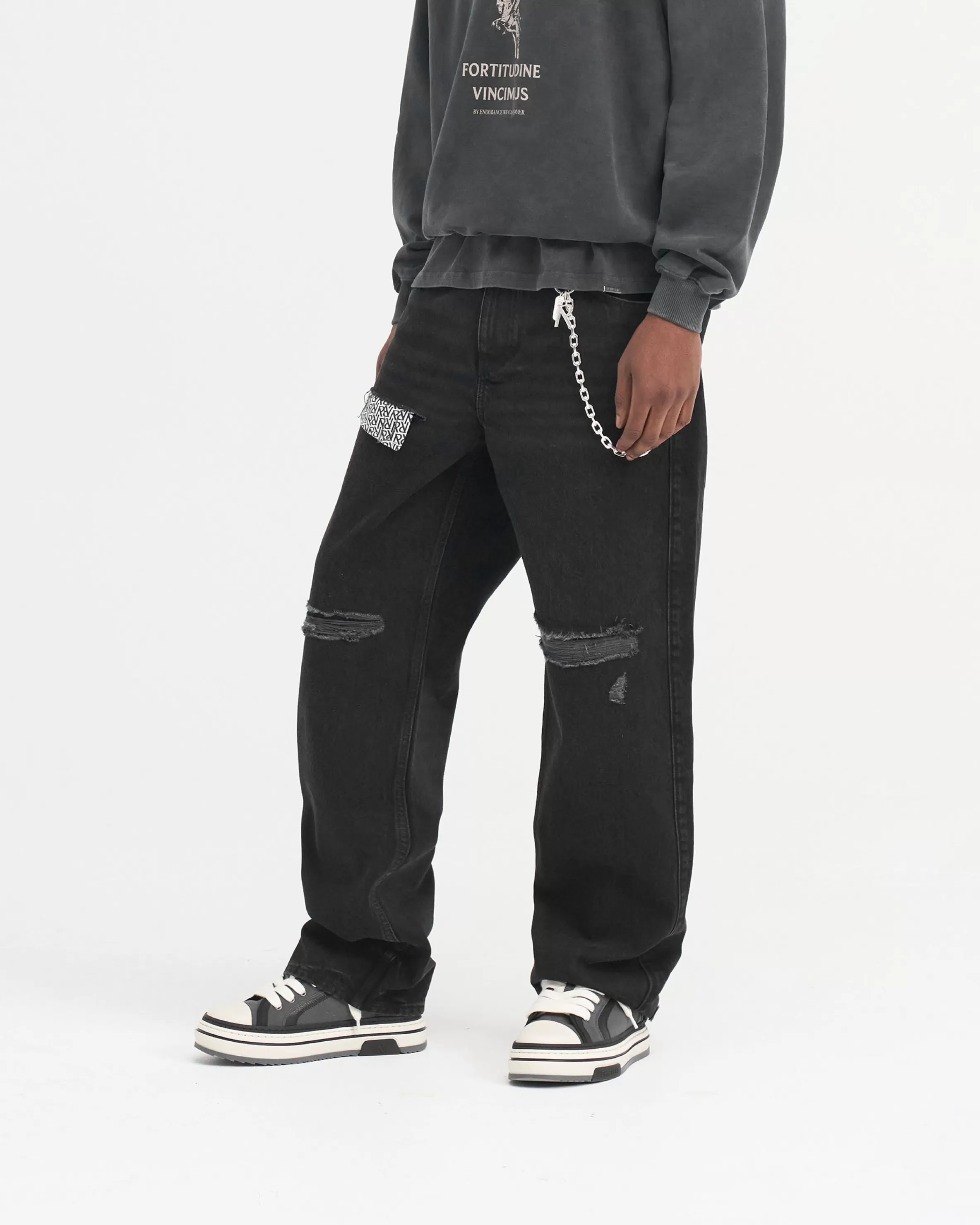 This item purchased in the Black Friday Sale is final sale and cannot be returned or exchanged. Introducing the R3D Destroyer Baggy Denim in Black. Crafted with a soft hand feel denim fabric, these jeans have a relaxed fit throughout the leg. They have a heavy wash with tacking to stress areas with whiskering to the denim. The jeans have rips throughout the leg, with a visible Initial monogram pocket bag to the top of the thigh, and an embroidered Initial to the rear pocket. Black Ripped Jeans Baggy Fit Visible Monogram Initial Pocket Bag Zip Fly Belt Loops Initial Branded Button u0026amp; Rivets Composition: 100% CottonCare: wash inside out with similar colours at 40 degrees celsius. Medium temperature iron. Do not bleach or tumble dry.Note: Due to the nature of the dying process, colour may transfer onto garments and upholstery Model is 182cm and 73kg wearing size MediumProduct
