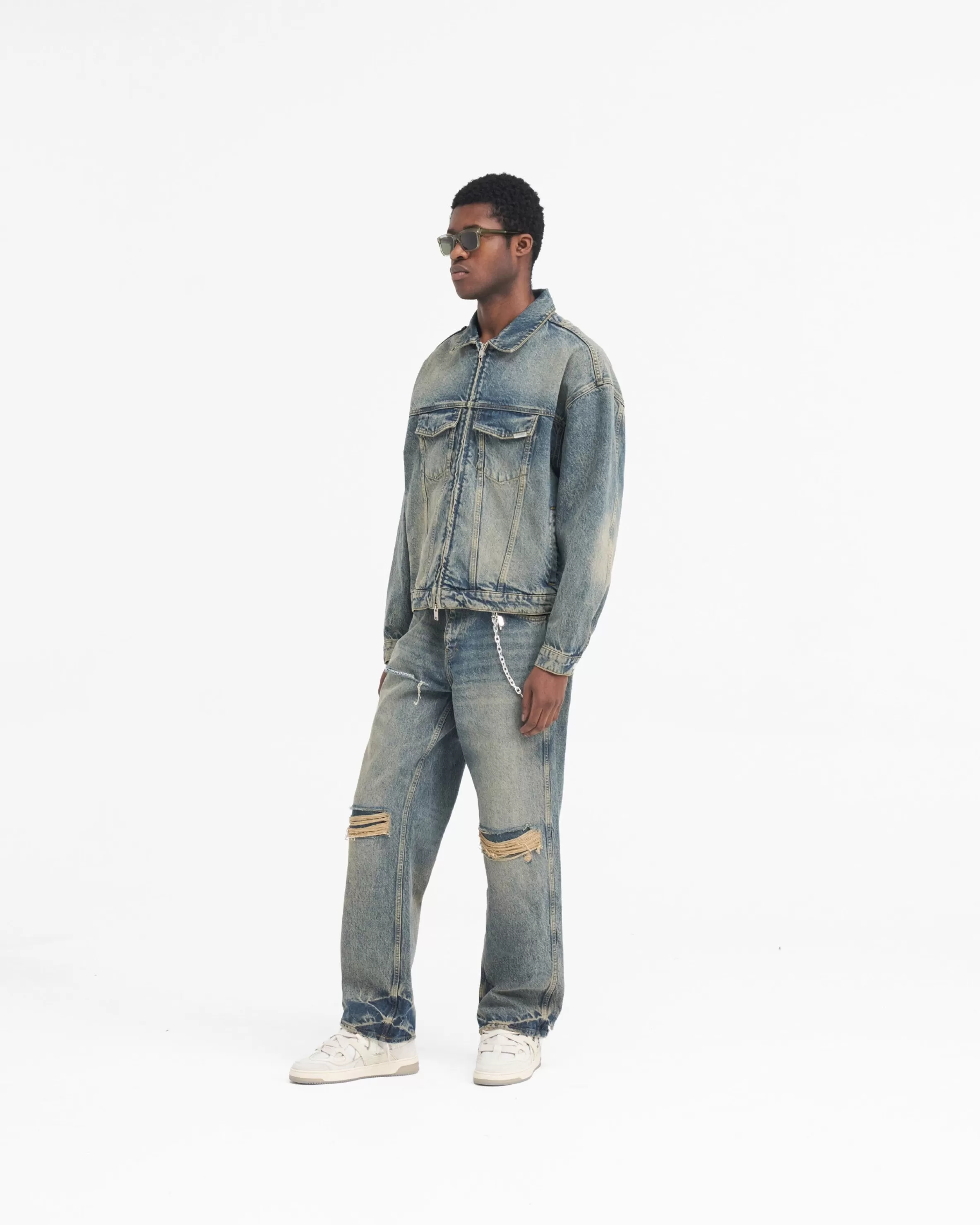 R4 Denim Jacket – Blue Cream^Represent Clearance