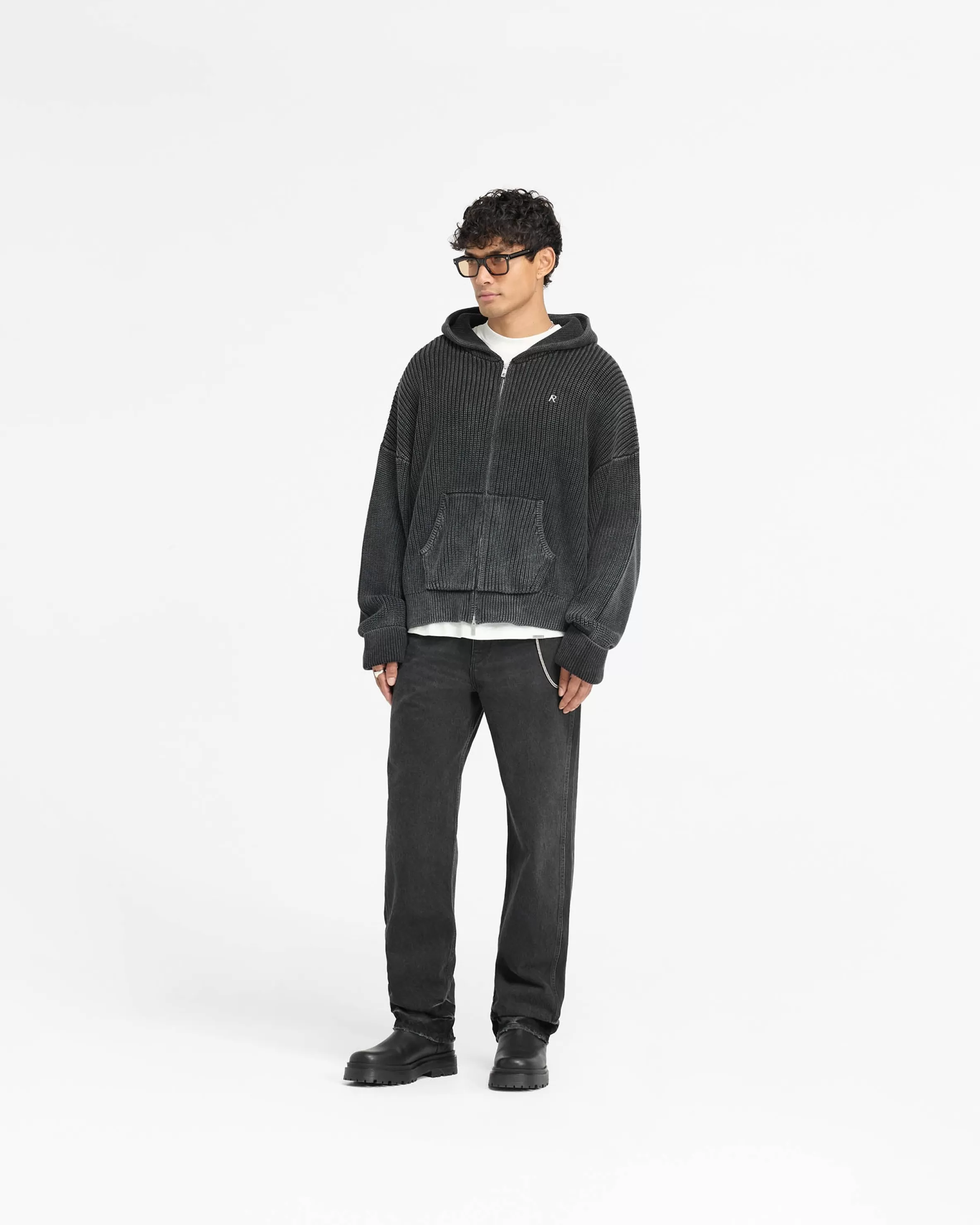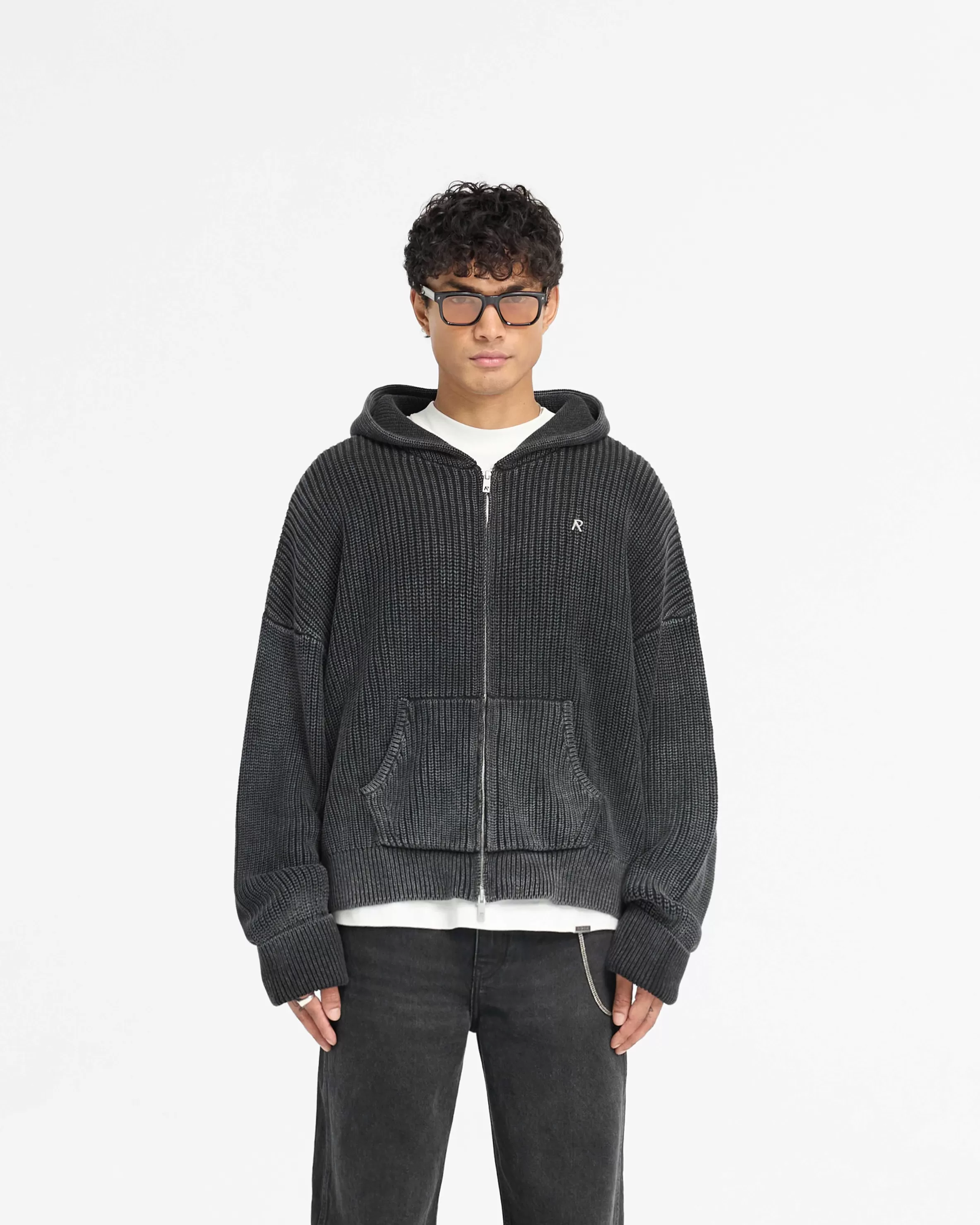 Ribbed Zip Through Hoodie – Jet Black^Represent Clearance