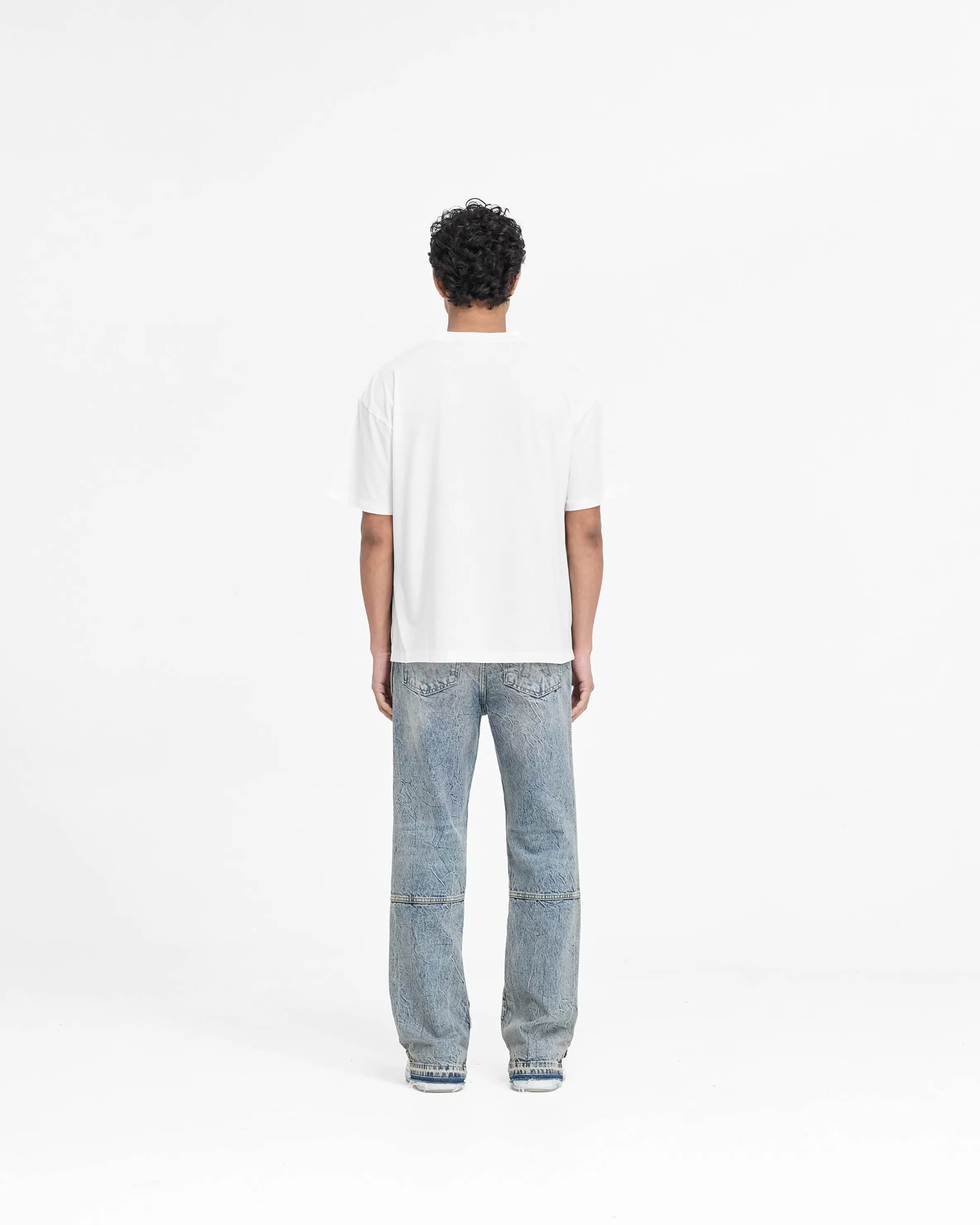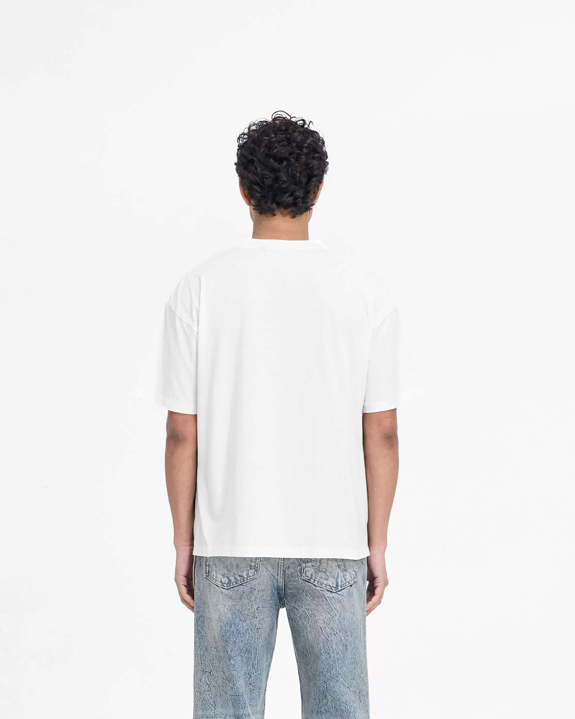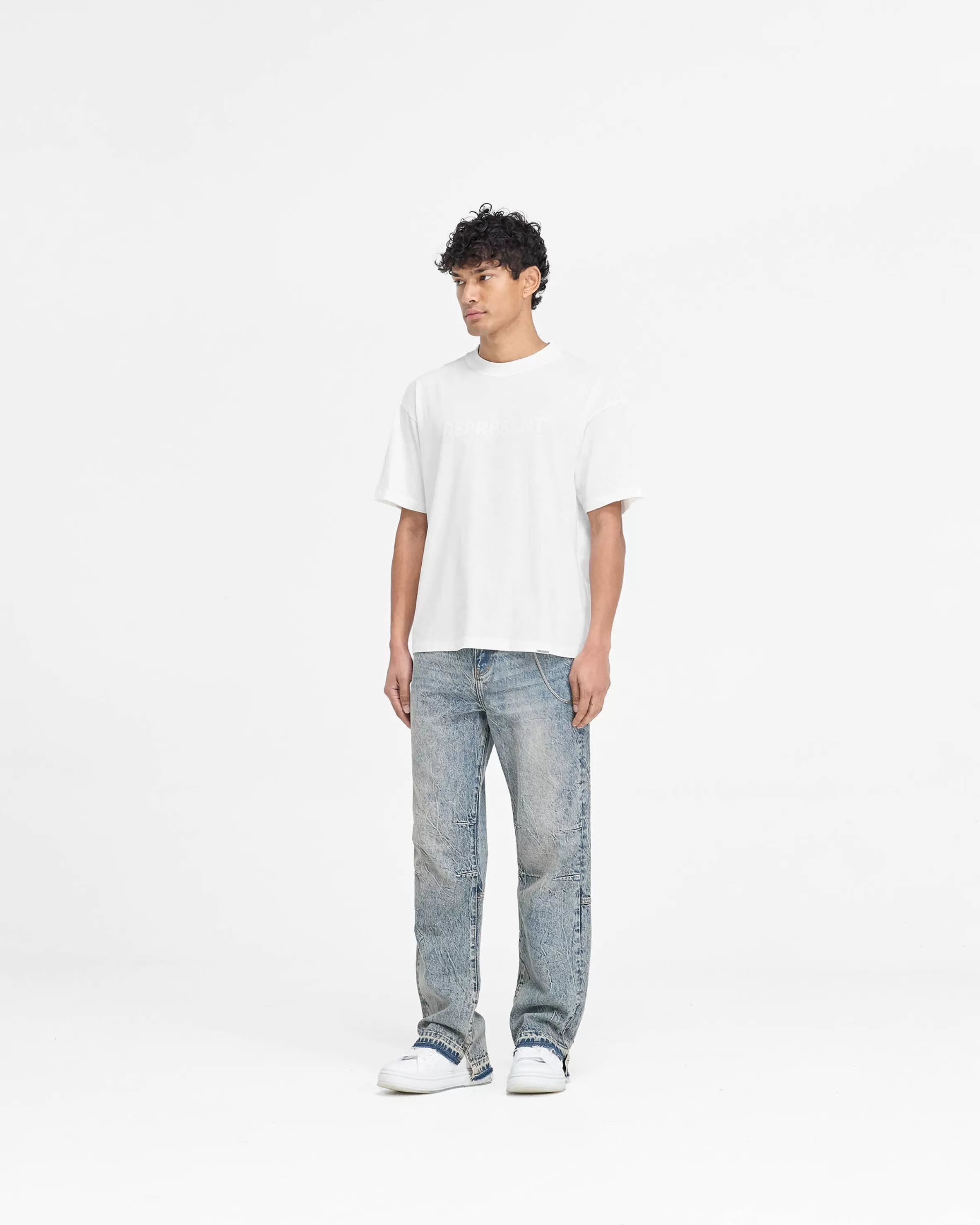 Introducing the Serif Logo T-Shirt in Flat White, a slightly oversized t-shirt crafted from 100% jersey cotton with a carbon finish for a super soft hand feel. The t-shirt has a blind hem for a minimalist finish, with high build embroidered serif branding to the front. It is finished with a Represent metal bar to the hem. Serif Logo T-Shirt Flat White Slightly Oversized Super Soft Finish High Build Embroidery Represent Metal Bar Logo Composition: 100% Cotton Product Care: Mild Wash at 30 Degrees Celsius. Do not bleach, do not tumble dry, do not dry clean. Line dry in shade. Cool iron on reverse. Model is 188cm and 75kg wearing size MProduct