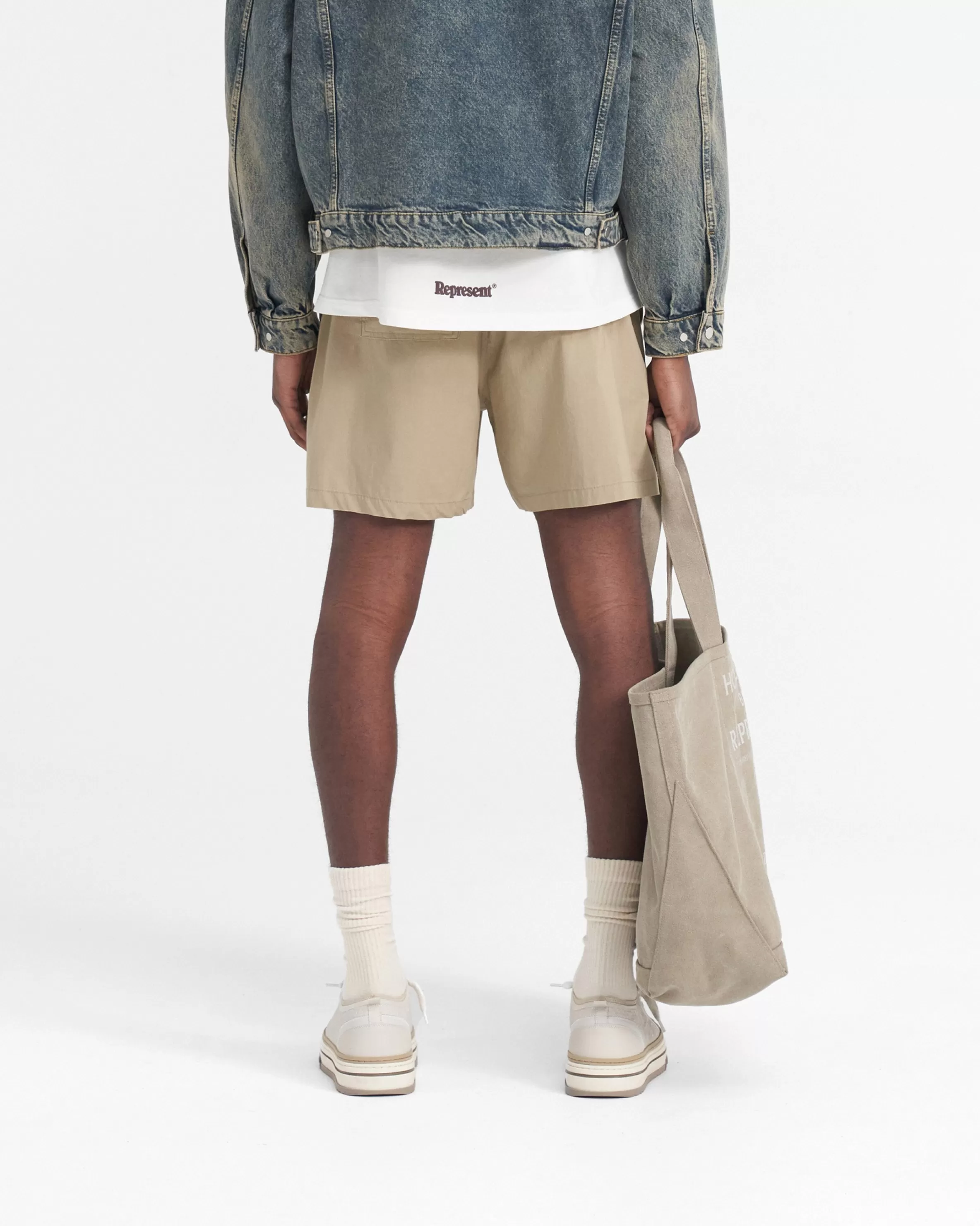 Introducing the Represent Short in Washed Taupe, a minimalist short style designed for every summer occasion. Crafted from a lightweight cotton u0026amp; nylon blend, these shorts have an elasticated waistband with internal drawcord. They have side seam pockets and a side split hem. The shorts are finished with Represent embroidery to the front. The fabric dye process of these shorts creates a faded wash, making each piece truly unique. Washed Taupe Lightweight Shorts Elasticated Waistband Internal Drawcord with Branded Rubber Aglets Represent Embroidery Zip Hand Pockets Composition: 61% Cotton, 33% Nylon, 6% Elastane Care: Machine wash inside out with similar colours at 30 degrees. Cool iron on reverse. Do not bleach, tumble dry, dry clean, use fabric softener or dry in direct sunlight. Model is 182cm and 73kg wearing size MediumProduct