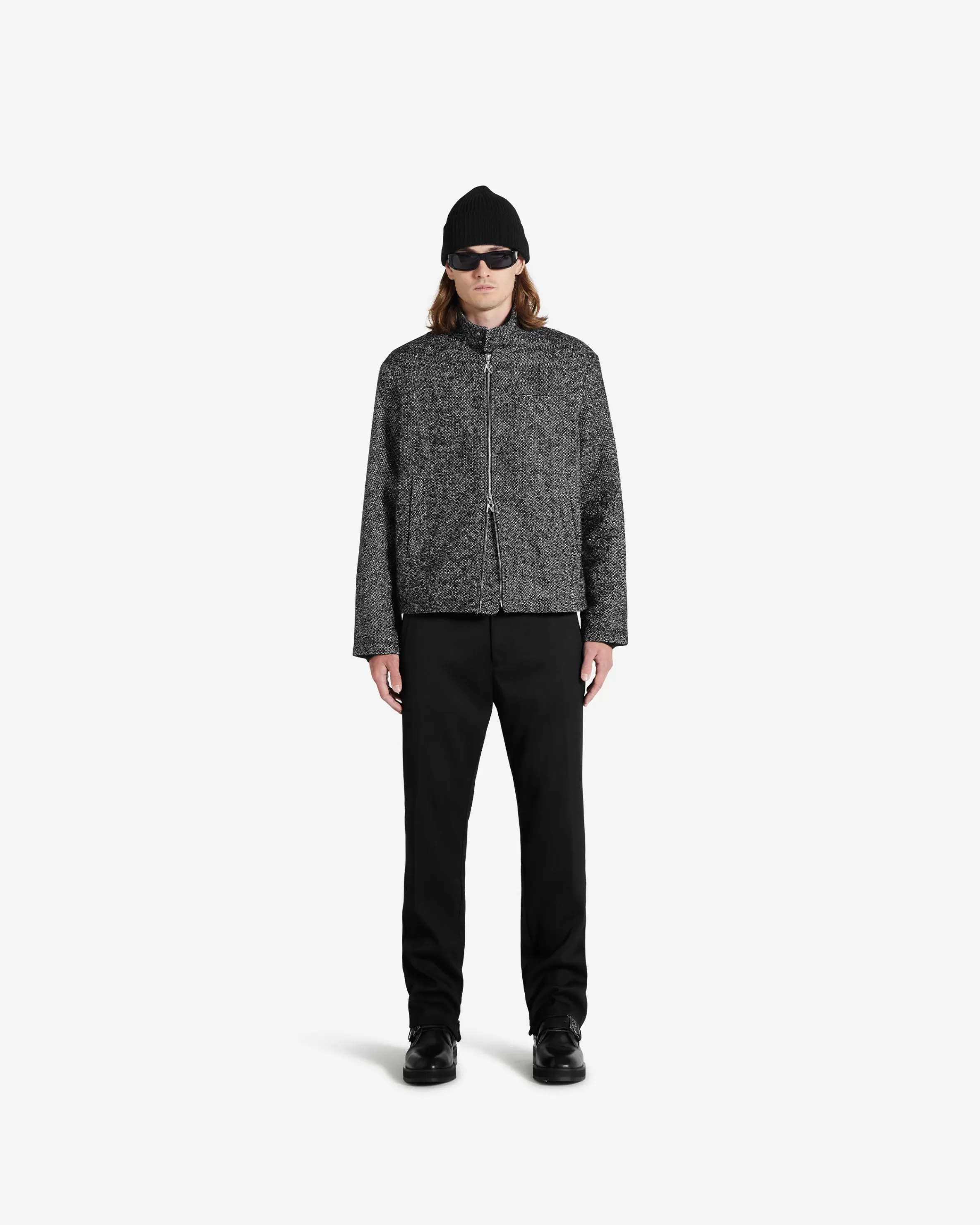 This item purchased in the Black Friday Sale is final sale and cannot be returned or exchanged. Introducing the Smart Jacket, an elevated everyday piece, perfect for dressing up casual outfits or dressing down formal. The Smart Jacket comes in woven black and white Marble yarn, with two Initial RiRi zip closures to the front and cobrax popper fastenings to the stand collar. The jacket has a slightly oversized fit and the option to size down for a more tailored look. It is lined with Represent jacquard viscose. Smart Jacket Oversized Fit Size Down for Tailored Fit Black u0026amp; White Woven Yarn Double Initial RiRi Zip Closure Stand Collar Composition: Outer: 48% Acrylic, 30% Wool, 14% Polyester, 4% Alpaca, 4% Other FibresLining: 100% ViscoseSpecialised Dry Clean Only Model is 188cm and 78kg wearing size Large.Product