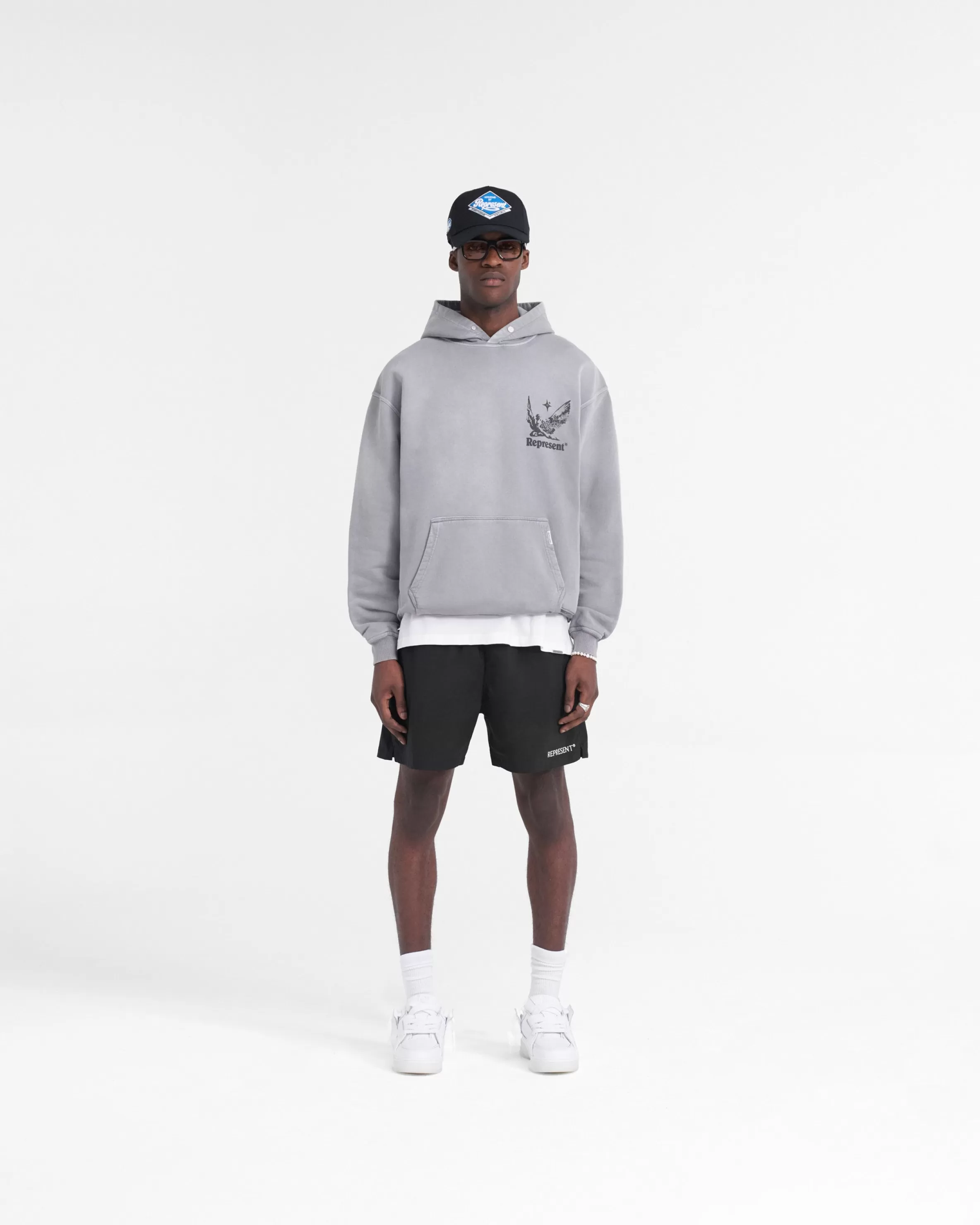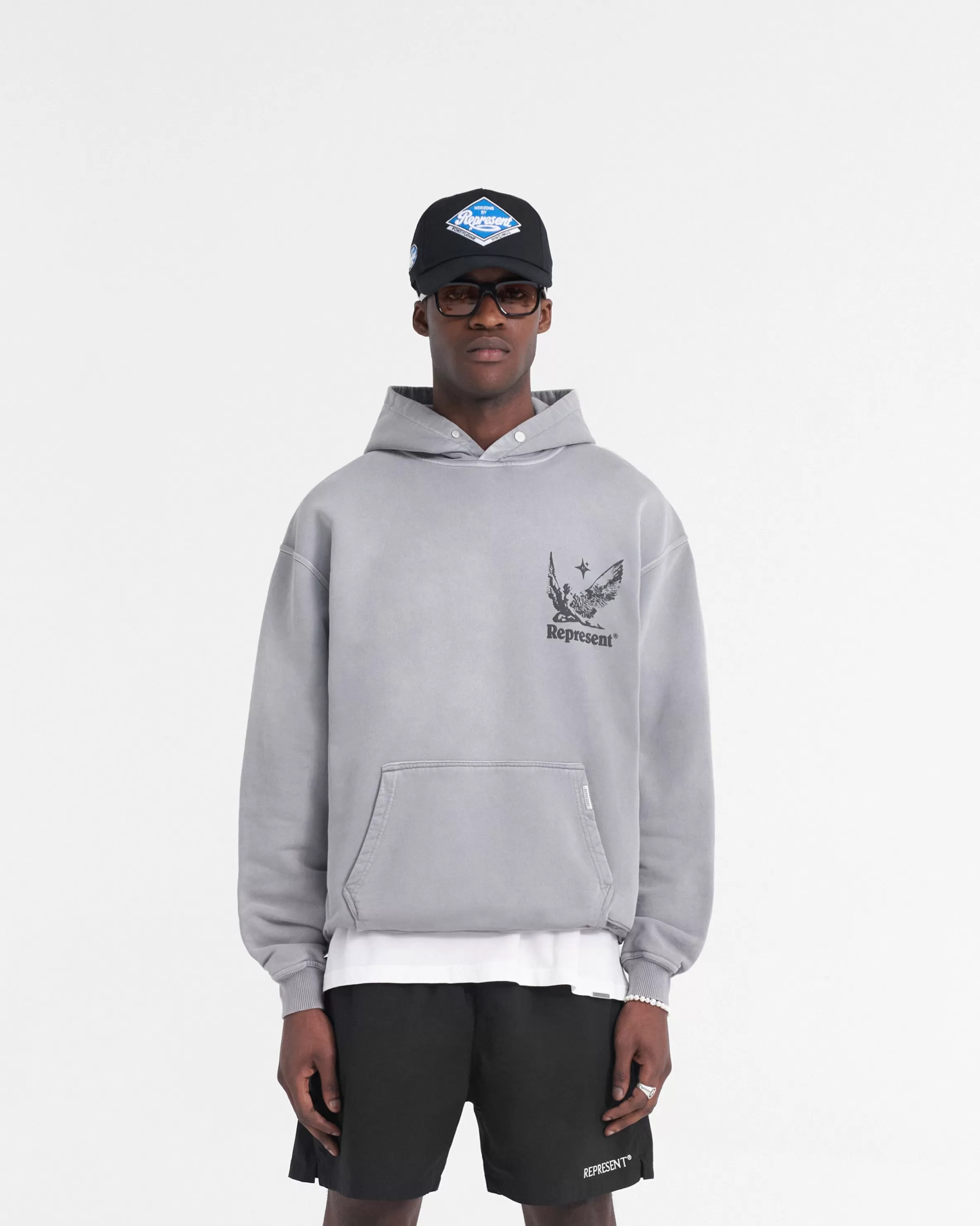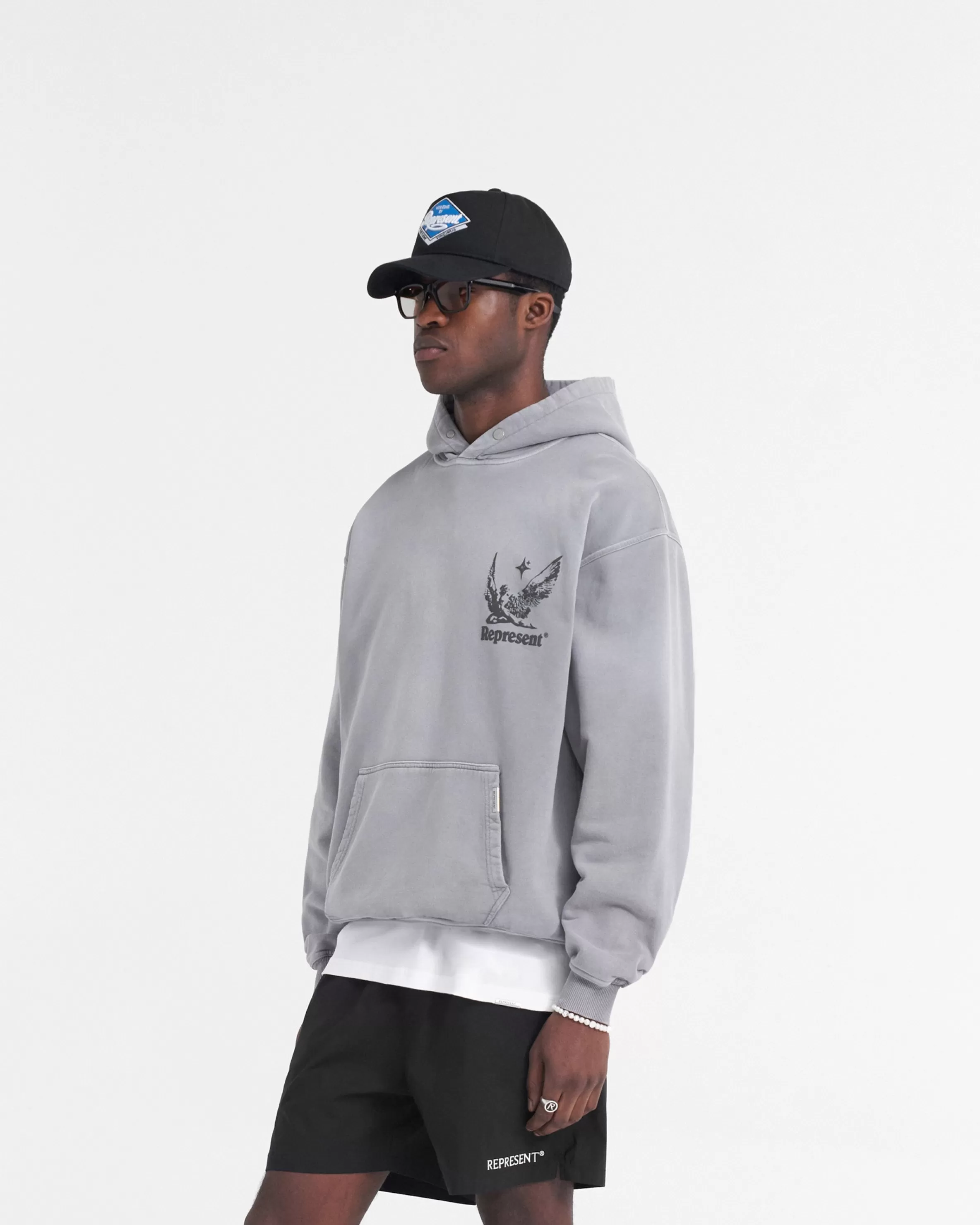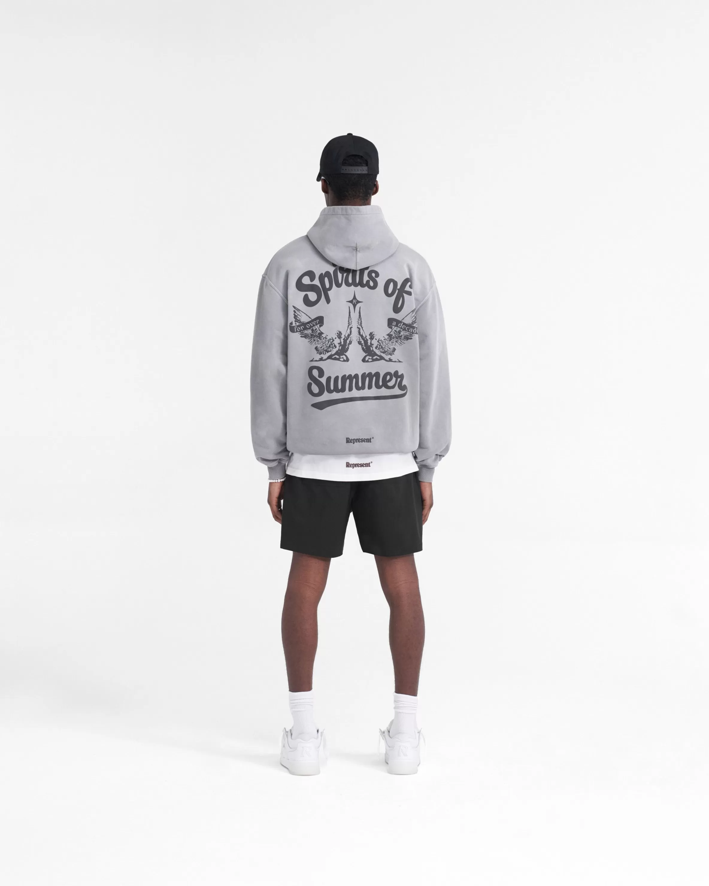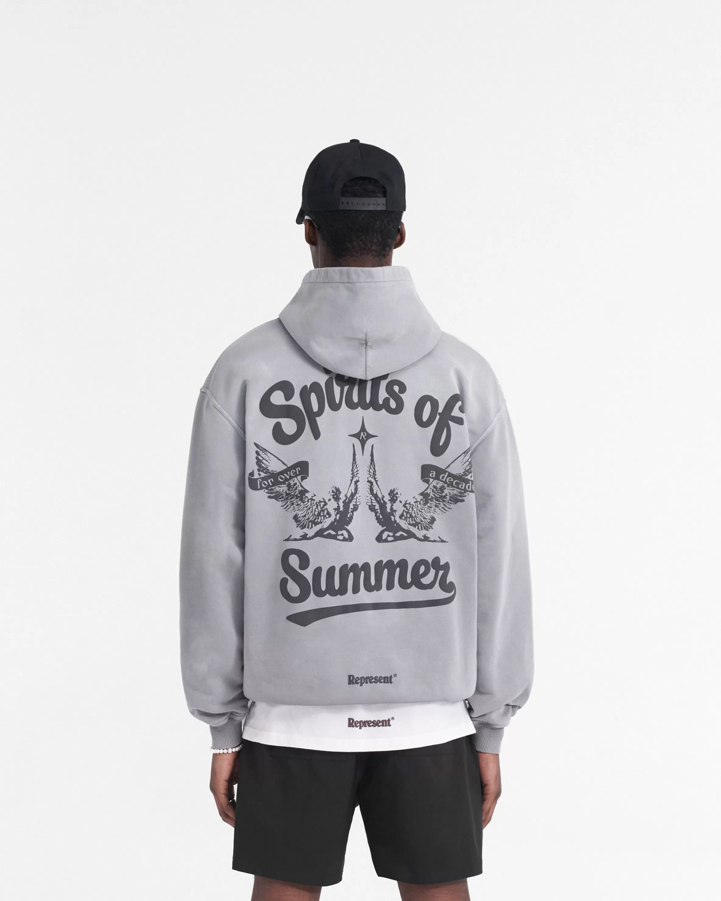Introducing the Spirits of Summer Hoodie in Mist, a luxury cotton hoodie with a slightly oversized fit. This hoodie has a ribbed hem and cuffs, with a Cobrax popper to the hood and Represent metal bar to the pocket. It has been crafted with a pigment dye and spray technique, creating a gradient wash, making each piece truly unique. The hoodie is finished with our puff print Spirits of Summer graphic to the front and back. Mist Graphic Hoodie Slightly Oversized Fit Ribbed Hem u0026amp; Cuffs Cobrax Popper to Hood Represent Metal Bar Puff Print Graphic Composition: 100% Cotton Care: Dye gradually disperses through washing. We recommend that you wash this hoodie at 30 degrees celsius, and dry flat only. Model is 182cm and 73kg wearing size MediumProduct