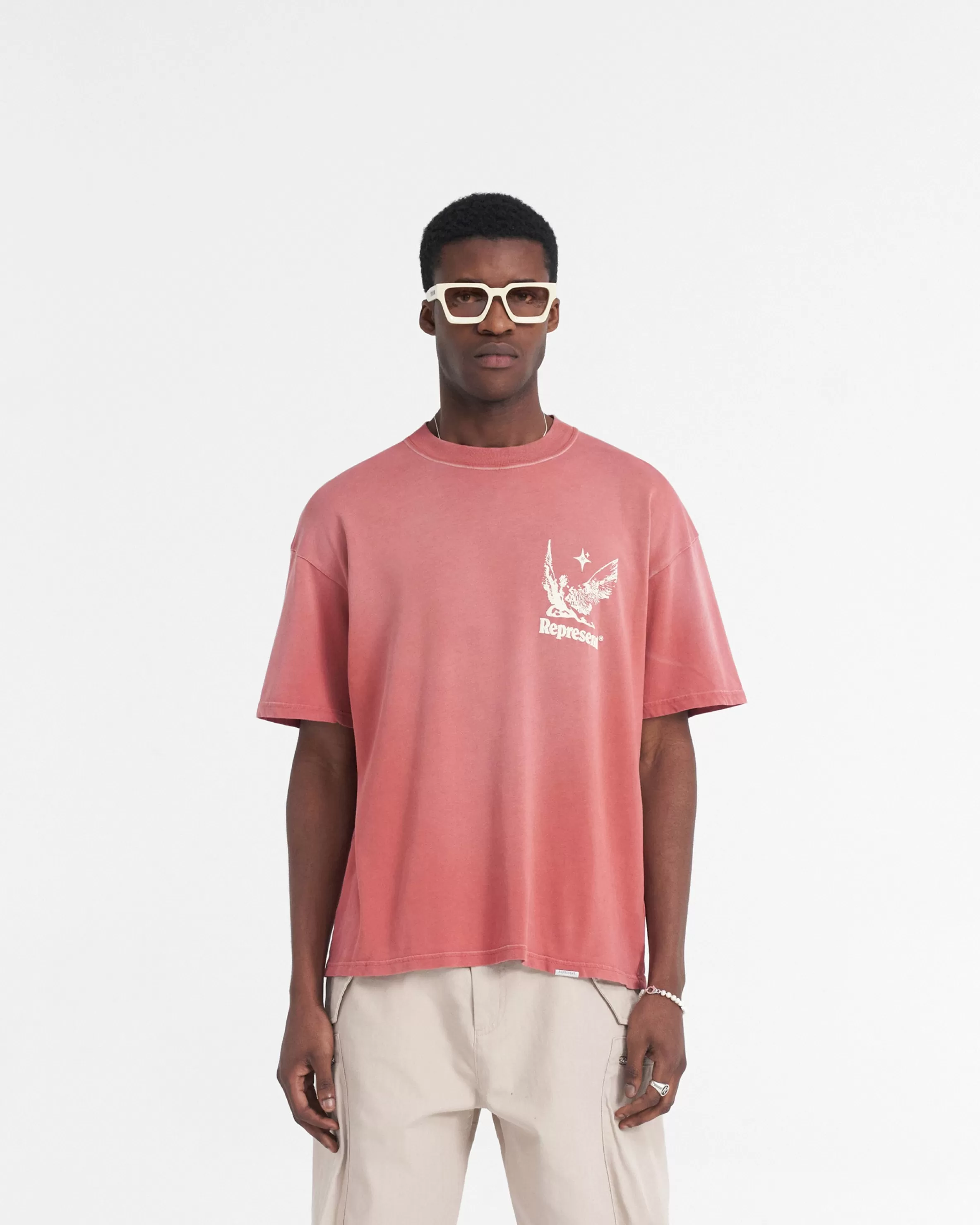 Introducing the Spirits of Summer T-Shirt in Sunrise, a luxury cotton t-shirt with a slightly oversized fit. This t-shirt is crafted with a pigment dye and spray technique, creating a gradient wash, making each piece truly unique. The t-shirt is finished with our Spirits of Summer puff print graphic to the front and back, and a Represent metal bar to the hem. Sunrise Oversized T-Shirt Pigment Dye u0026amp; Spray Technique Represent Metal Bar to Hem Puff Print Graphic to Front u0026amp; Back Composition: 100% Cotton Care: Dye gradually disperses through washing. We recommend that you wash this t-shirt at 30 degrees celsius, and dry flat only. Model is 182cm and 73kg wearing size MediumProduct