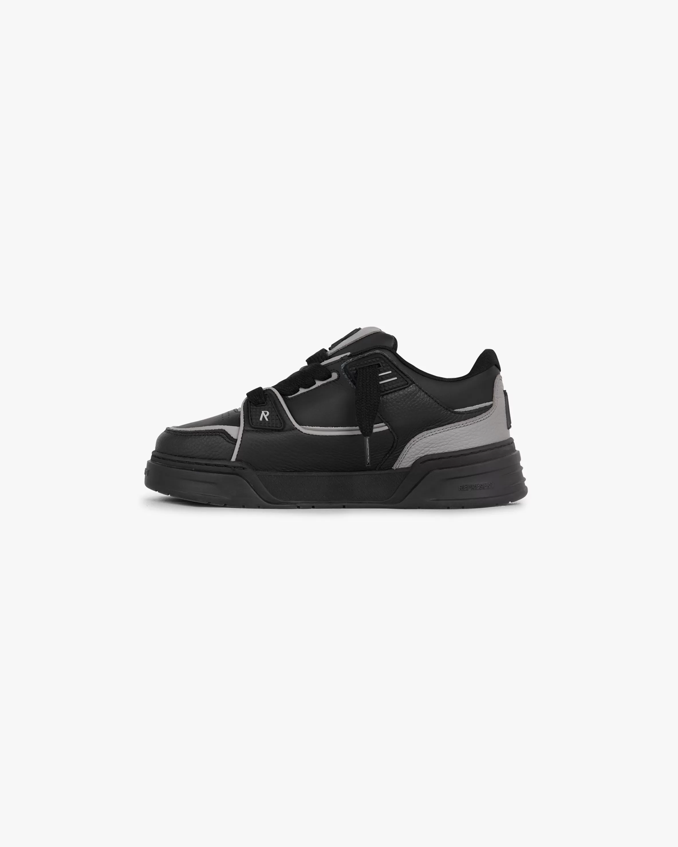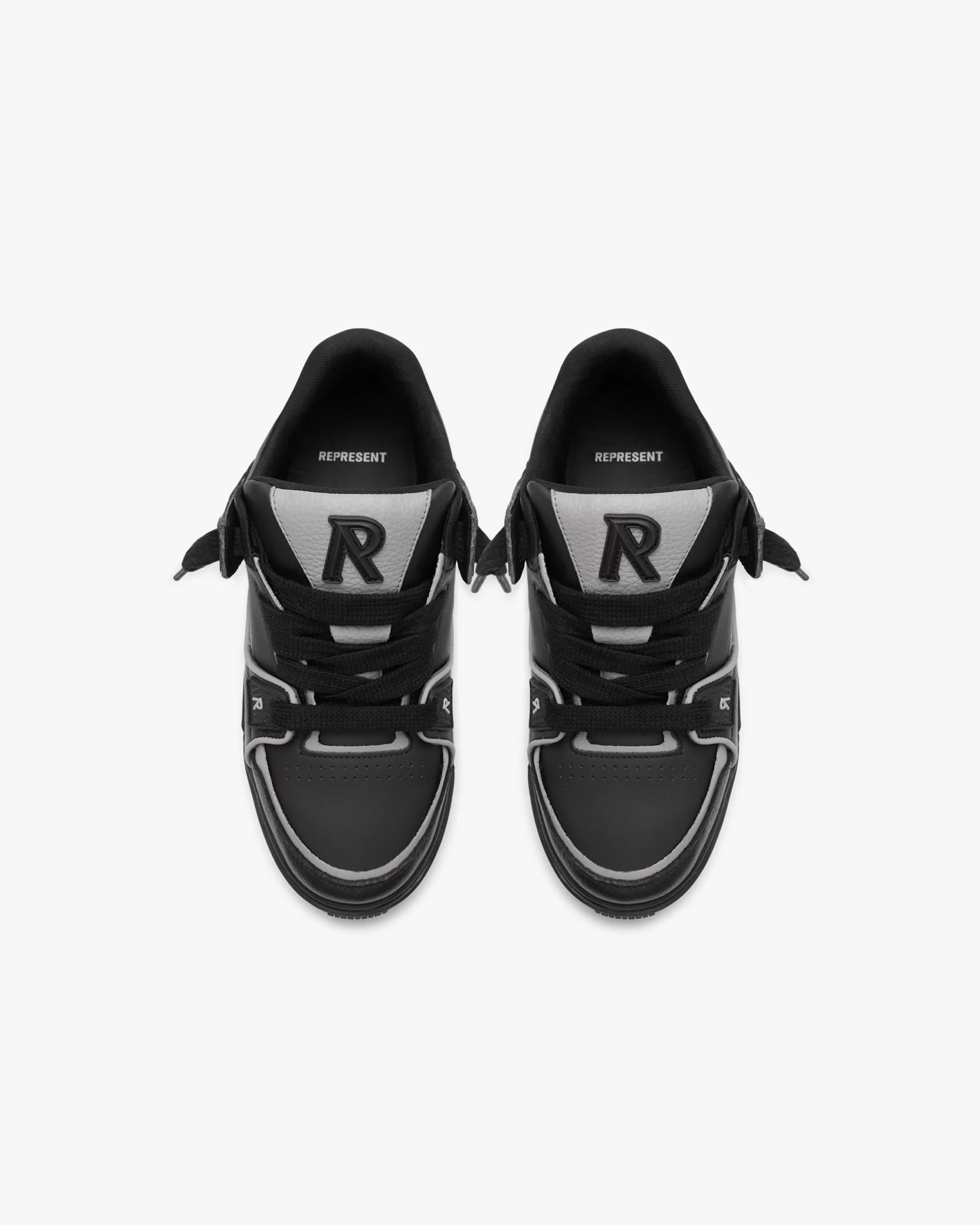 Introducing the Studio Sneaker in Triple Black. Crafted with a fastidious attention to detail, the Studio Sneaker boasts a full Italian leather upper, combining flat and tumbled leather for a luxury textural experience. The mesh lining and leather footbed afford ultimate comfort with every step, while the branded TPU trims on the eyestay and quarter add a minimalist touch of Represent synchronicity. The Studio Sneaker features a black branded TPU Initial to the tongue and heel, each adorned with a chamfer shape. The black rubber outsole, complete with an Initial logo, provides durability whilst elevating the shoe’s aesthetic. The shoe has thick tonal cotton laces, and an elastic gusset on the tongue, affording wear without the need to tie the laces. The shoe boasts a wealth of internal padding, cradling the foot in comfort. Studio Sneaker Triple Black u0026amp; Grey Italian Flat u0026amp; Tumbled Leather TPU Trims Initial Details Thick Lacing Tonal Laces Composition: Flat Leather, Tumbled Leather, TPU, Rubber Outsole Fits True to Size Product
