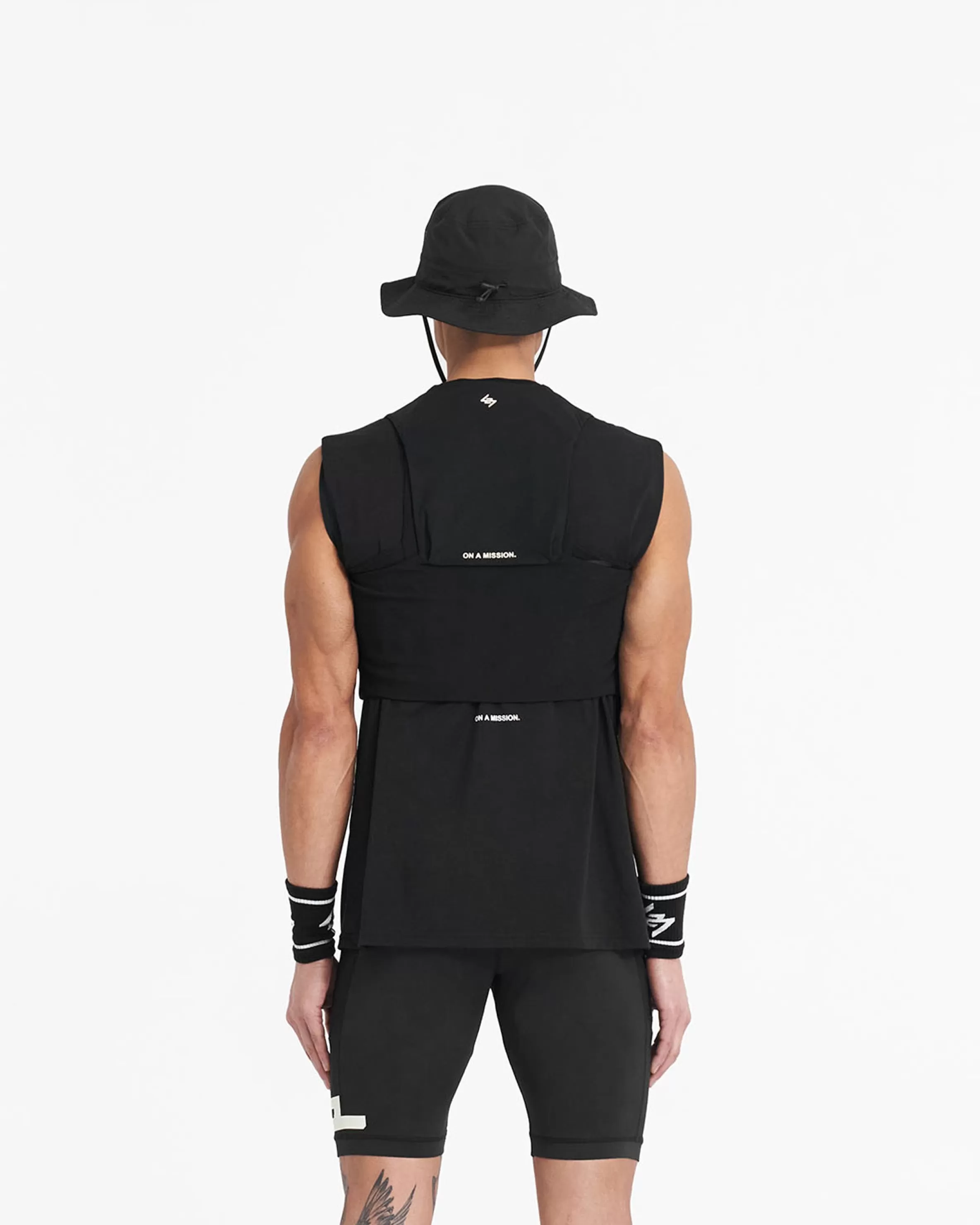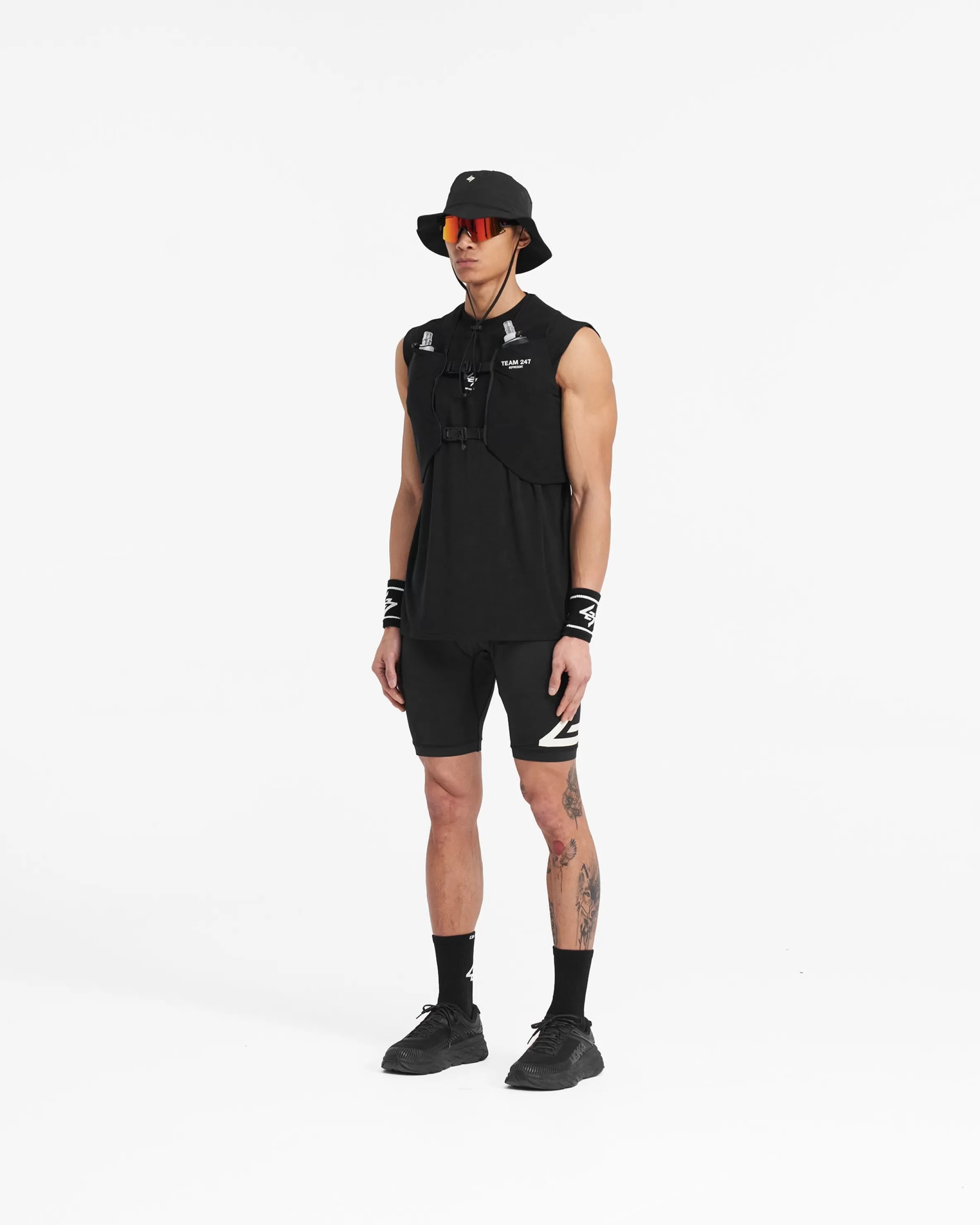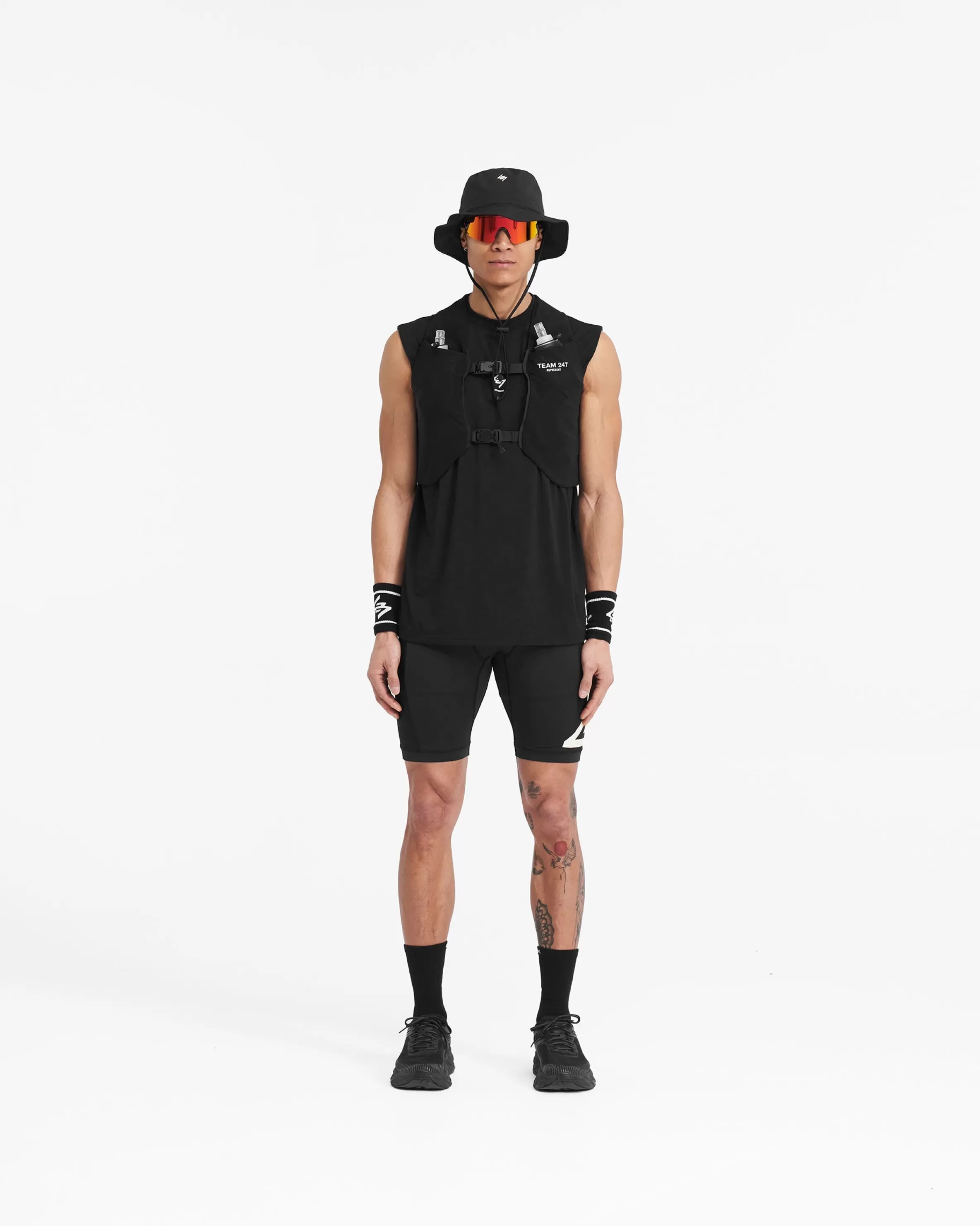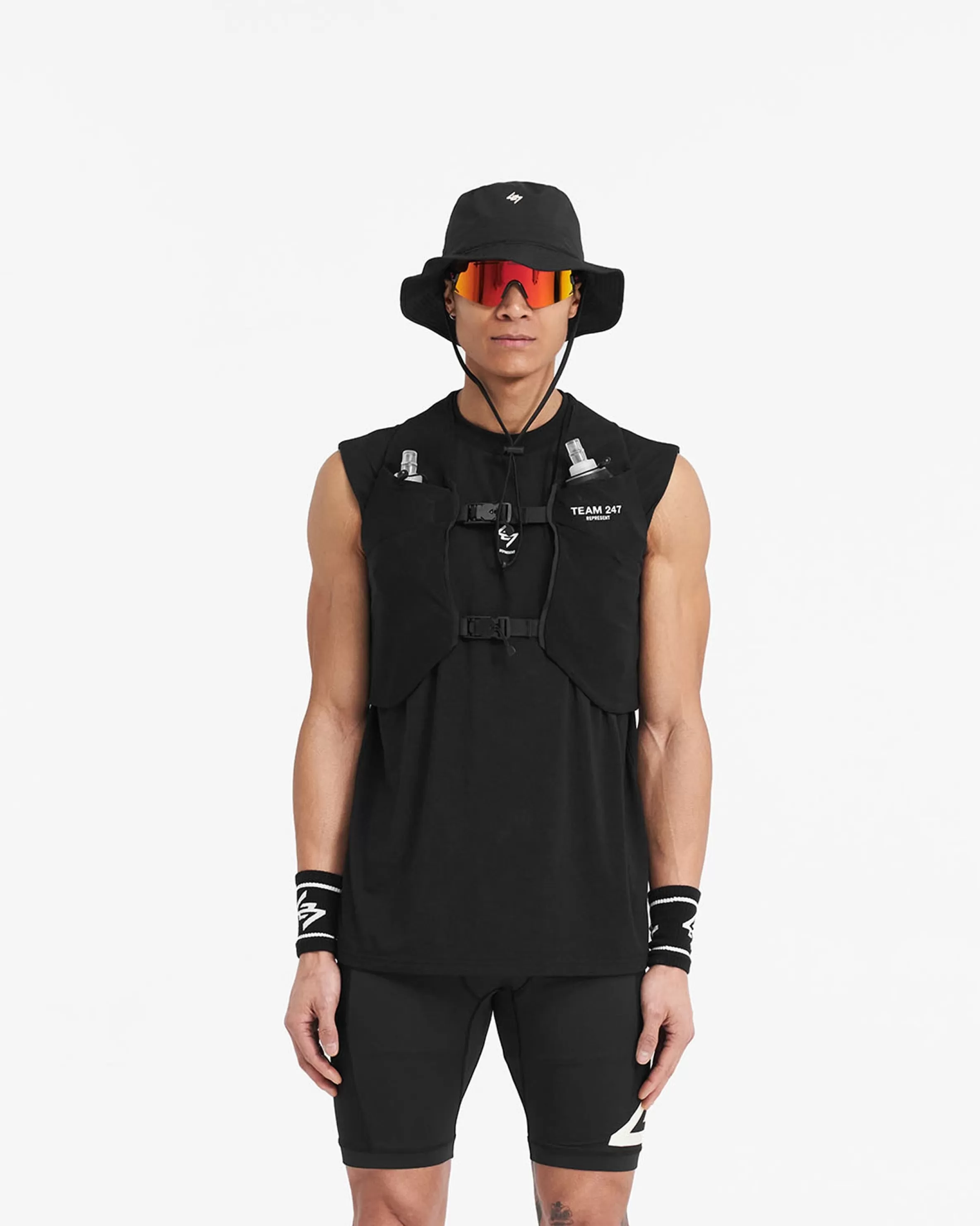 Introducing the 247 Chest Rig in Black, the ultimate workout companion for every walk, run, hike or trail. The Black Chest Rig is crafted from a mesh outer with an internal spacer mesh with padding for exceptional comfort. The 247 Chest Rig features magnetic buckles to the centre front of the chest for easy (un)fastening, multiple stretch power mesh pockets for securing gels, bottles and intra-workout snacks, with bungee cords to the top pockets to secure the 2x500ml provided branded water bottles. Both bottles are equipped with a bite valve for convenience. The rig also has a small zip pocket internally to store valuables. A rear pouch is also integrated into the back of the rig to hold a hydration pack (not included). It is finished with Team 247 branding to the front, and a 247 logo with On A Mission branding to the back. We recommend the 247 Chest Rig for all extended trail or road runs. Black Chest Rig Mesh Outer Internal Spacer Mesh Magnetic Buckles 2 Branded TPU Water Bottles Included (500ml each) Multiple Pockets – Open, Zip u0026amp; Bungee Cord Hydration Pack Pouch (Pack not Included) Composition: 100% PolyesterProduct
