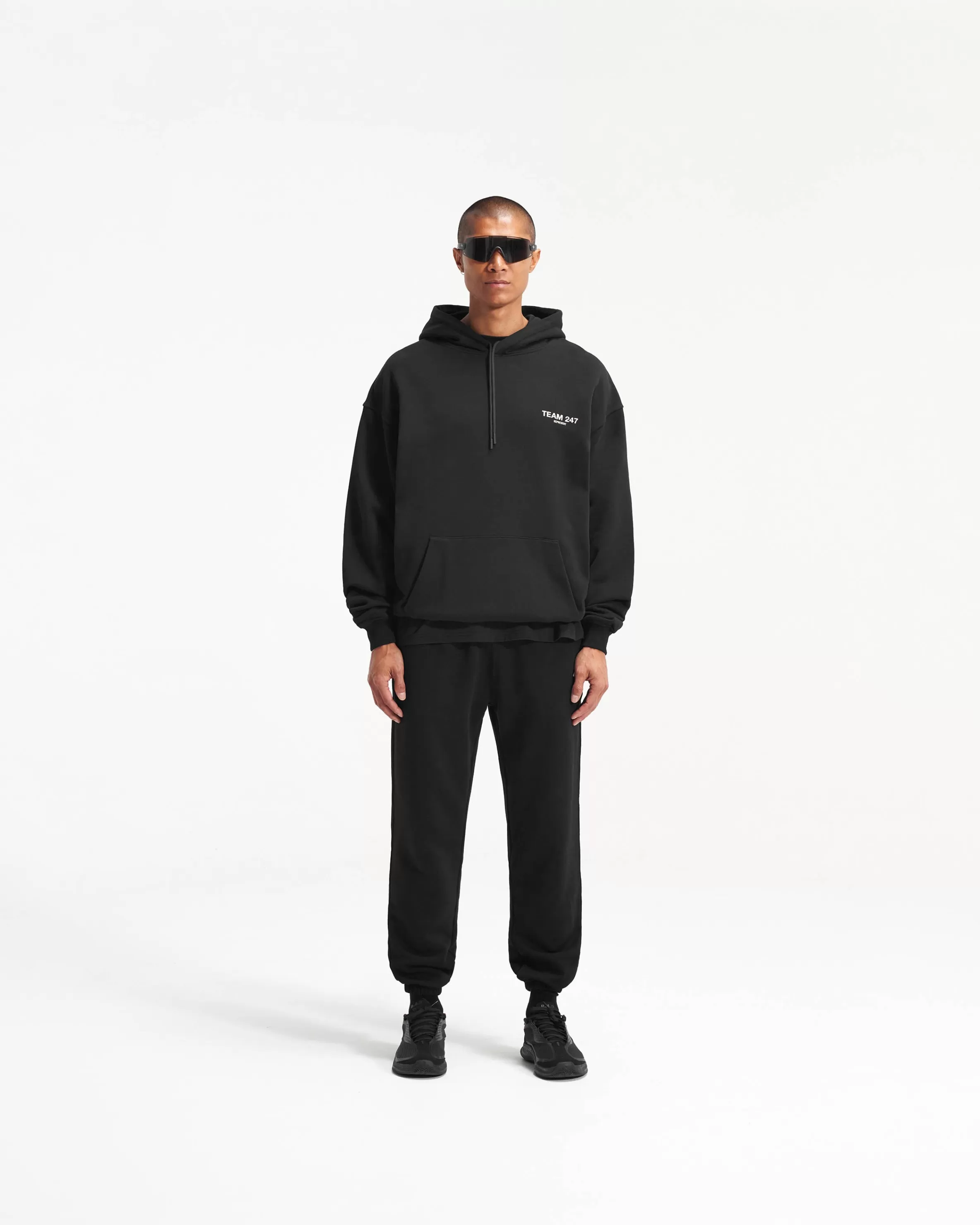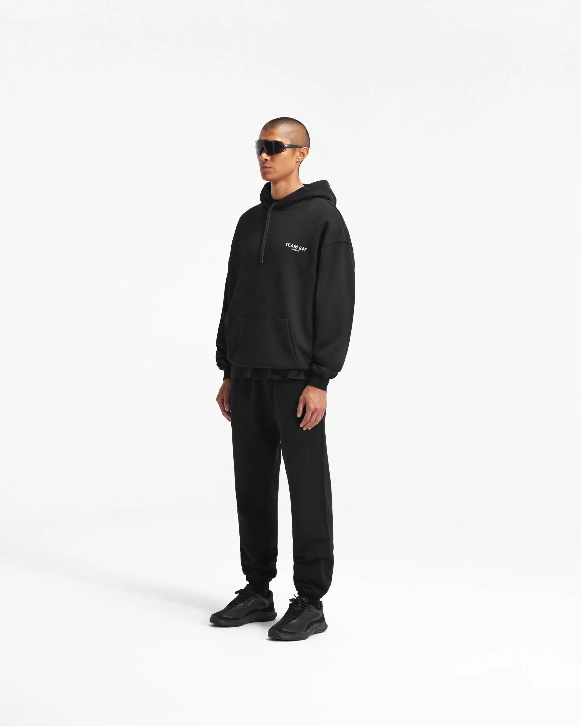 The Team 247 Hoodie in Black is the ultimate warm up layer for outdoor workouts, on the way to the gym, or whilst priming your body to train. With an oversized fit as well as a ribbed hem and cuffs, the hoodie provides unparalleled comfort, whatever the endeavour. This hoodie features a Team 247 print to the front and back, and tonal drawcords to the hood for an adjustable fit. Black Training Hoodie Oversized Fit Ribbed Cuffs u0026amp; Hem Internal Drawstring to Hood Team 247 Branding Composition: 100% Cotton Model is 187cm and 76kg wearing size MProduct