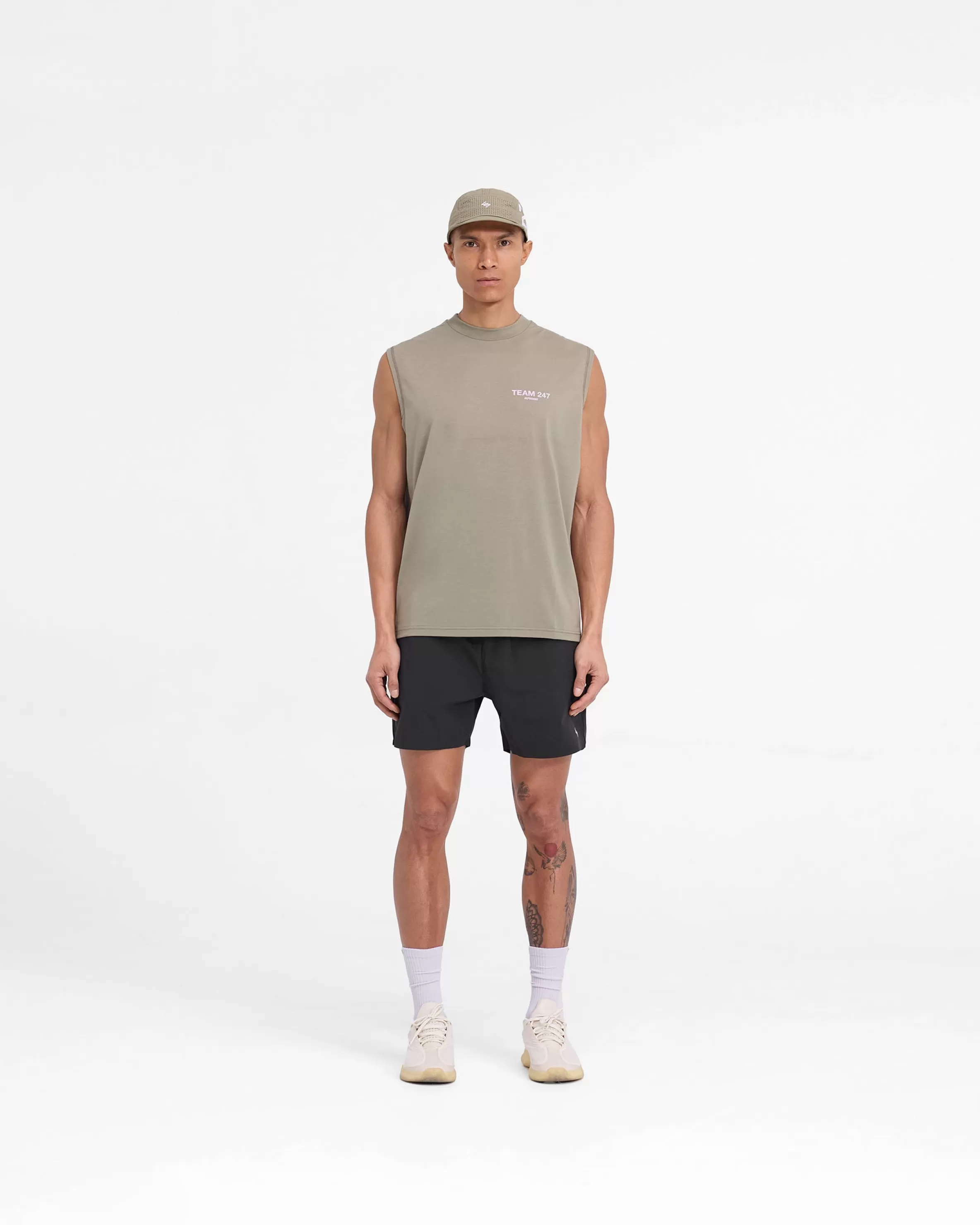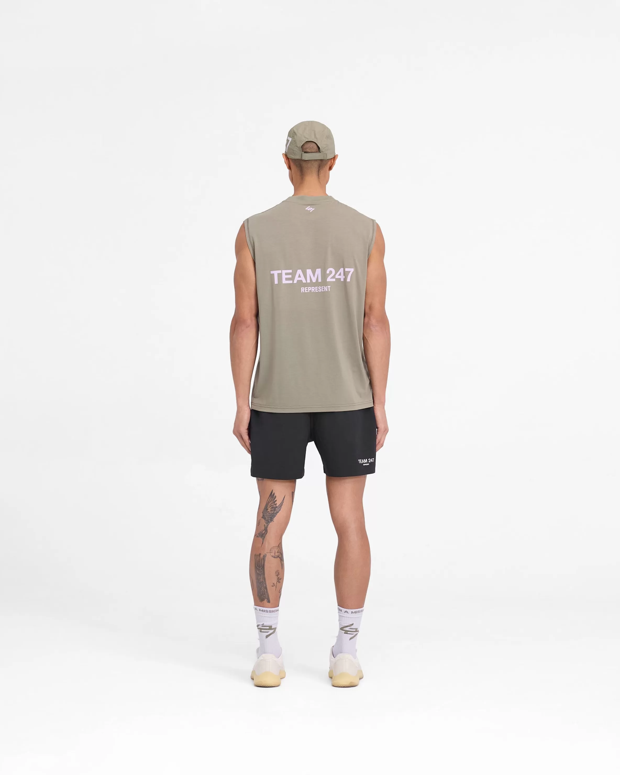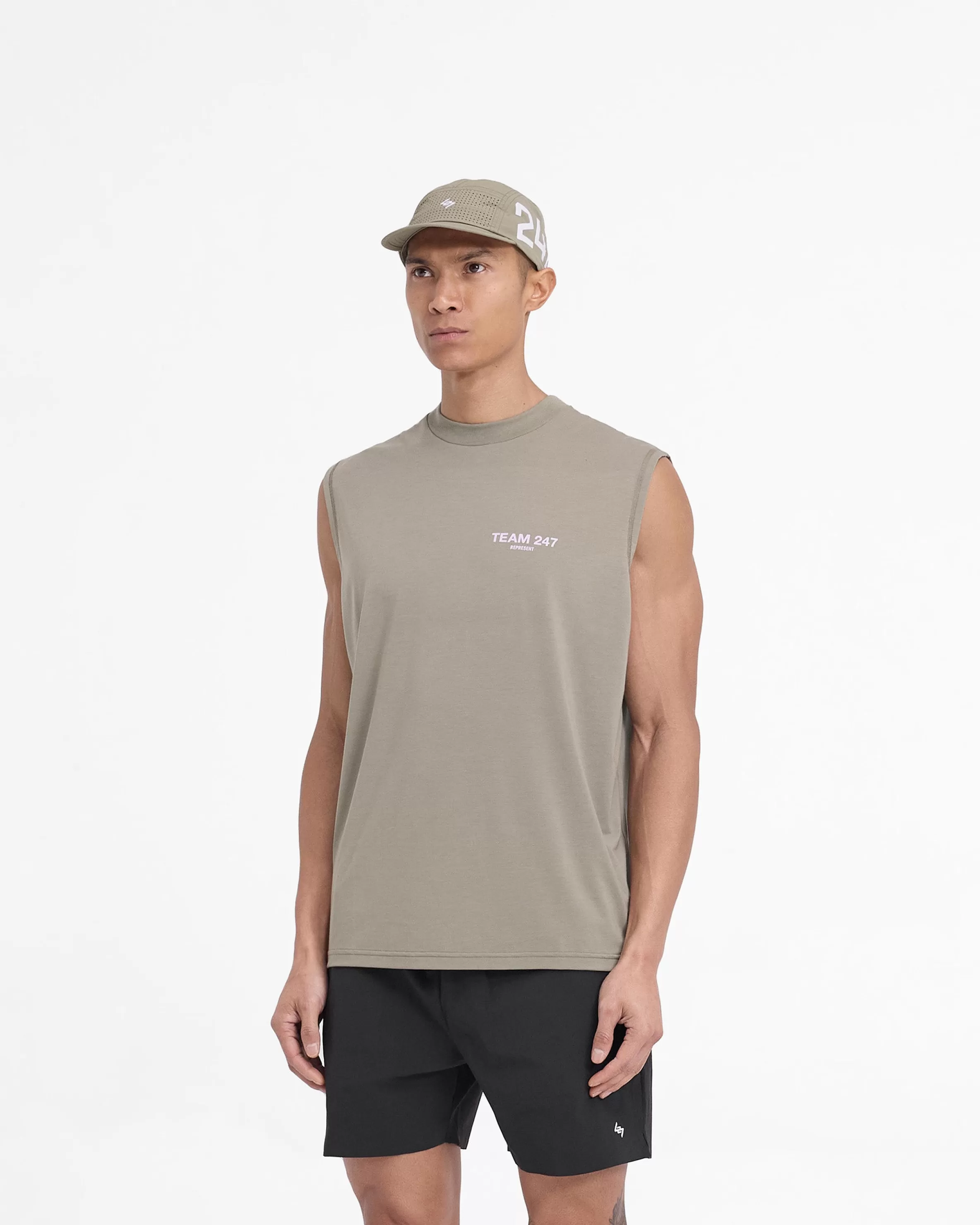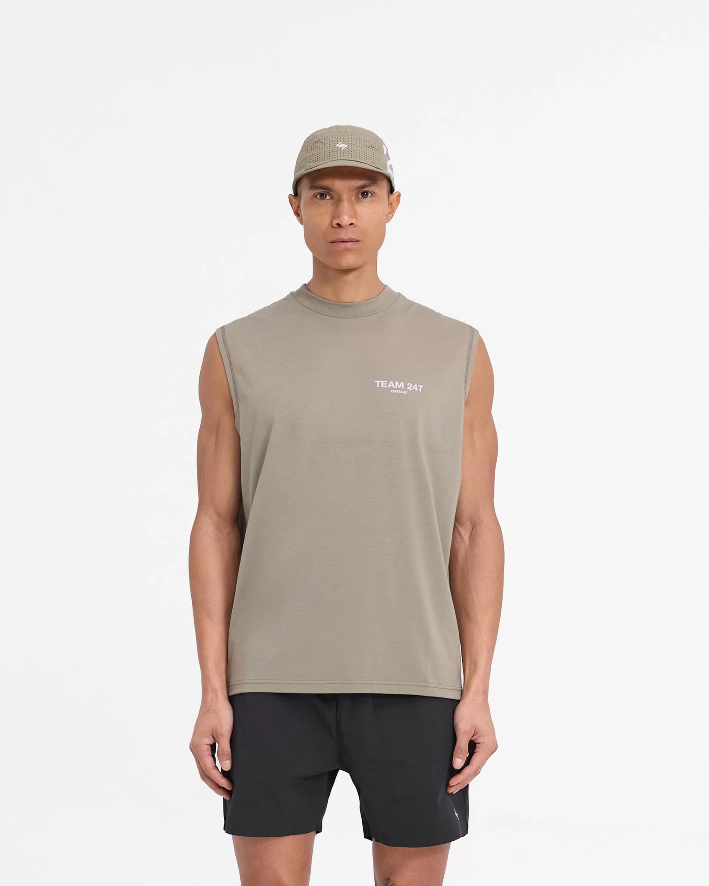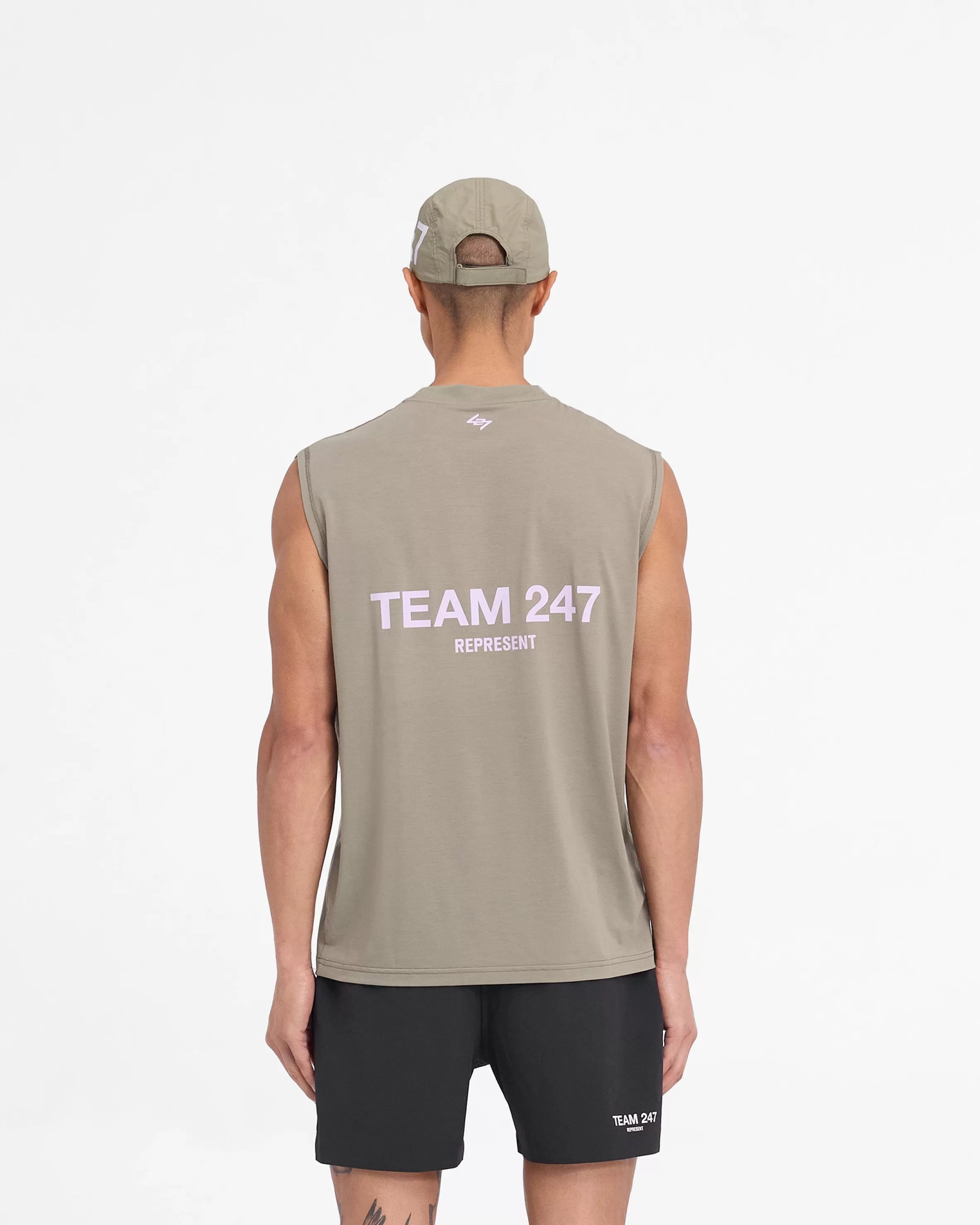 Introducing the Team 247 Oversized Tank Top in Khaki/Lilac, a slightly oversized training tank crafted with a quick dry…