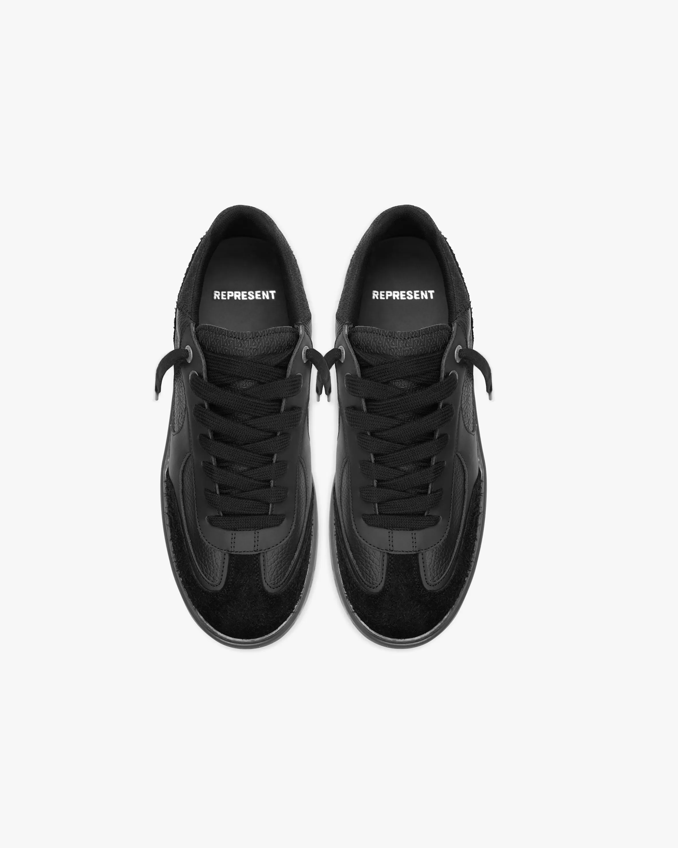 This item purchased in the Black Friday Sale is final sale and cannot be returned or exchanged. Introducing the Virtus in Off Black, a low profile minimalist sneaker crafted from a luxury tri-leather composition upper with a mix of flat leather, tumbled leather and hairy suede panels. The Virtus features repeat R Initial debossed trims throughout the shoe, an Initial debossed logo to the back and Represent logo to the tongue. The shoe is finished with a tonal semi translucent low profile outsole. Off Black Virtus Sneaker Low Profile Leather u0026amp; Hairy Suede Upper Initial details CompositionUpper: Flat Leather, Tumbled Leather u0026amp; Hairy SuedeOutsole: 100% Rubber Product