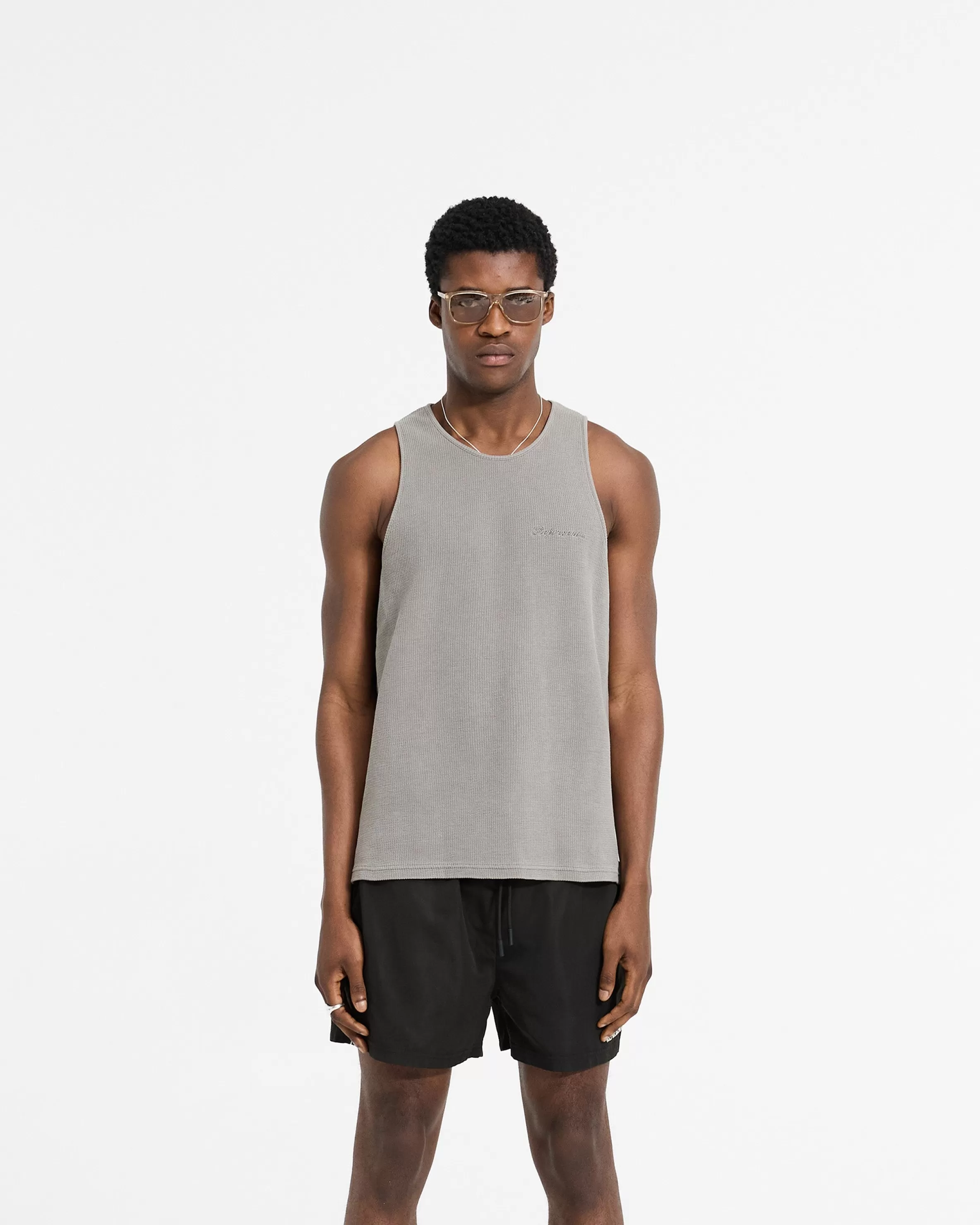 This item purchased in the Black Friday Sale is final sale and cannot be returned or exchanged. Introducing the Waffle Vest in Ultimate Grey, a regular fit vest with a mineral wash. Crafted from a luxury cotton, the waffle vest is finished with small Represent embroidery and metal bar logo to the hem. Ultimate Grey Waffle Vest Regular Fit Mineral Wash Represent Embroidery Composition: 50% Organic Cotton, 50% Polyester Waffle Jersey220gsm Care: Wash inside out at 30 degrees celsius. Hang dry only. Model is 182cm and 73kg wearing size MProduct