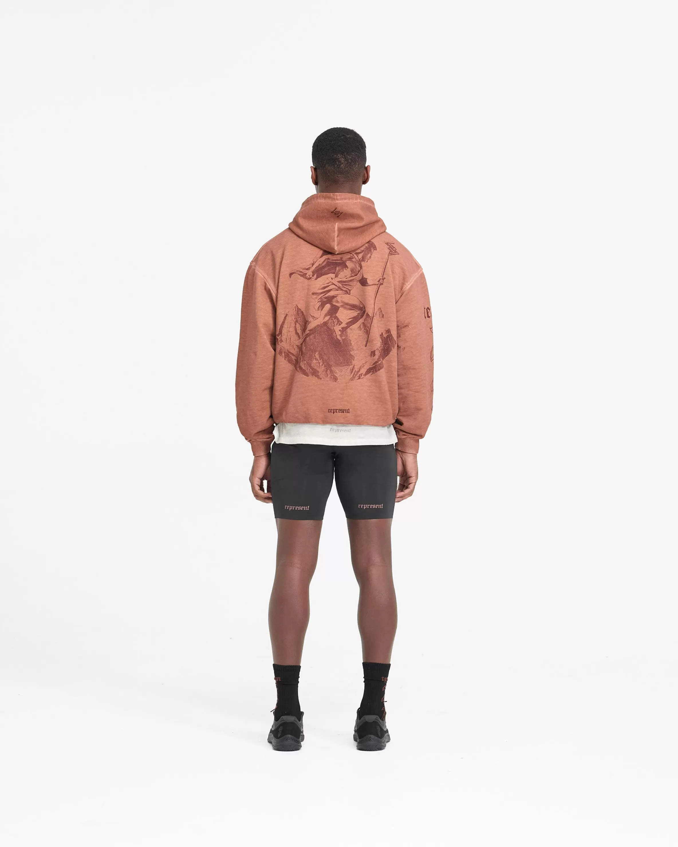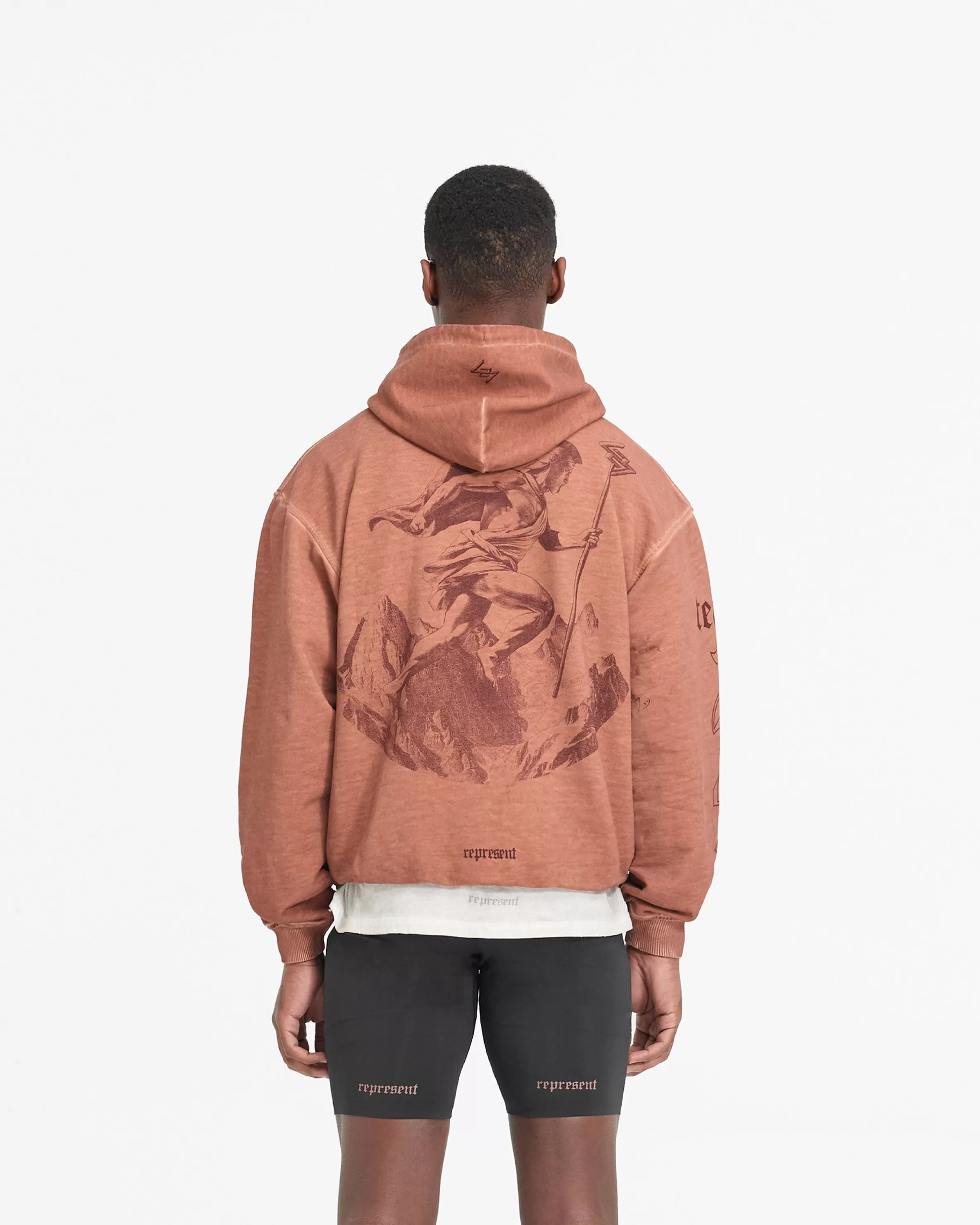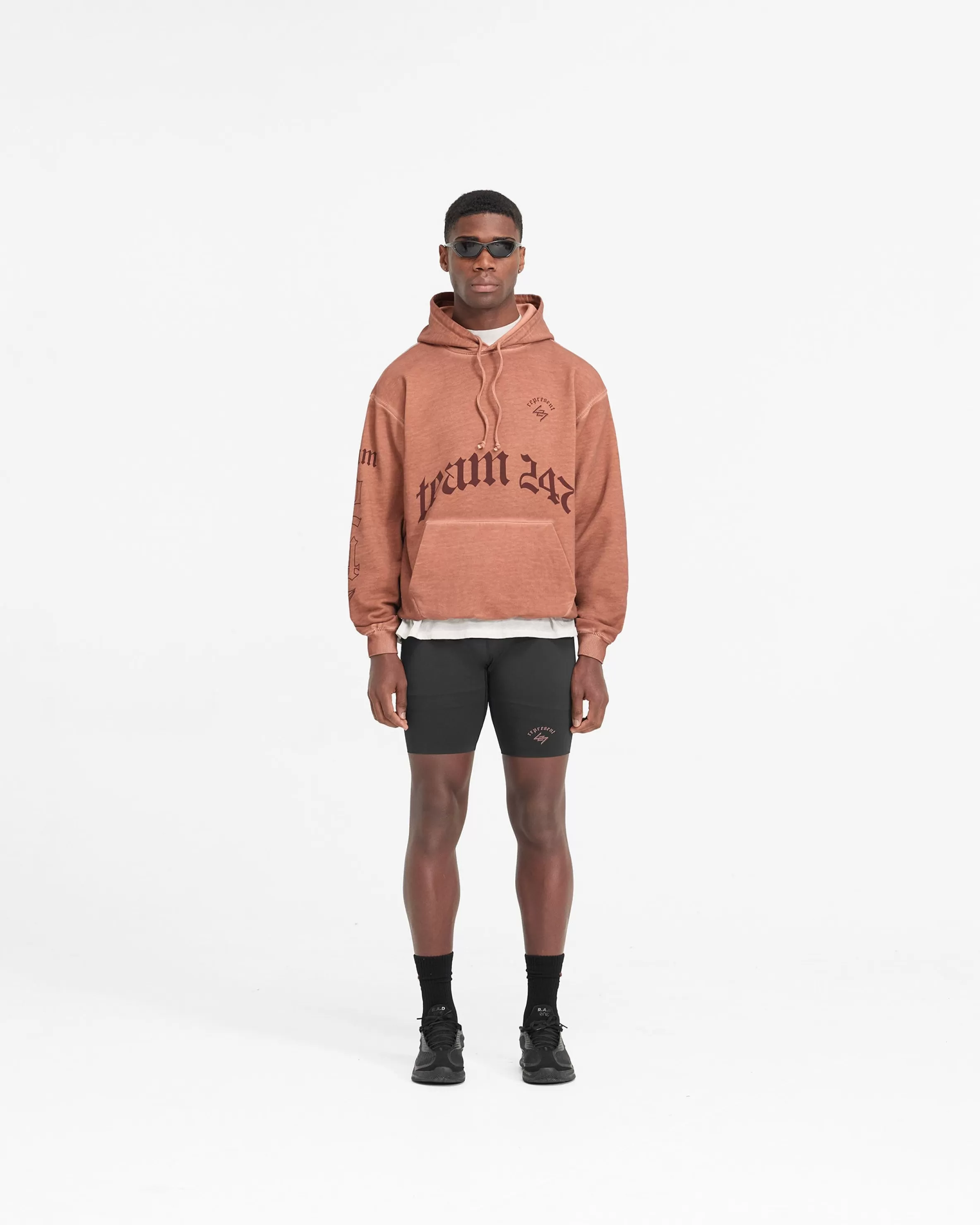 The WG247 Hoodie in Rust is built to perform. The ultimate warm up layer, it has a slightly oversized fit, with a ribbed hem and cuffs for freedom of movement without a compromise on comfort. The hoodie showcases our gothic inspired vintage 247 typography graphics; with Team 247 to the front and sleeve, 247 logo to the front, and a Spartan warrior design to the back, representing the pursuit of greatness embodied by the 247 mission. The hoodie is finished with an overdye and distressed washed effect, with a self fabric tonal internal drawcord to the hood. WG247 Hoodie Rust Slightly Oversized Fit Distressed Washed Effect Ribbed Hem u0026amp; Cuffs Vintage 247 Typography Spartan Warrior Graphic Internal Drawcord Composition: 100% Cotton400gsm Note: Due to the manual washing process of this garment, there will be slight discrepancies in hue and wash between pieces. Model is 190cm and 77kg wearing size MProduct