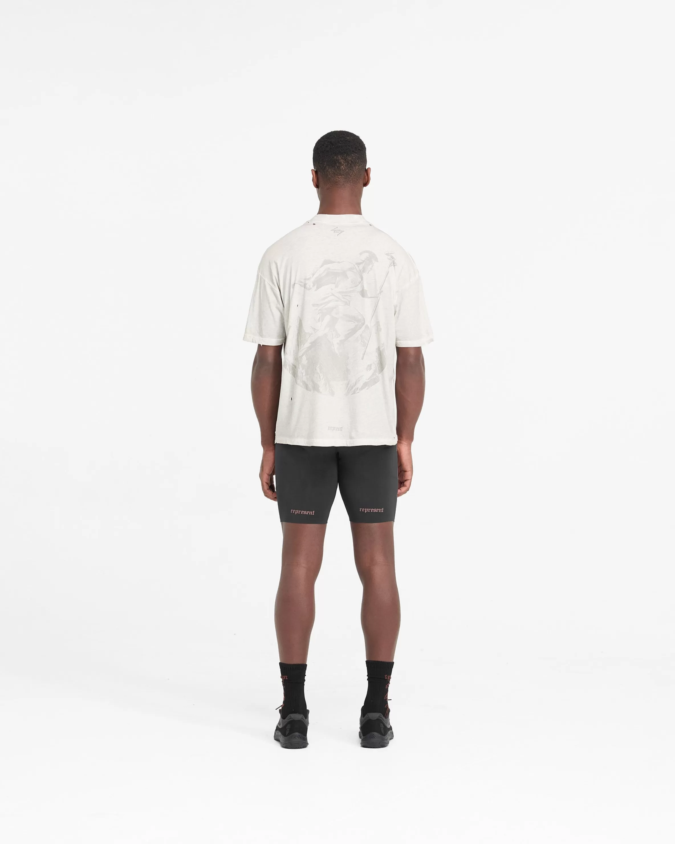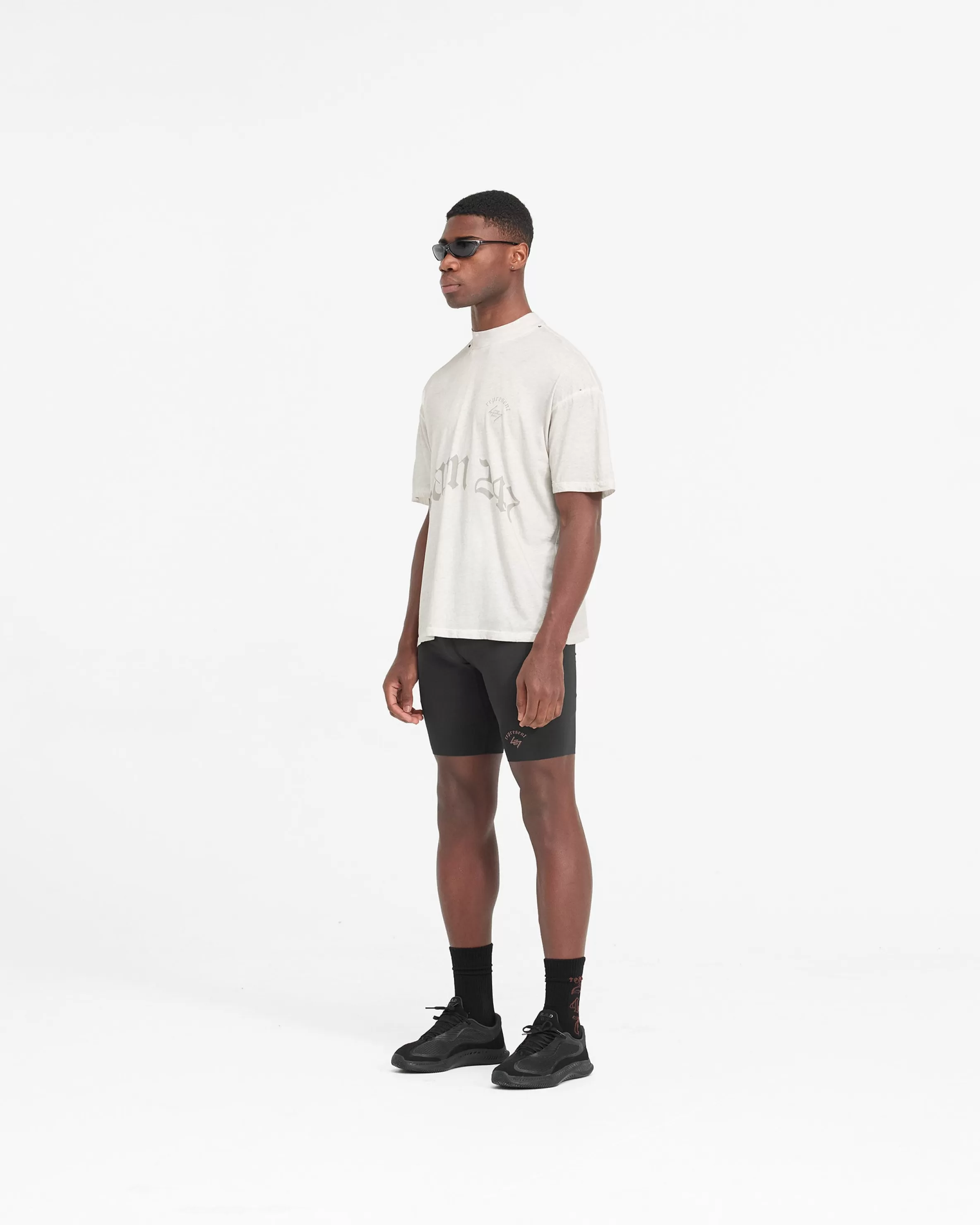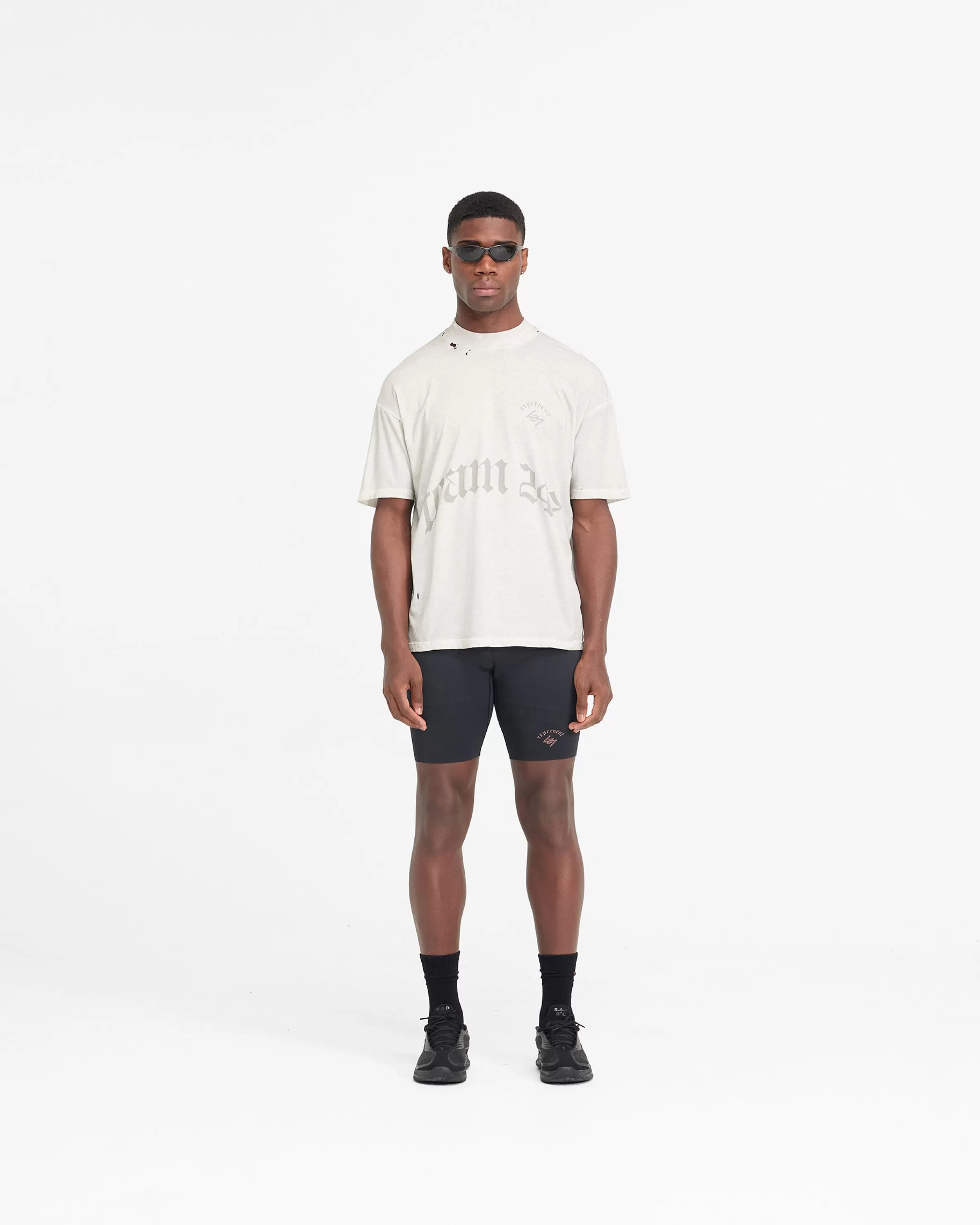 The WG247 T-Shirt in Washed Bleach is built to perform, with a meticulously detailed vintage aesthetic. The t-shirt is crafted from a lighter weight natural jersey cotton which allows air to circulate, affording a high degree of breathability and thermoregulatory properties, with a slightly oversized fit. It has a vintage wash to the fabric, and our gothic inspired typography graphics; with Team 247 and 247 logo to the front, Represent to the back hem, and a Spartan warrior design to the back, representing the pursuit of greatness embodied by the 247 mission. The t-shirt is finished with distressing details to the collar, hem, shoulders and under arm. WG247 T-Shirt Slightly Oversized Washed Bleach Vintage 247 Typography Spartan Graphic Heavy Distressed Details Breathable u0026amp; Lightweight Composition: 100% Cotton Note: Due to the manual washing process of this garment, there will be slight discrepancies in hue and wash between pieces. Model is 190cm and 77kg wearing size MProduct