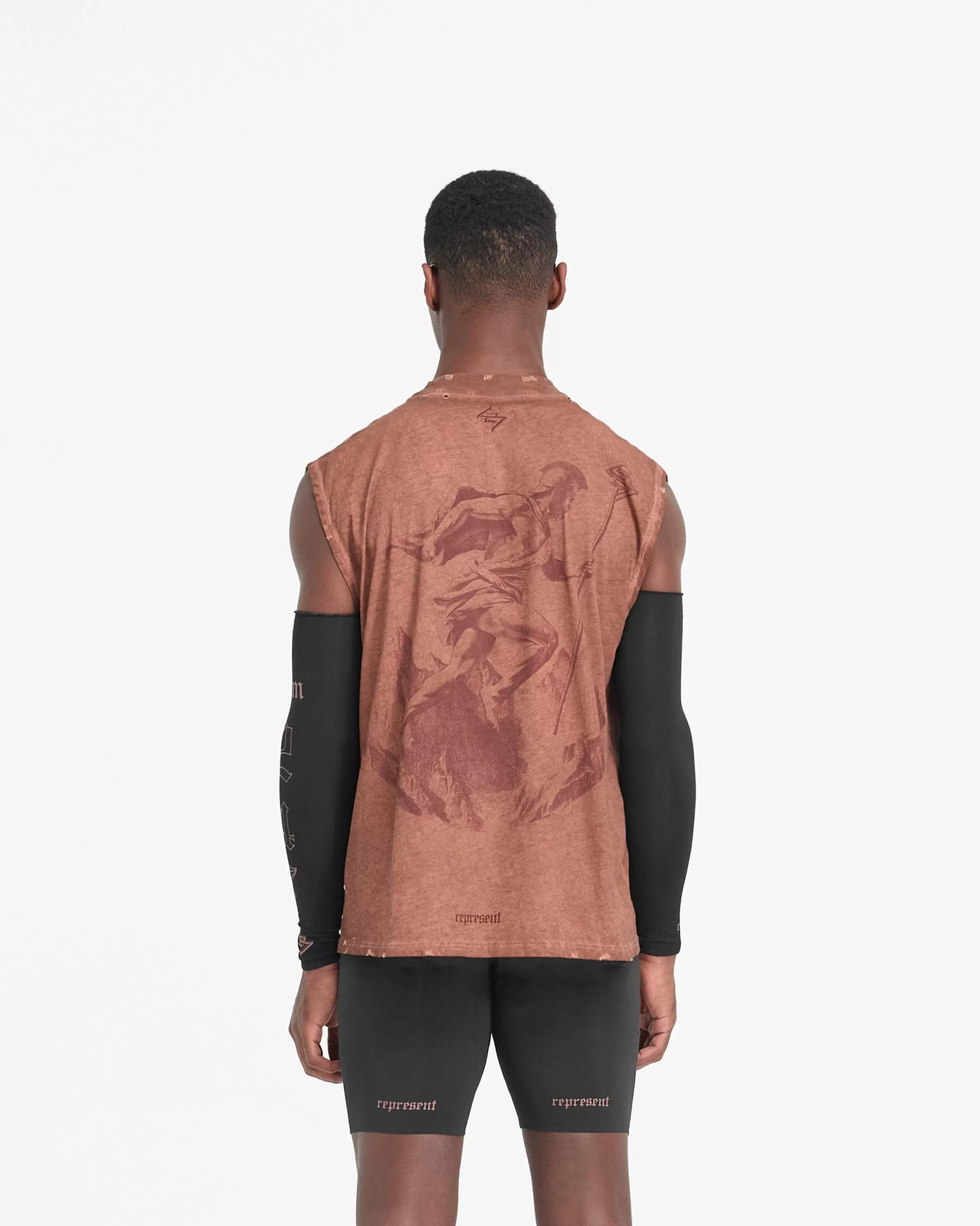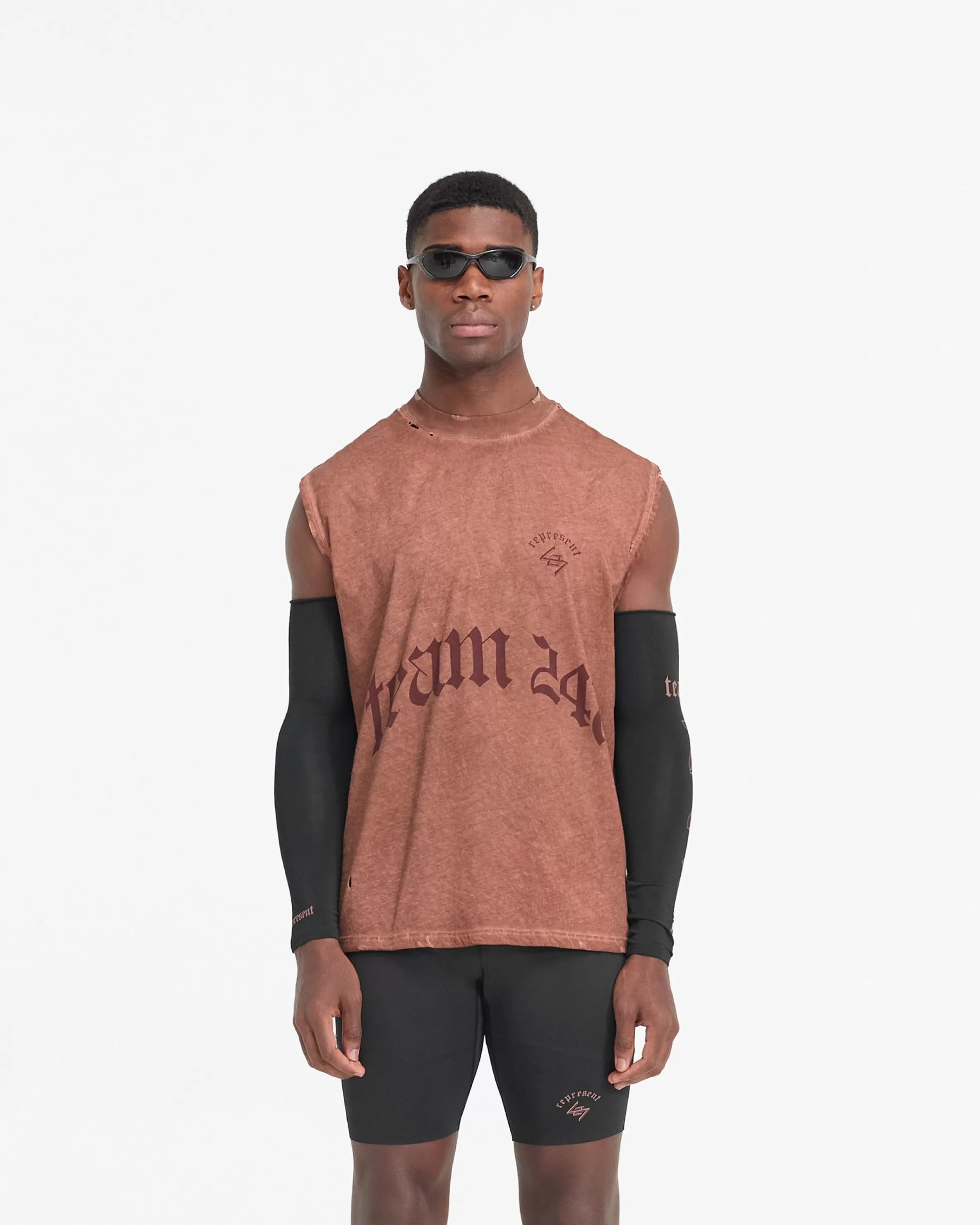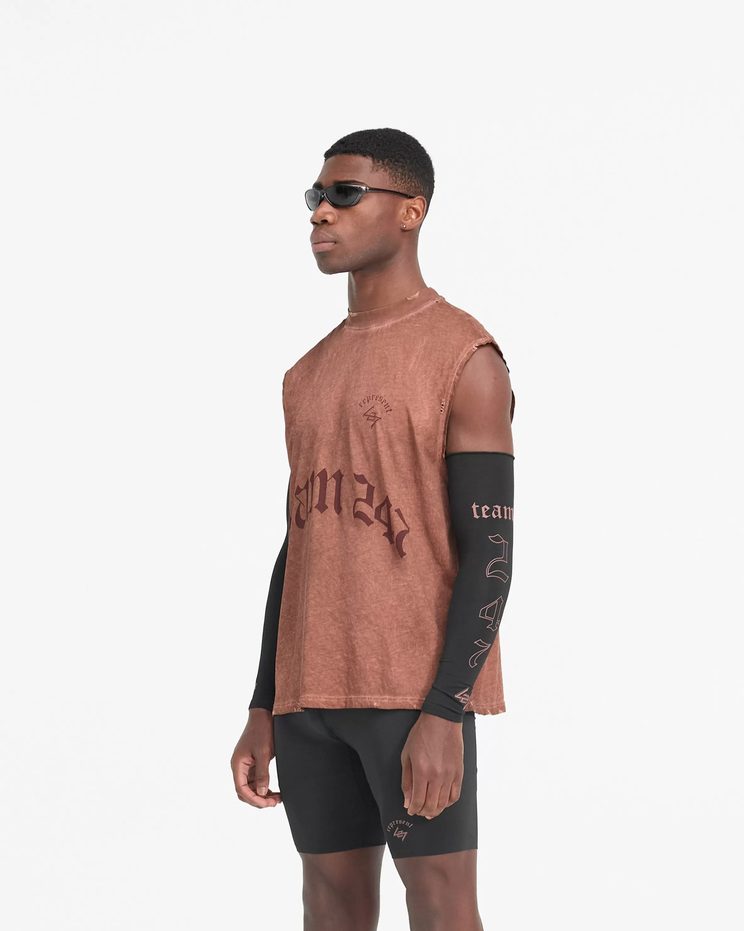 The WG247 Tank in Rust is built to perform, with a meticulously detailed vintage aesthetic. The tank is crafted from a lighter weight natural jersey cotton which allows air to circulate, affording a high degree of breathability and thermoregulatory properties, with a slightly oversized fit. It has a vintage wash to the fabric, and our gothic inspired typography graphics; with Team 247 and 247 logo to the front, Represent to the back hem, and a Spartan warrior design to the back, representing the pursuit of greatness embodied by the 247 mission. The tank is finished with distressing details to the collar, hem, shoulders and under arm. WG247 Tank Top Slightly Oversized Washed Rust Vintage 247 Typography Spartan Graphic Heavy Distressed Details Breathable u0026amp; Lightweight Composition: 100% Cotton Note: Due to the manual washing process of this garment, there will be slight discrepancies in hue and wash between pieces. Model is 190cm and 77kg wearing size MProduct
