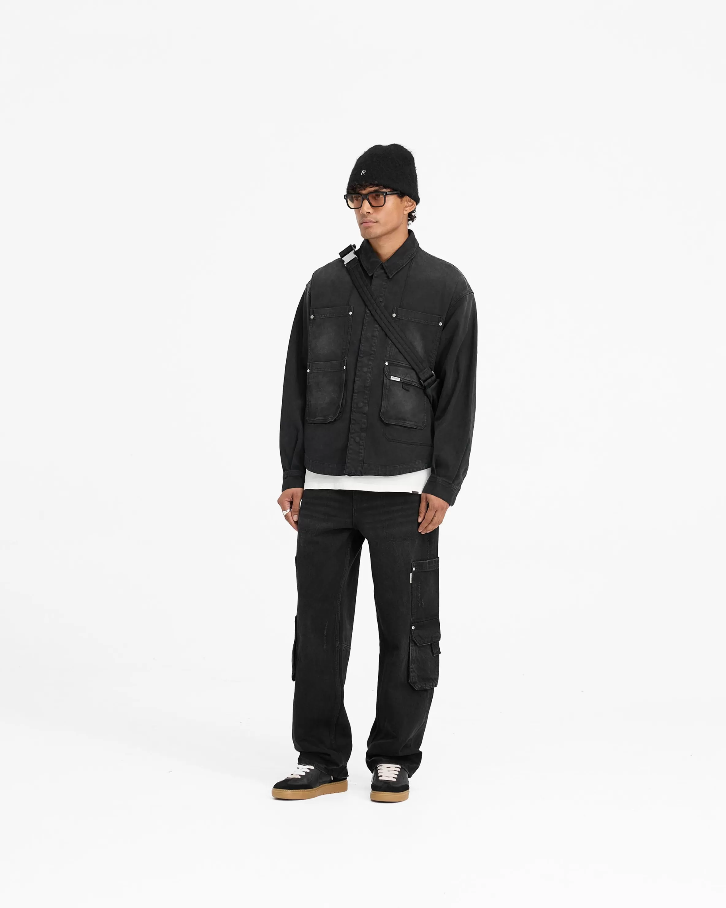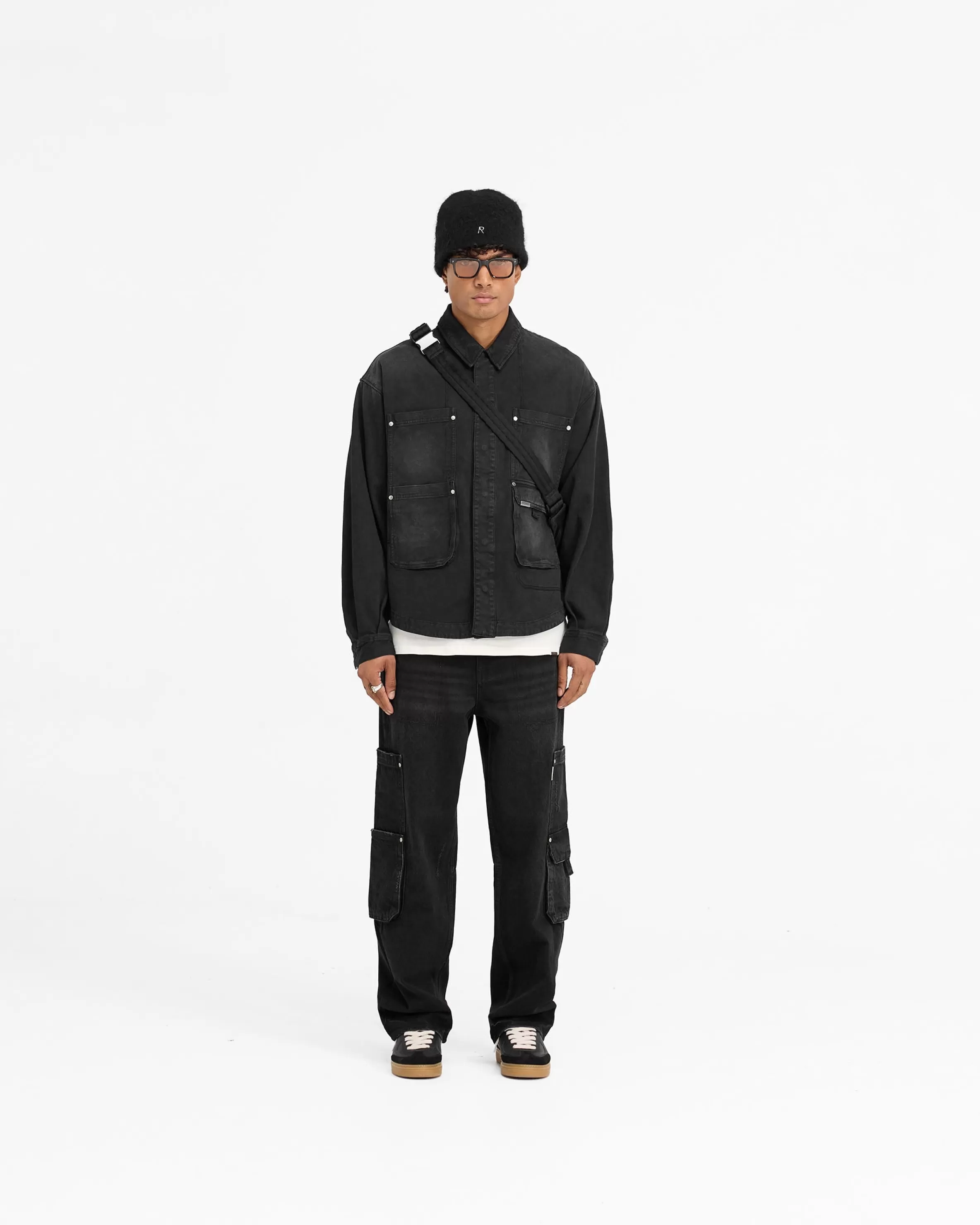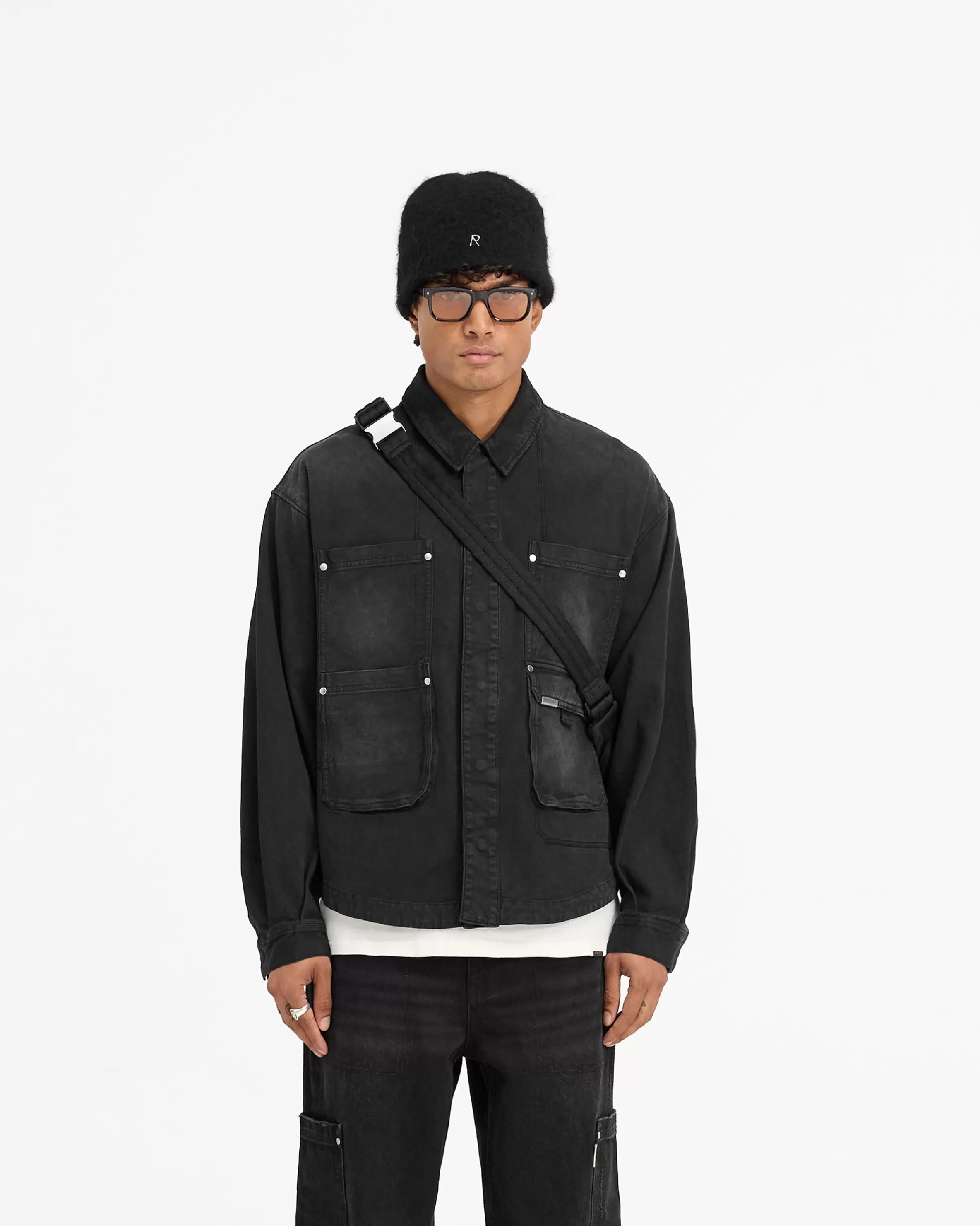 Introducing the Workshop Shirt in Washed Black, the perfect everyday overshirt for cooler days. The shirt features conce…