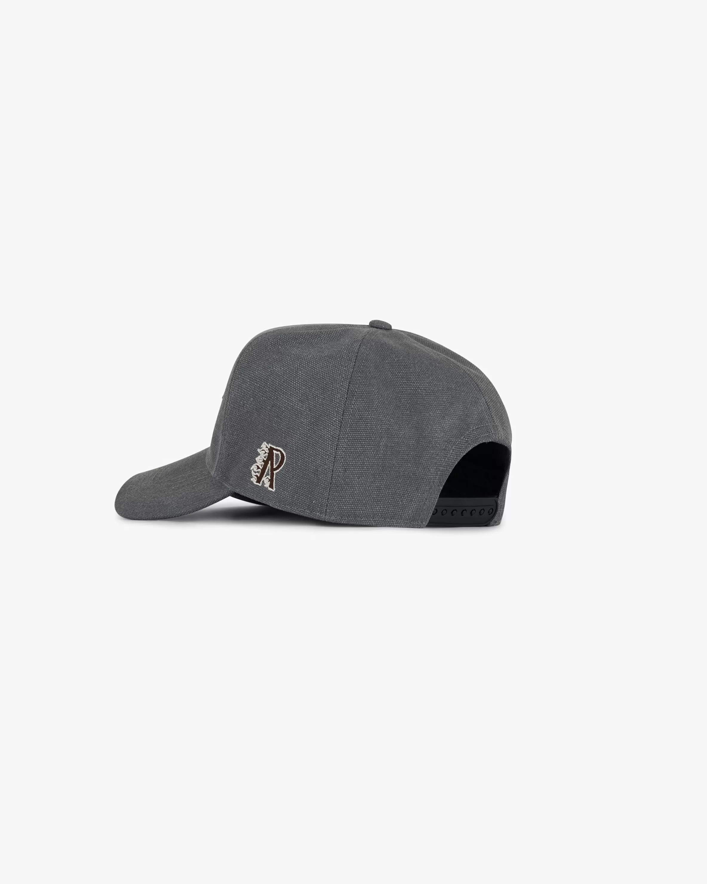 Introducing the Represent x Belstaff Cap in Shadow, a classic silhouette trucker cap crafted from cotton twill, with app…