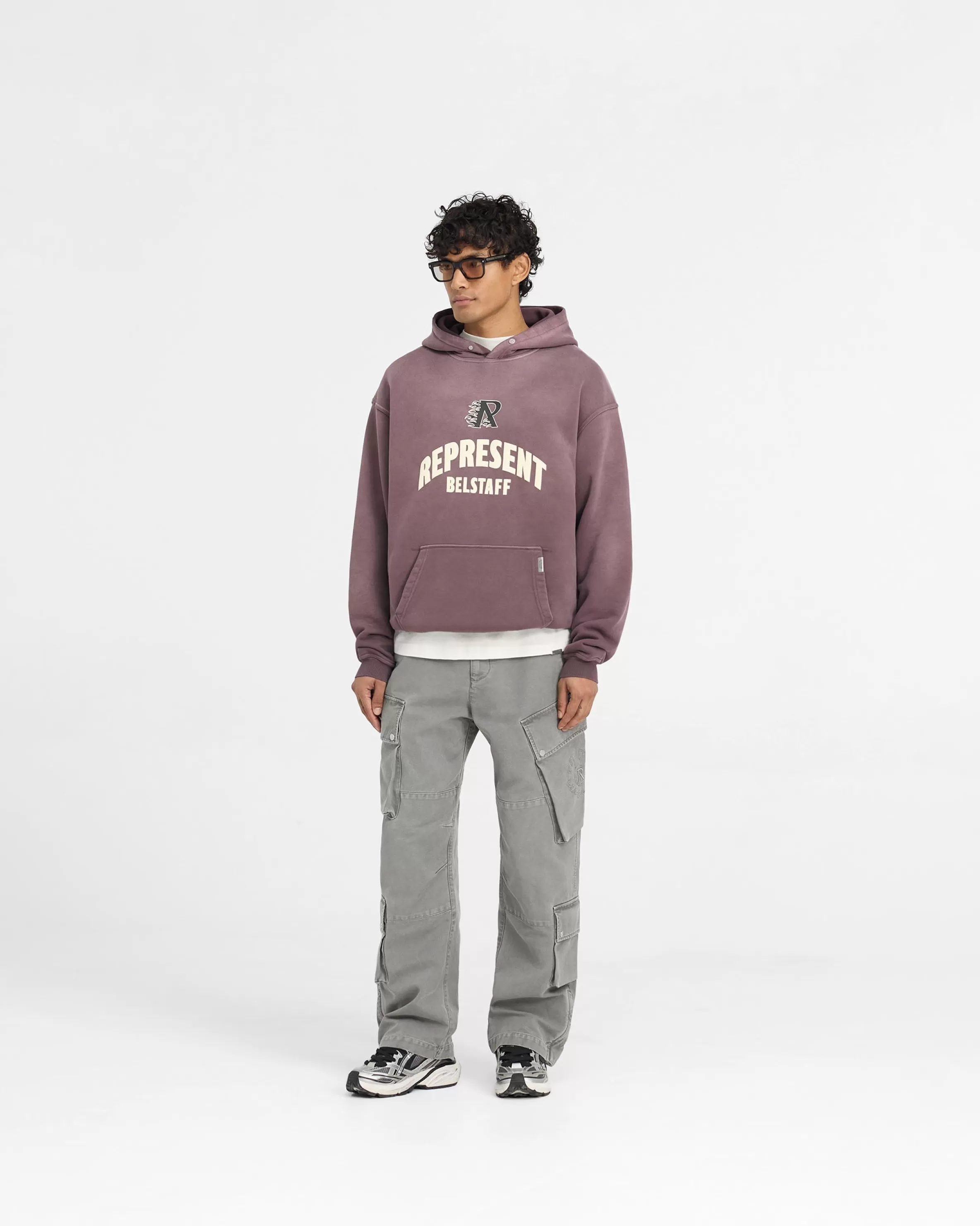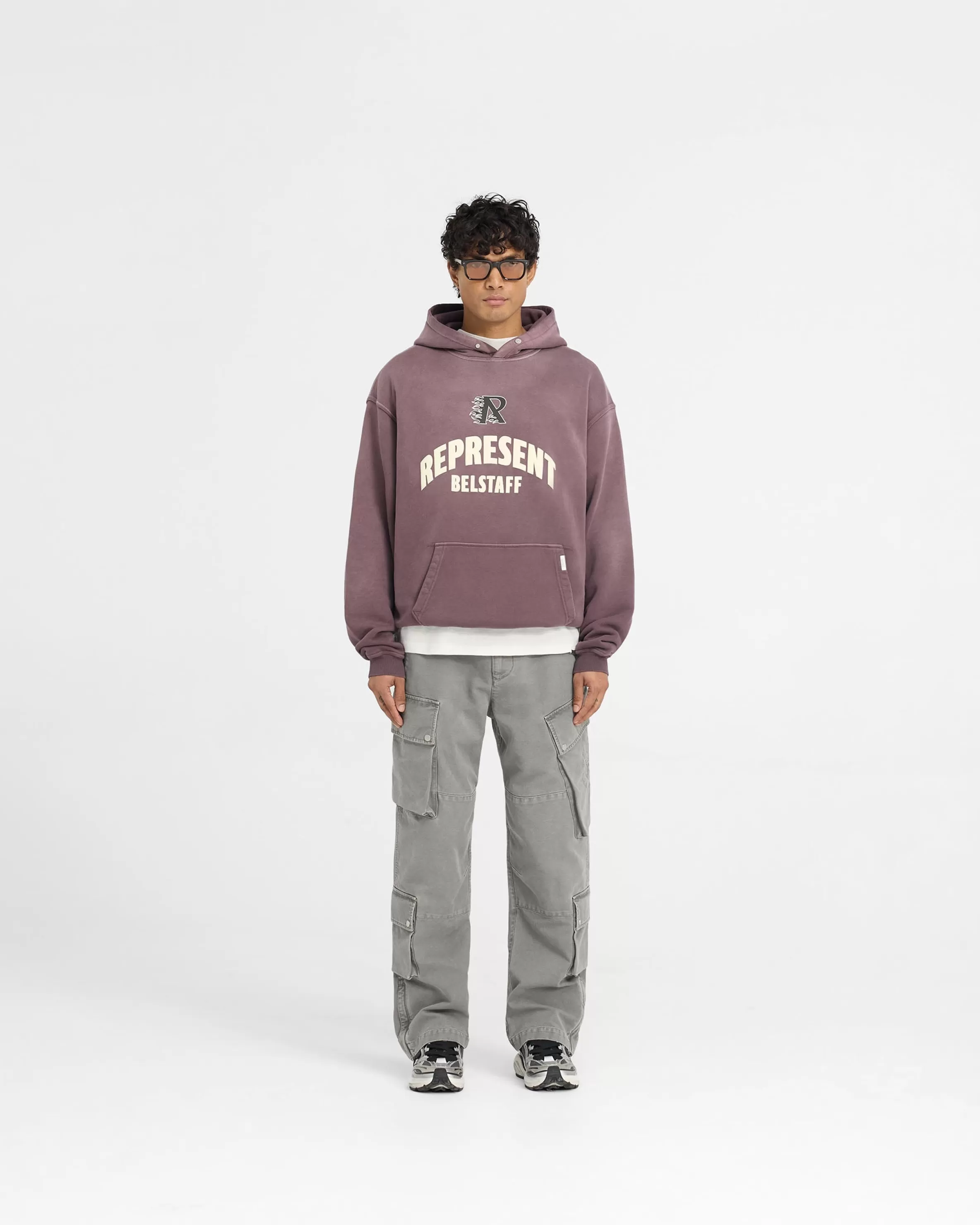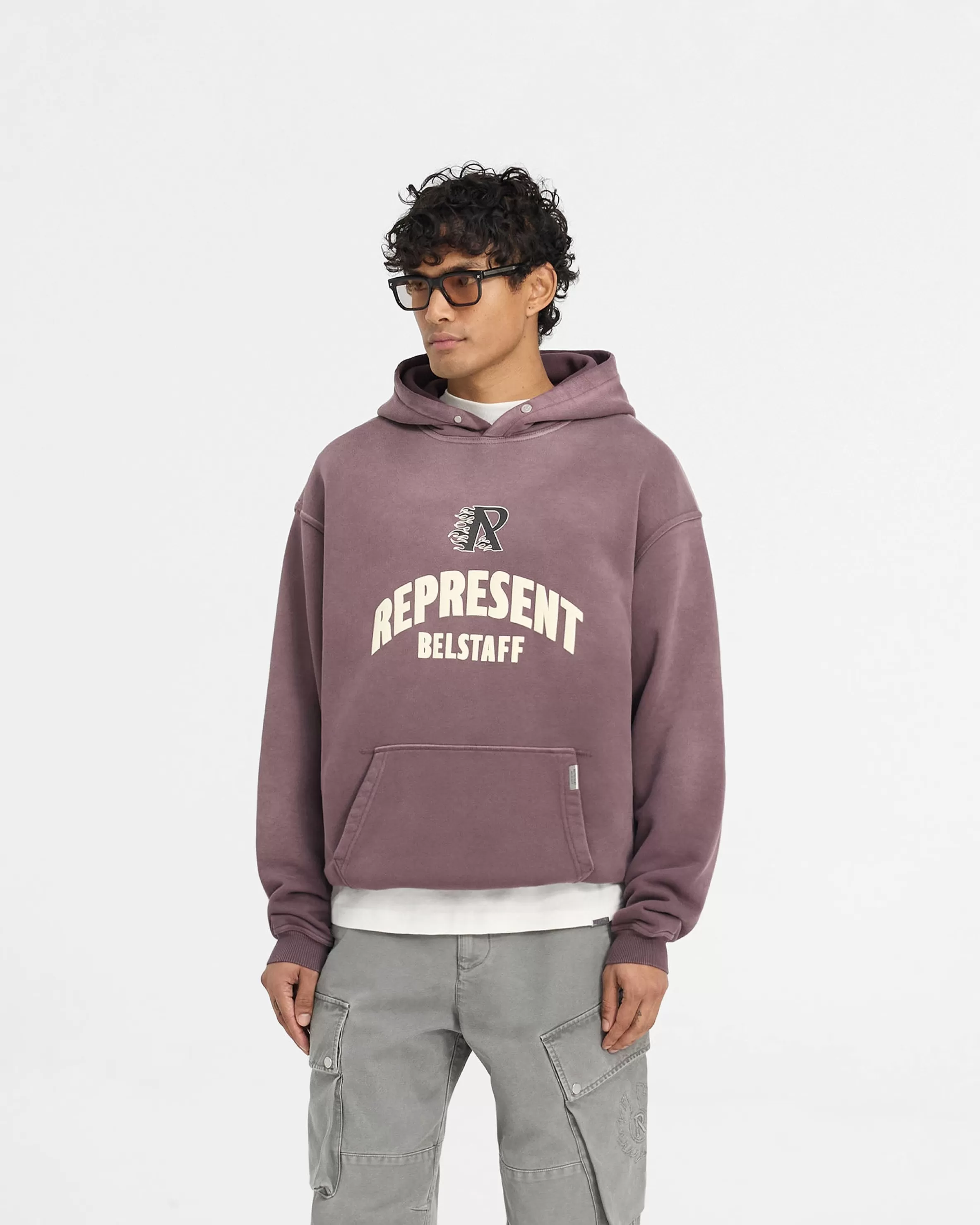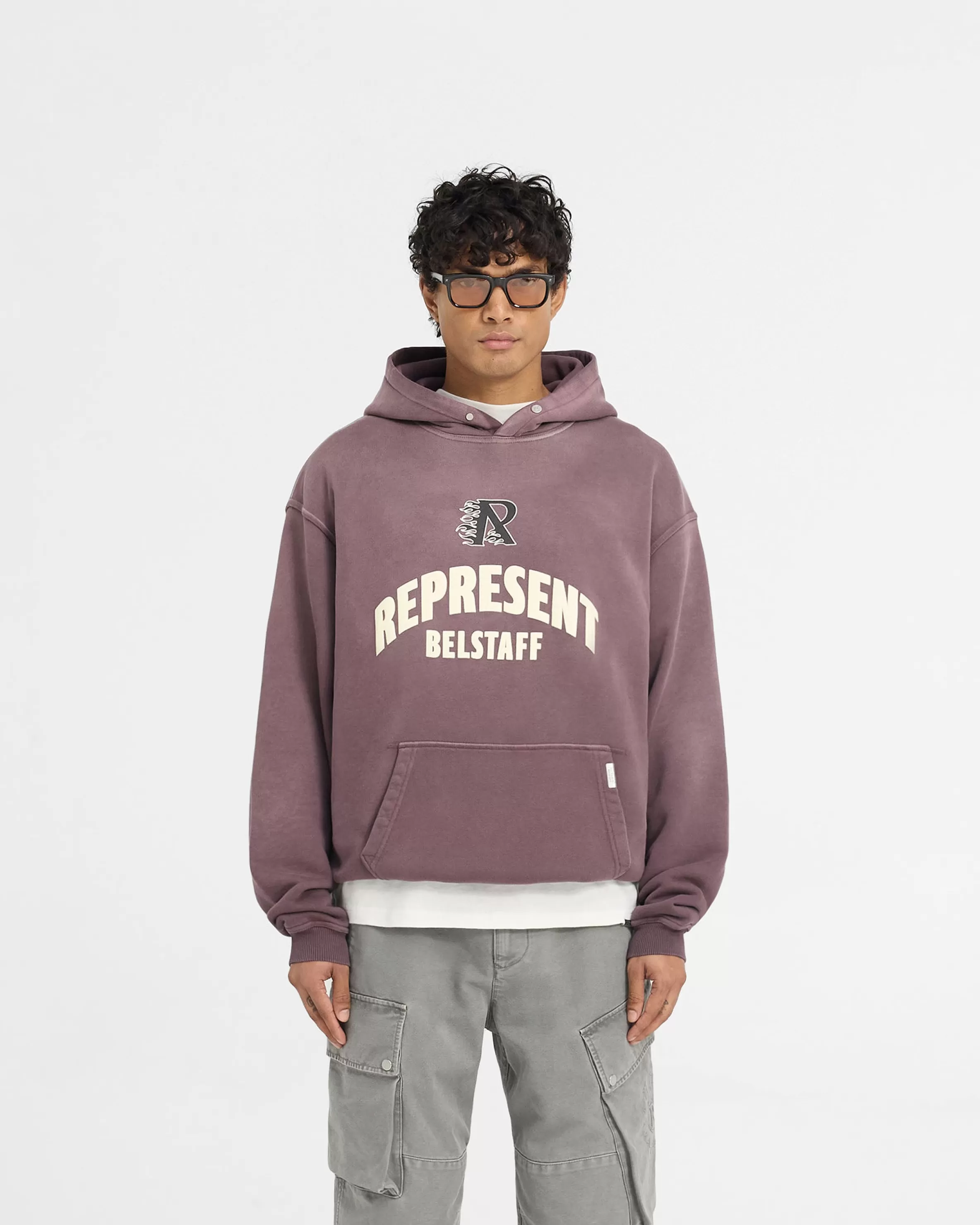 Introducing the Represent x Belstaff Flame Phoenix Hoodie in Plum, a luxury oversized and heavyweight hoodie, built to stand the test of time. The hoodie is in a plum wash colourway to bring to the fore a well worn, road-aged aesthetic. It showcases a flamed Initial to the front, and a textured print, contemporarily styled iteration of Belstaff’s logo which the brand debuted in 1969 to the back. It is finished with our signature Cobrax popper to the hood and metal bar logo to the pocket. Represent x Belstaff Flame Phoenix Hoodie Washed Plum Oversized Heavyweight (500gsm) Stylised Initial u0026amp; Phoenix Logos Cobrax Popper Represent Metal Bar Composition: 100% Cotton500gsm Product Care: Mild Machine Wash at 30 Degrees Celsius. Do not bleach, tumble dry or dry clean. Line Dry in the shade and cool iron on reverse. Wash inside out with similar colours, and remove promptly. Do not dry in direct sunlight. Do not iron on print. Do not rub isolated stains. Model is 188cm and 75kg wearing size MProduct