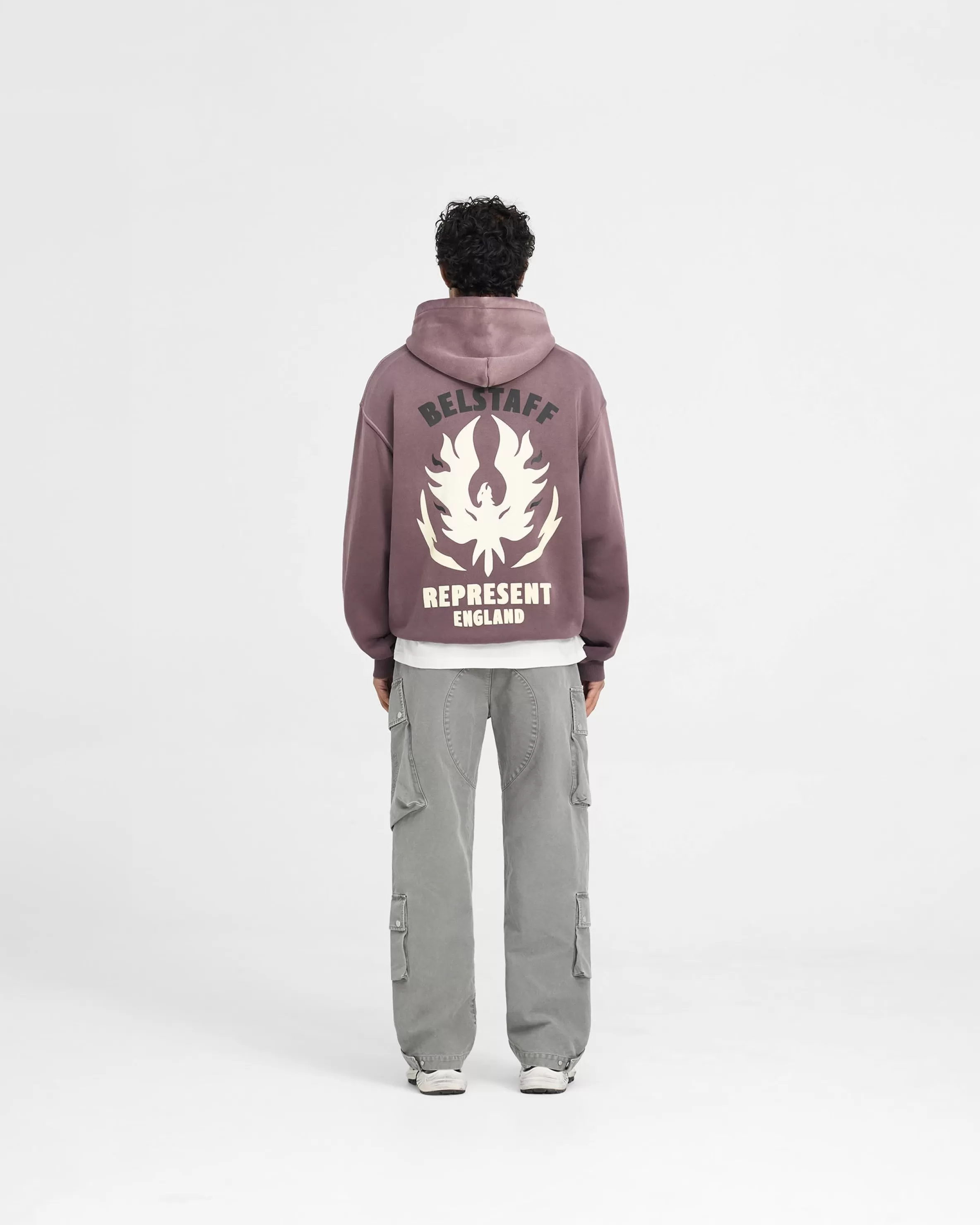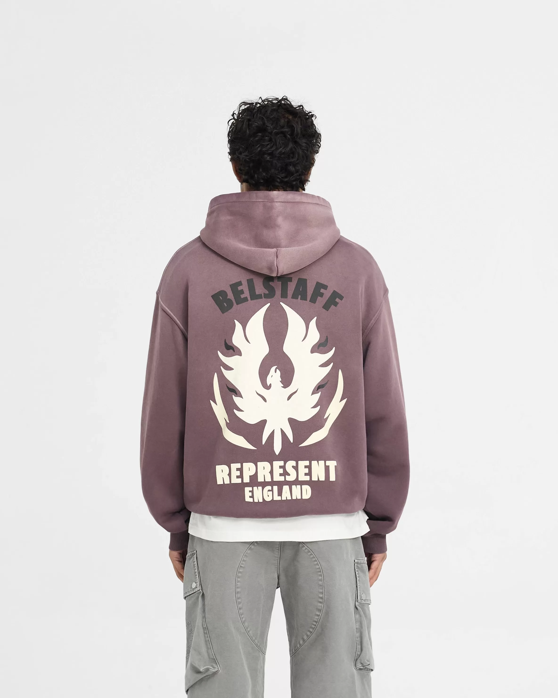 Introducing the Represent x Belstaff Flame Phoenix Hoodie in Plum, a luxury oversized and heavyweight hoodie, built to s…