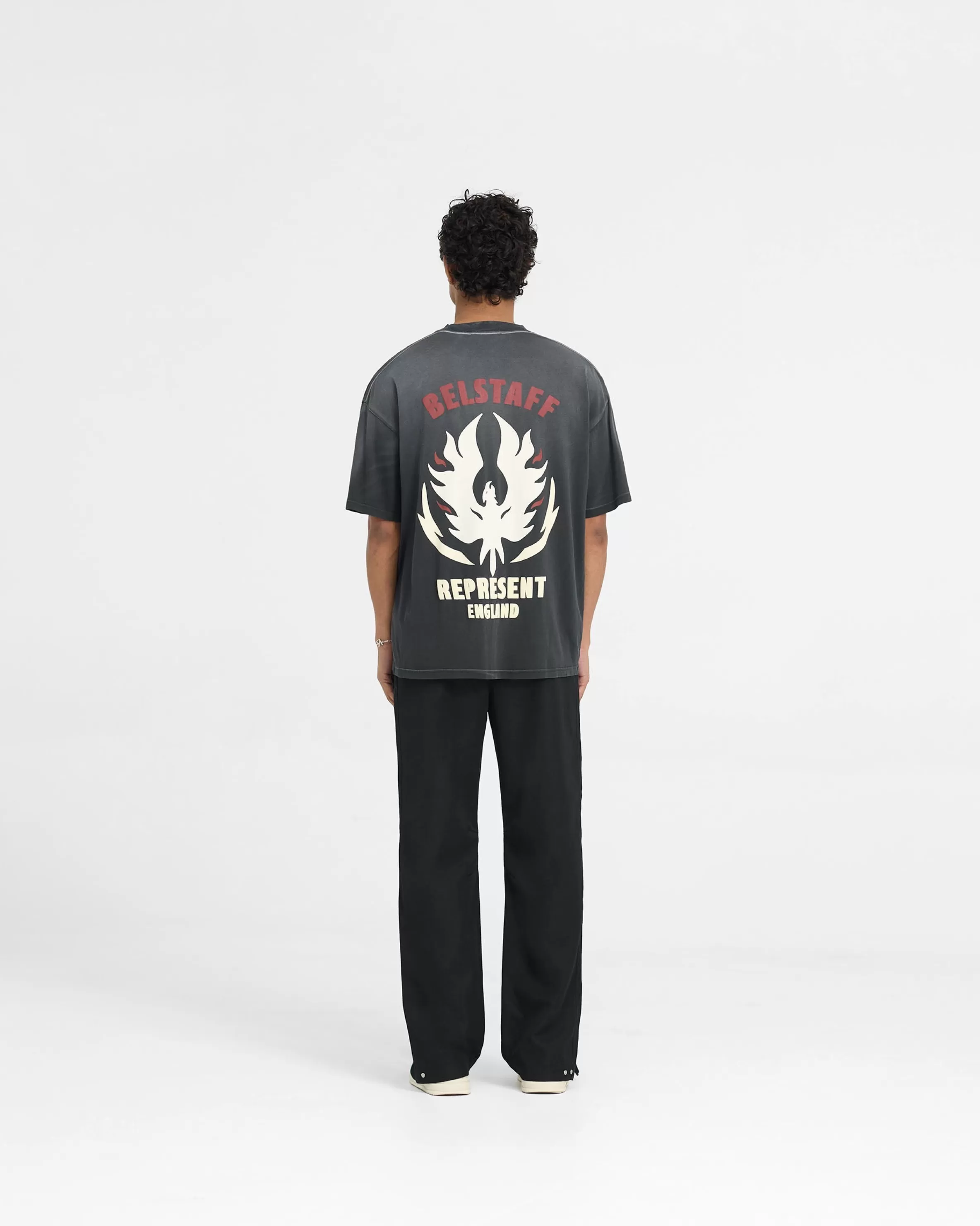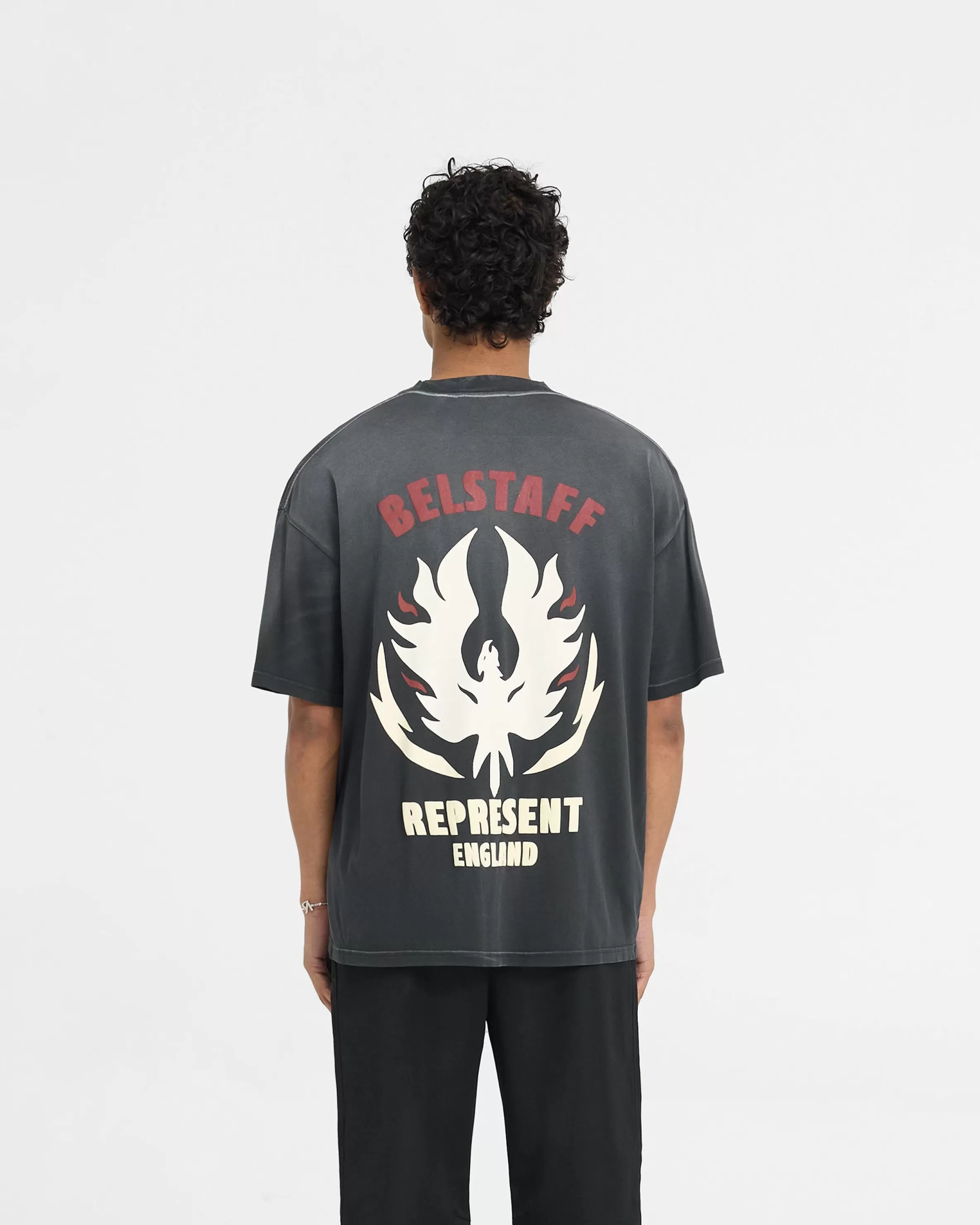 Introducing the Represent x Belstaff Flame Phoenix T-Shirt in Shadow, a luxury oversized and medium weight t-shirt, buil…