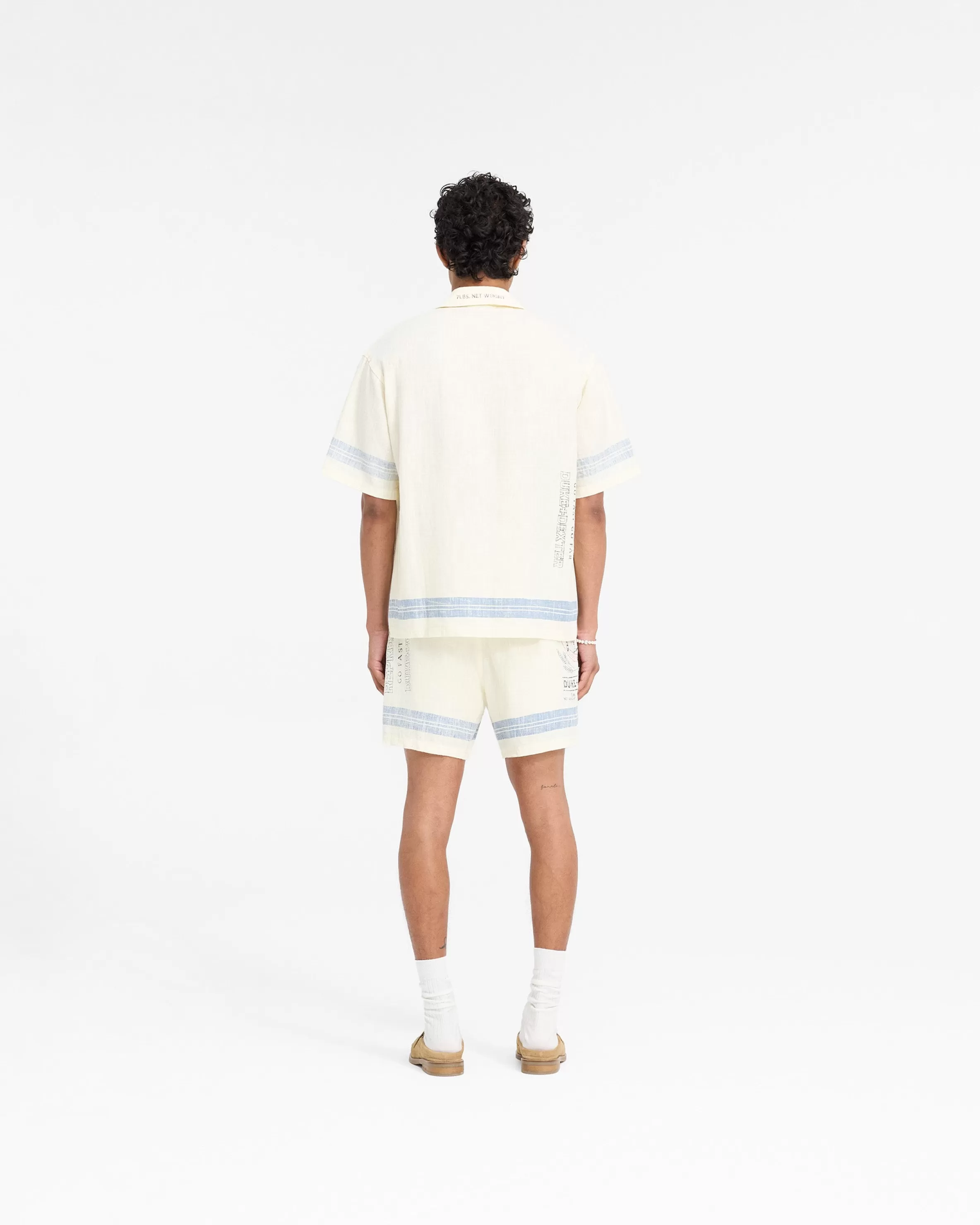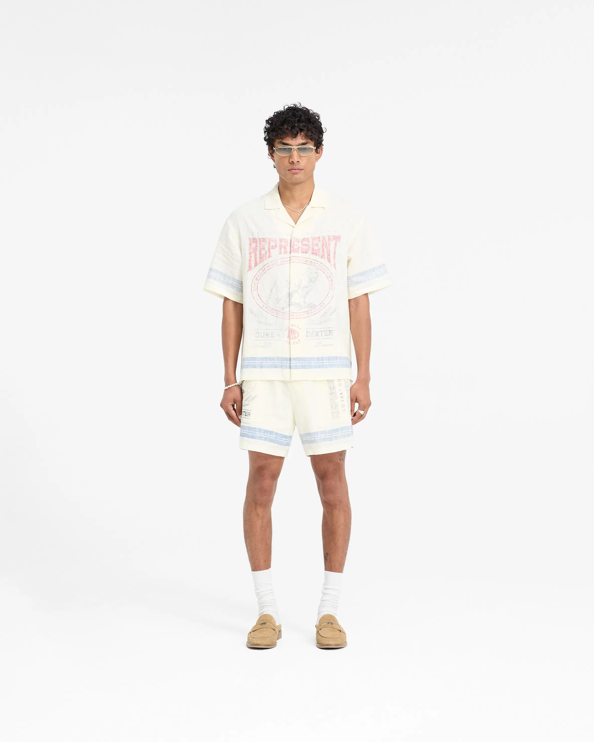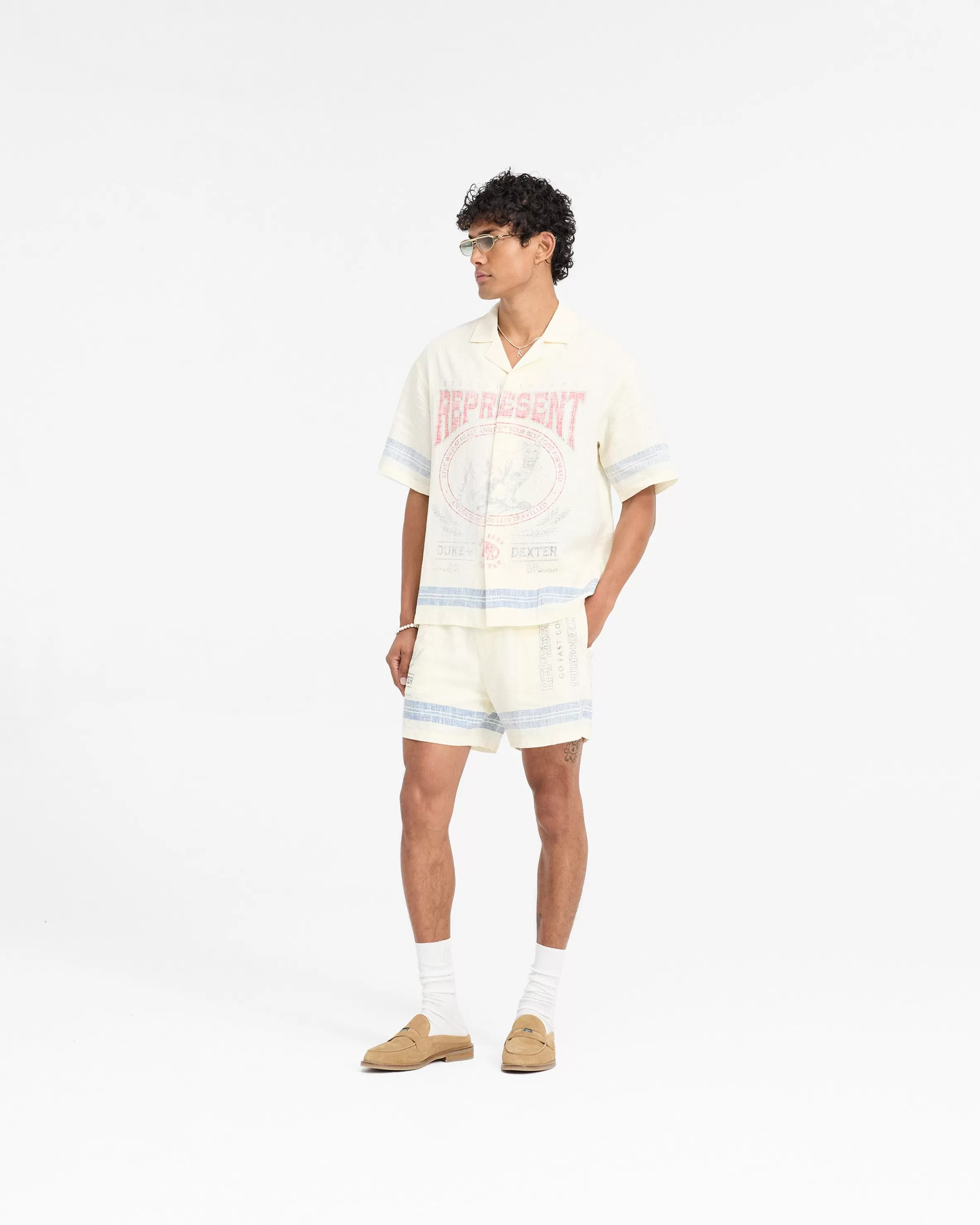 Introducing the Mountain Lion Shirt in Ecru, created in collaboration with Duke + Dexter; a revere style shirt, crafted from 100% Ramie. The craftsmanship of the shirt is inspired by mothers from the ‘60s creating clothes from used flour bags, with a faded artwork style achieved by printing to the inside of the fabric. A light enzyme wash further elevates the authenticity of the vintage look. The shirt has co-branded collaboration artwork to the front and back, with further stripe details to the hem and sleeve. Mountain Lion Shirt Revere Style Light Ramie Fabric Enzyme Wash and Inside Branding for Vintage Aesthetic Collaboration Artwork Collaborated with Duke + Dexter Composition: 100% Ramie Product Care: 30 Degree Delicate Machine Wash. Do Not Bleach. Hang Dry. Cool Iron on Reverse. Do Not Dry Clean. Wash with similar colours. Wash dark colours separately. Wash inside out. Do not pile whilst damp. Iron on Reverse. Model is 188cm and 75kg wearing size MProduct