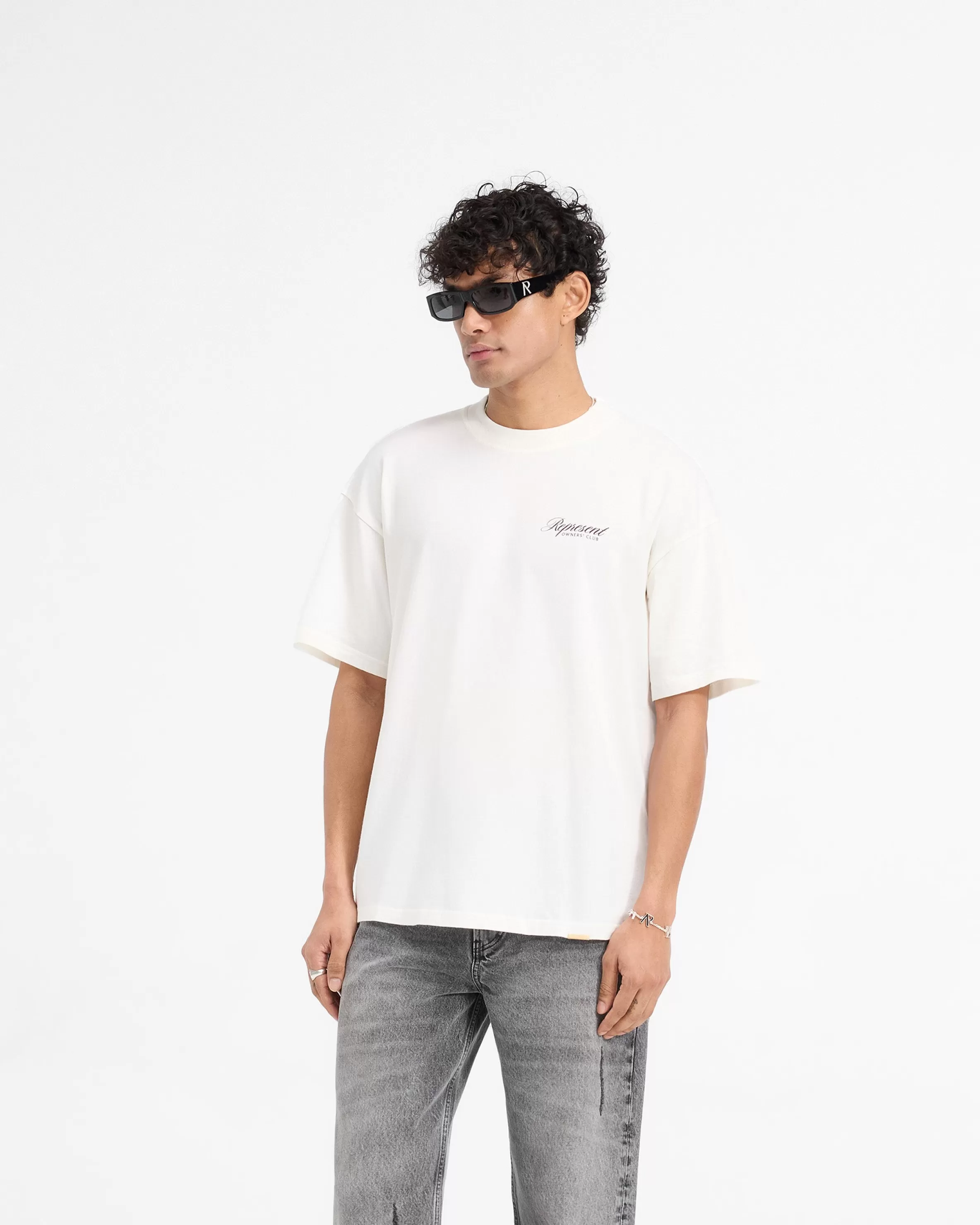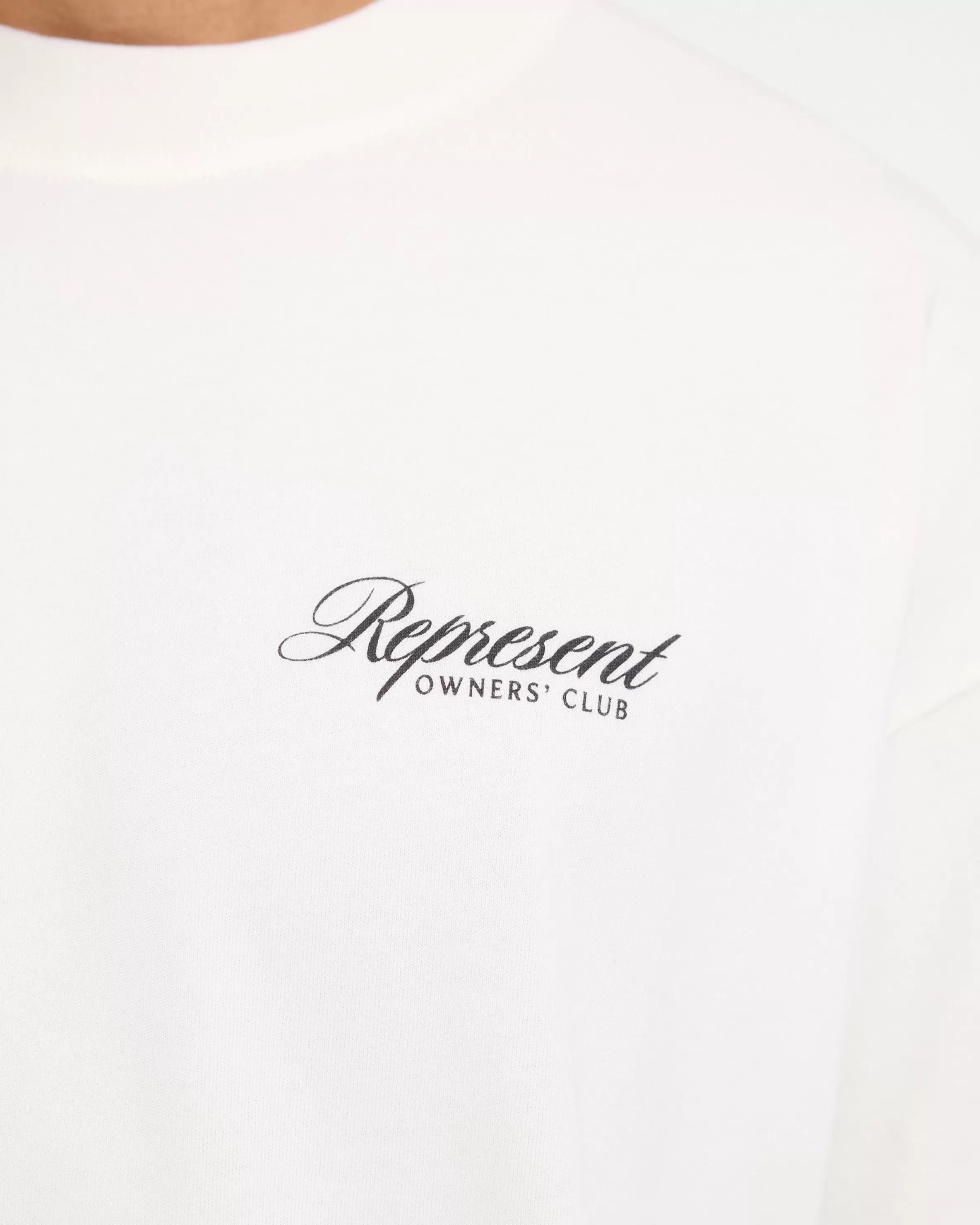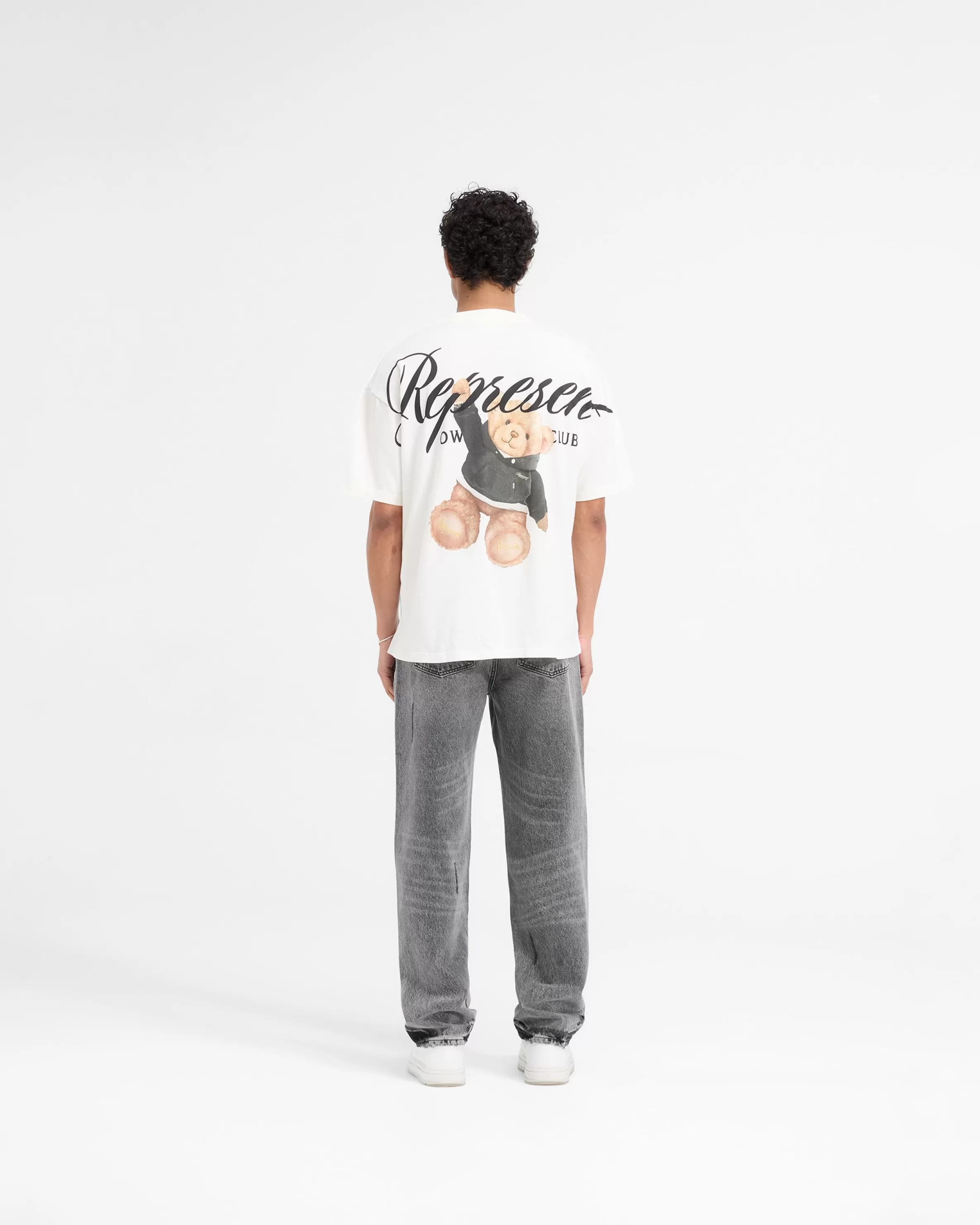 Introducing the Represent x Harrods Bear Owners’ Club T-Shirt in Flat White, a luxury t-shirt crafted with a slightly ov…