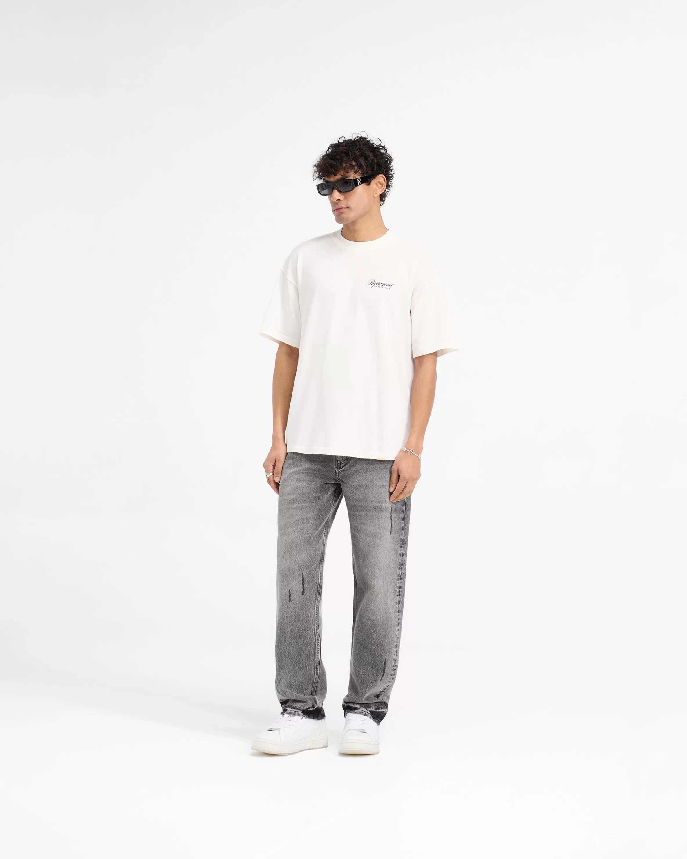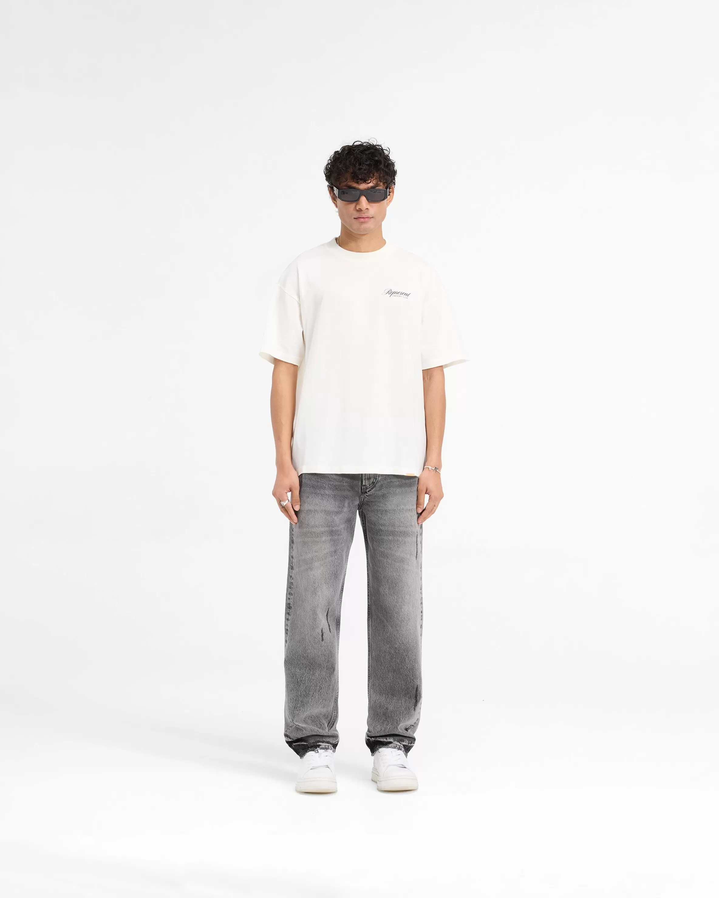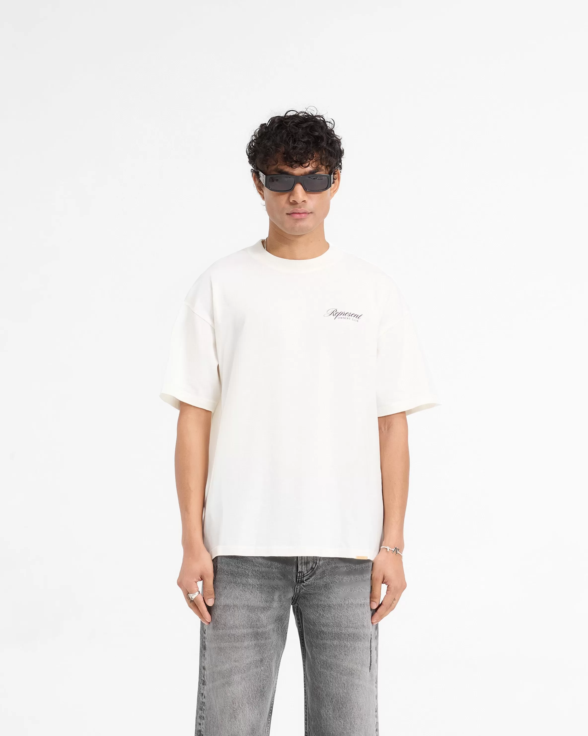 Introducing the Represent x Harrods Bear Owners’ Club T-Shirt in Flat White, a luxury t-shirt crafted with a slightly ov…